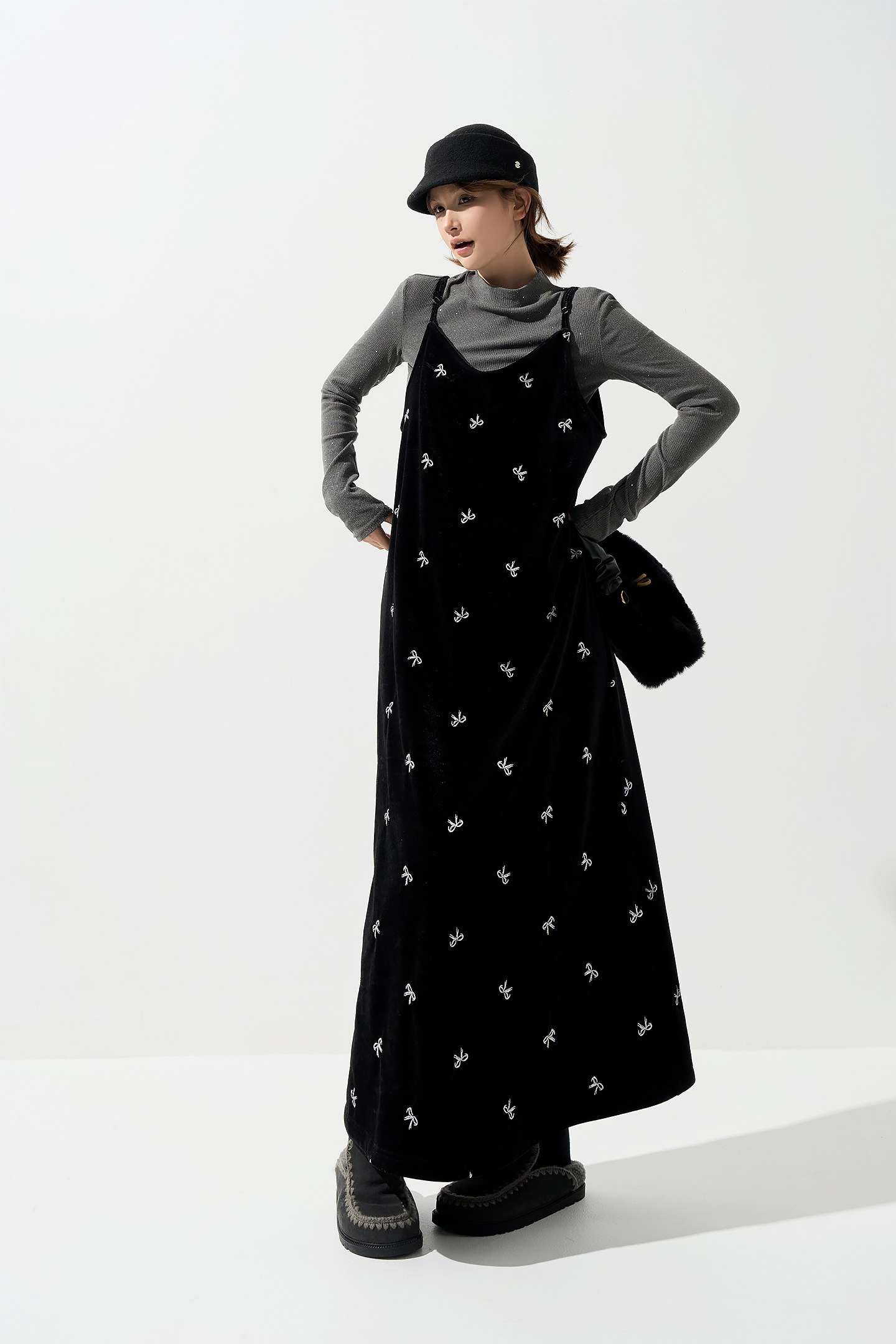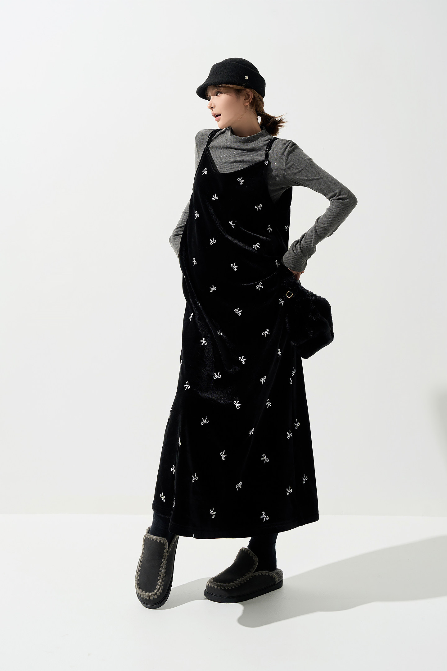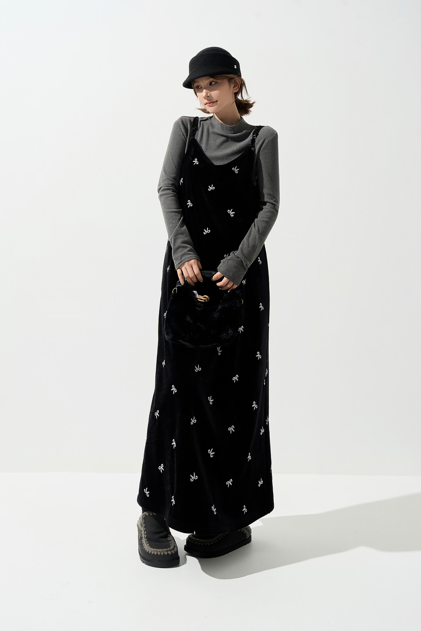 【セットアップ】コーヒー フード付き セーター + ブラックワンピース 2点上下セット【JZシリーズ】