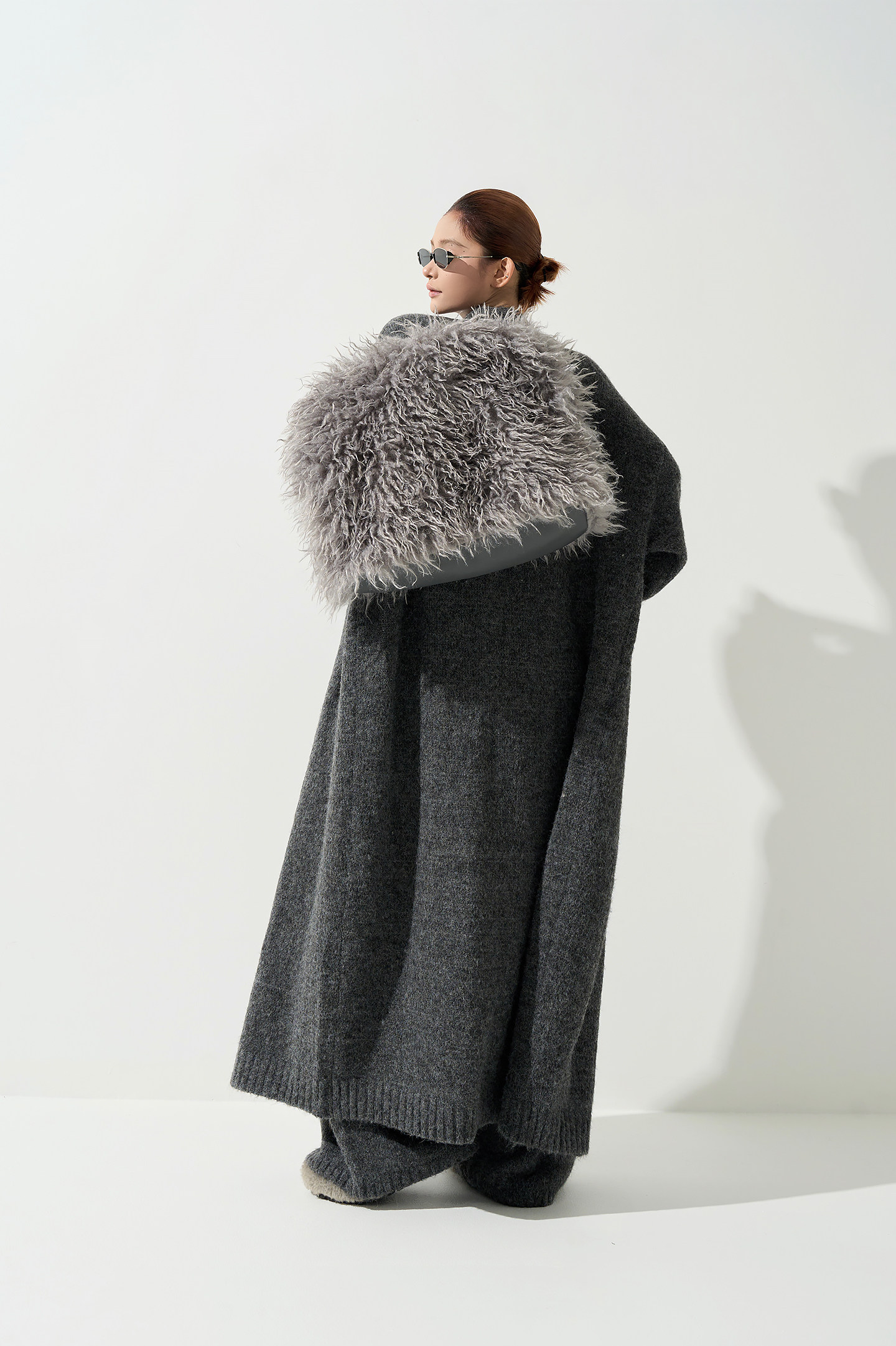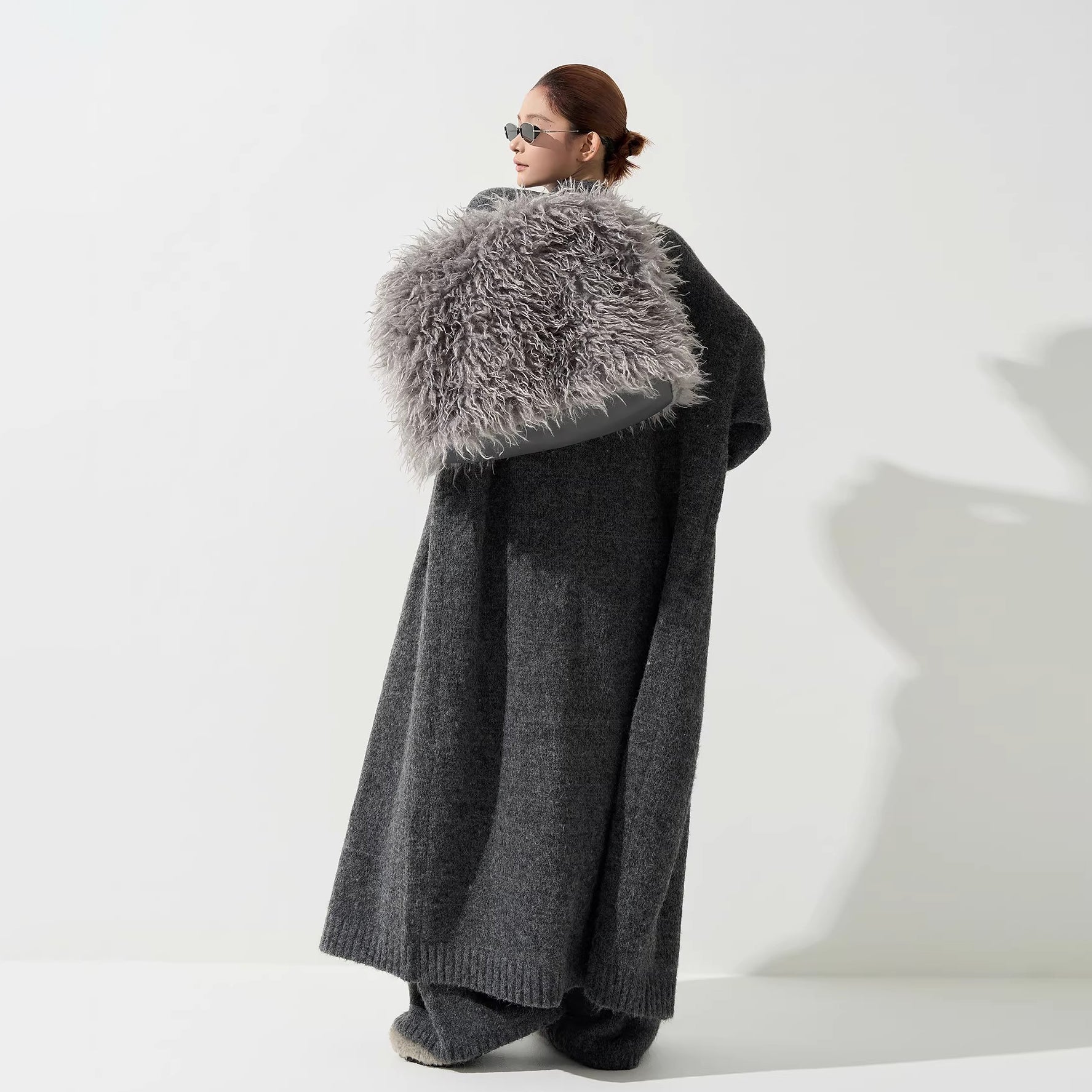 【トップス】ふわふわフェイクミンクグラデーション フード付きニットセーター レディース 秋冬 高級感 オーバーサイズ トップス【FCシリーズ】