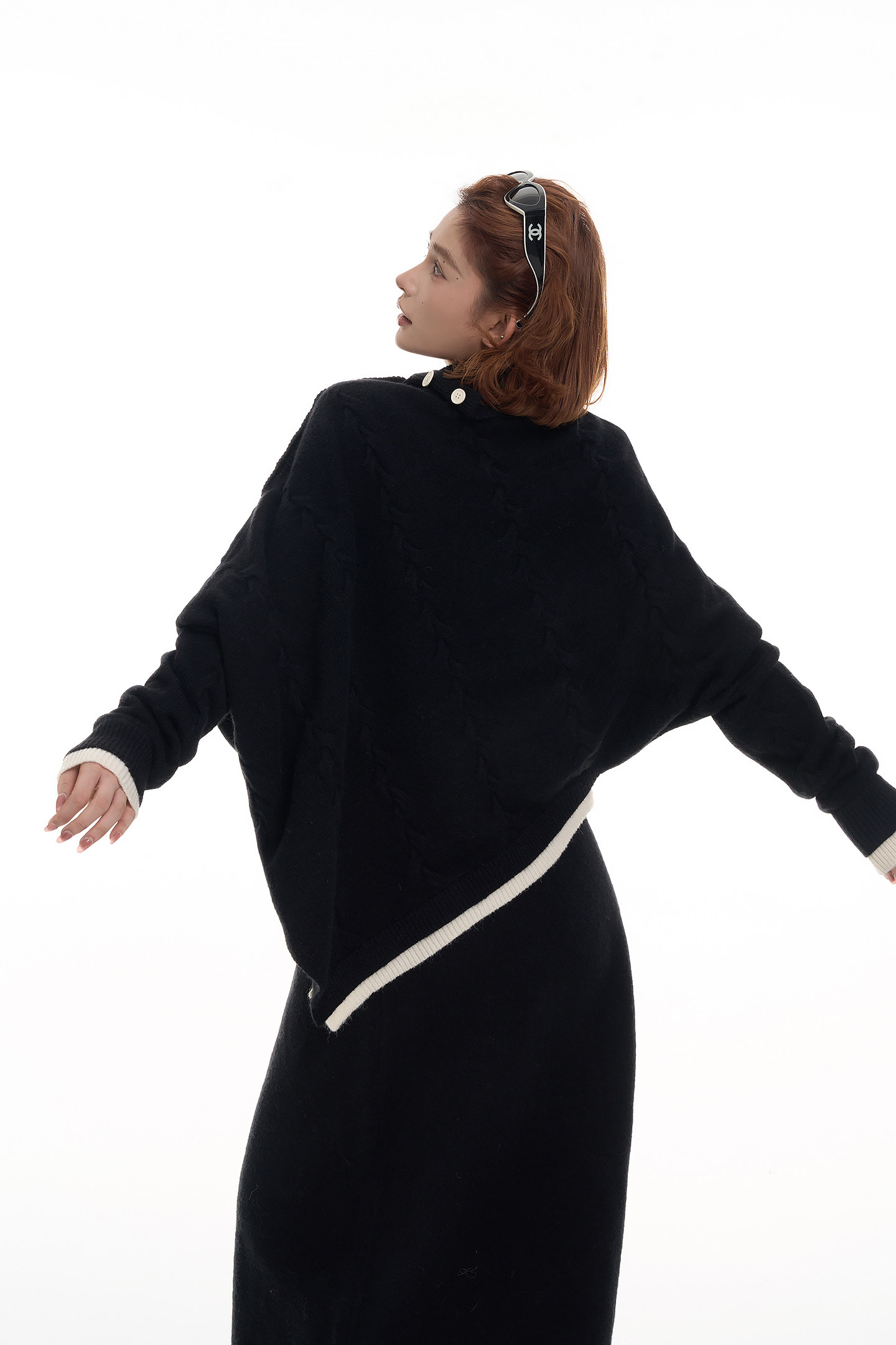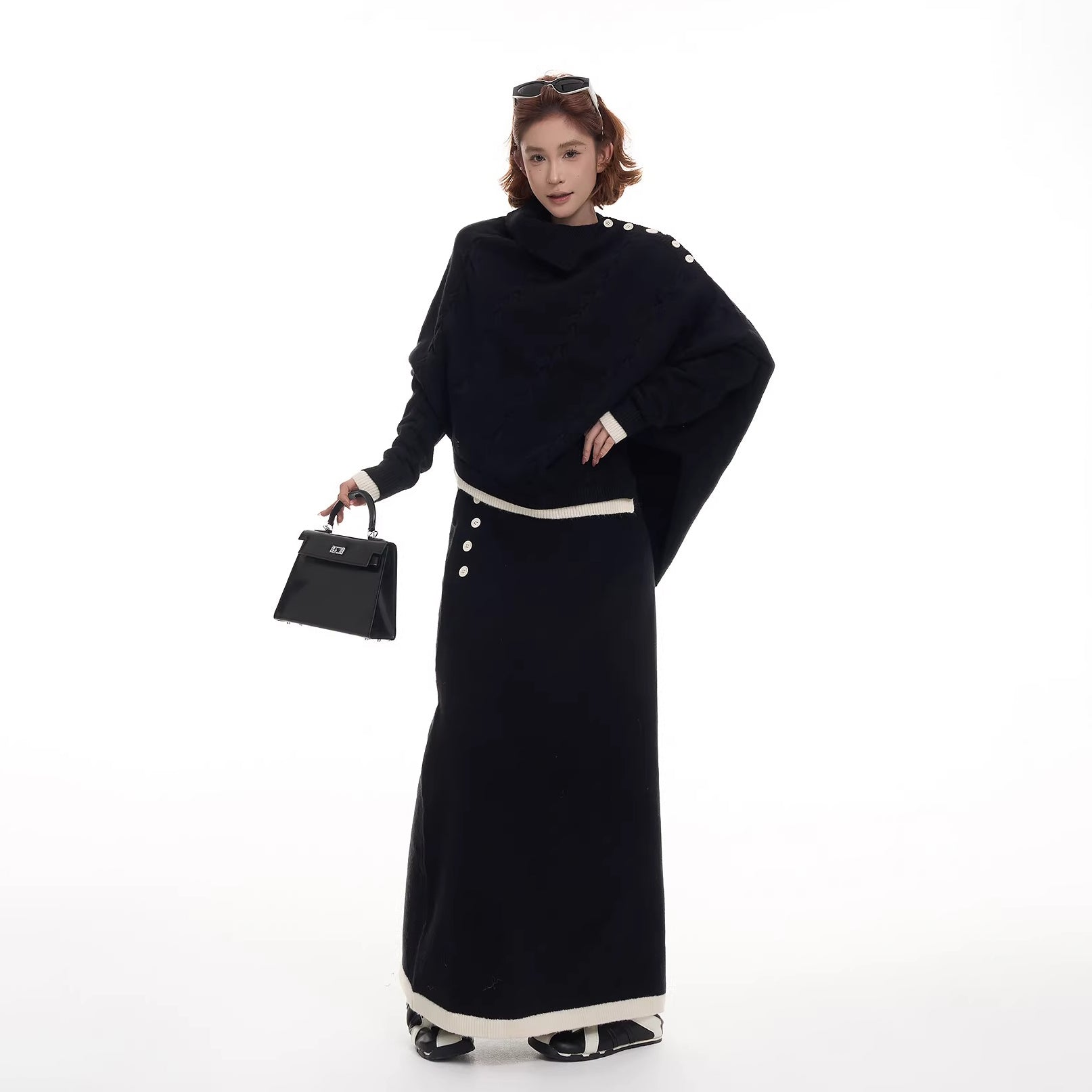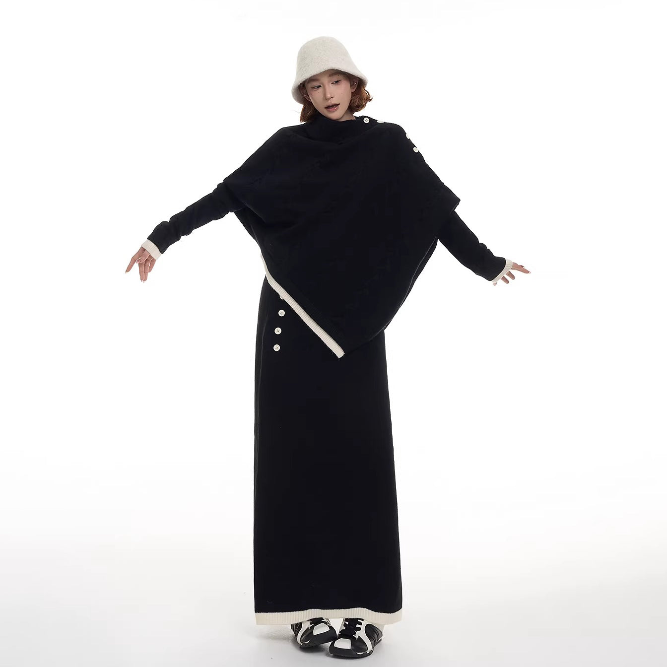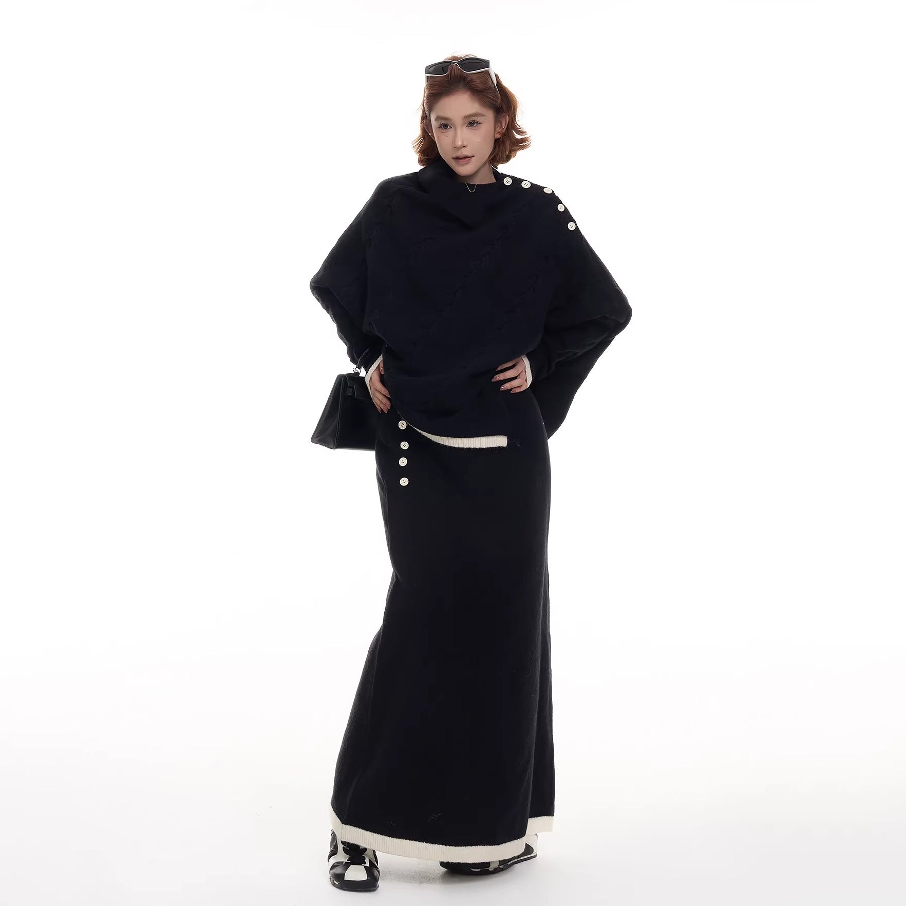 【単品注文】【セットアップ】不規則 配色切替 長袖ニット+スカート 上下セット レディース 秋冬 韓国風 ゆったり ルーズ カジュアル【JZシリーズ】