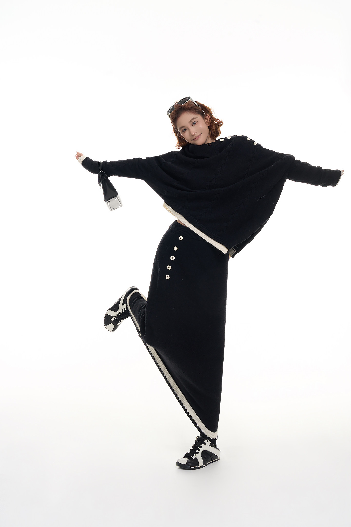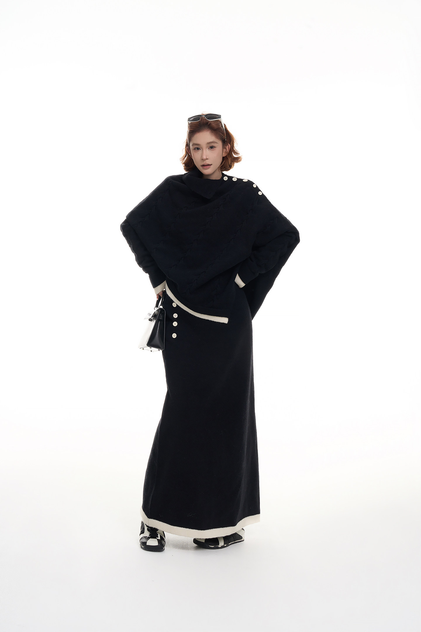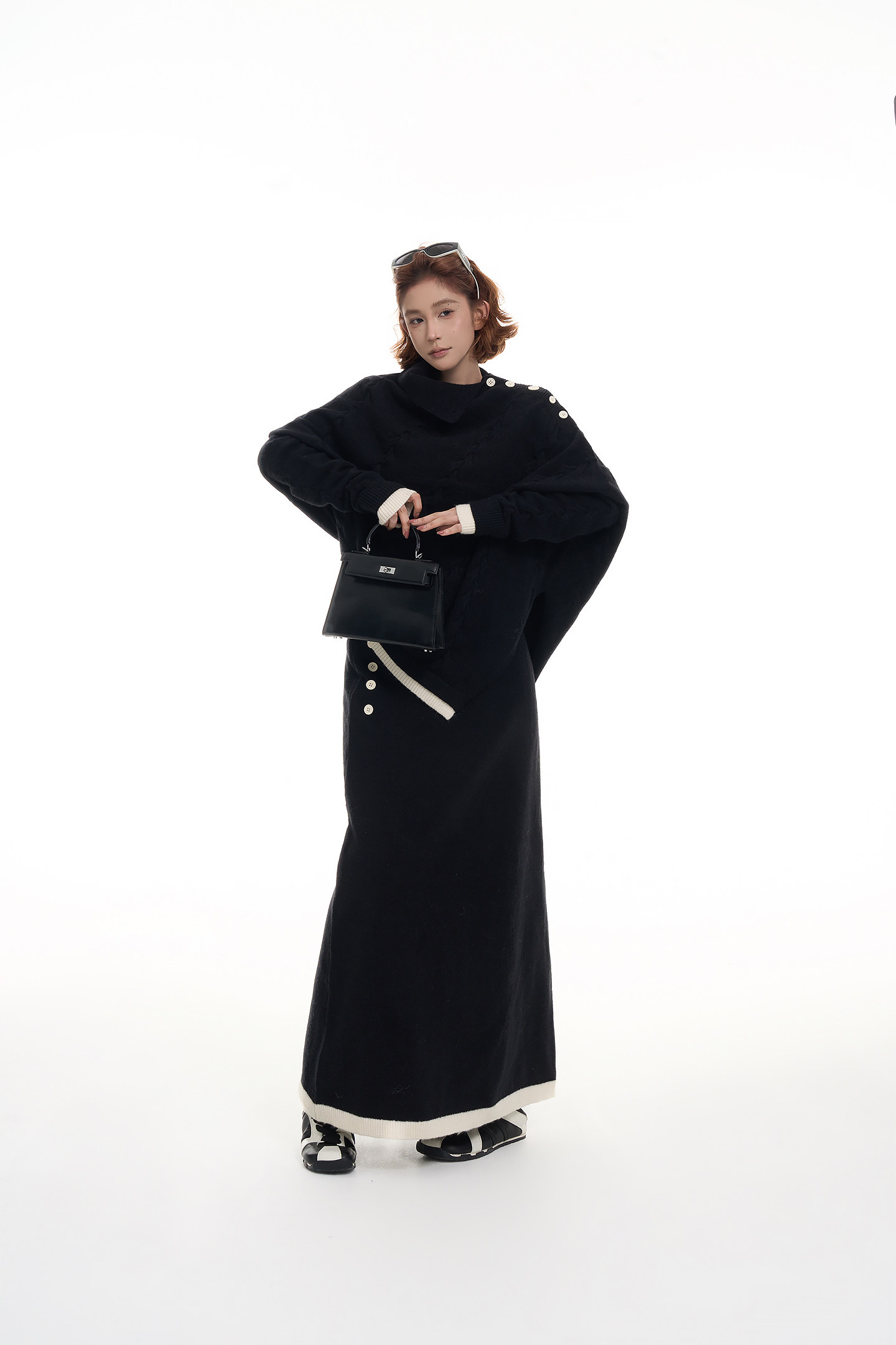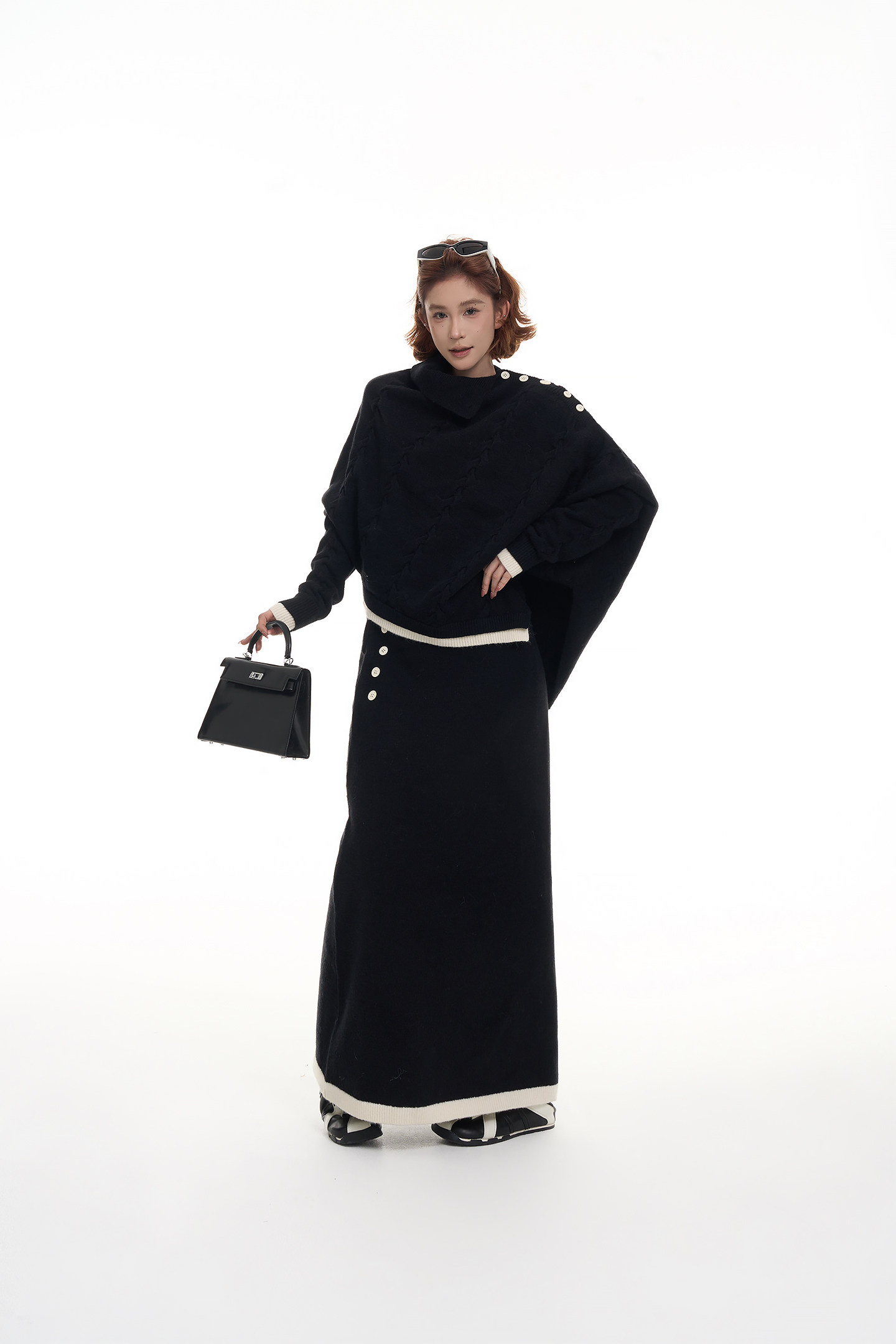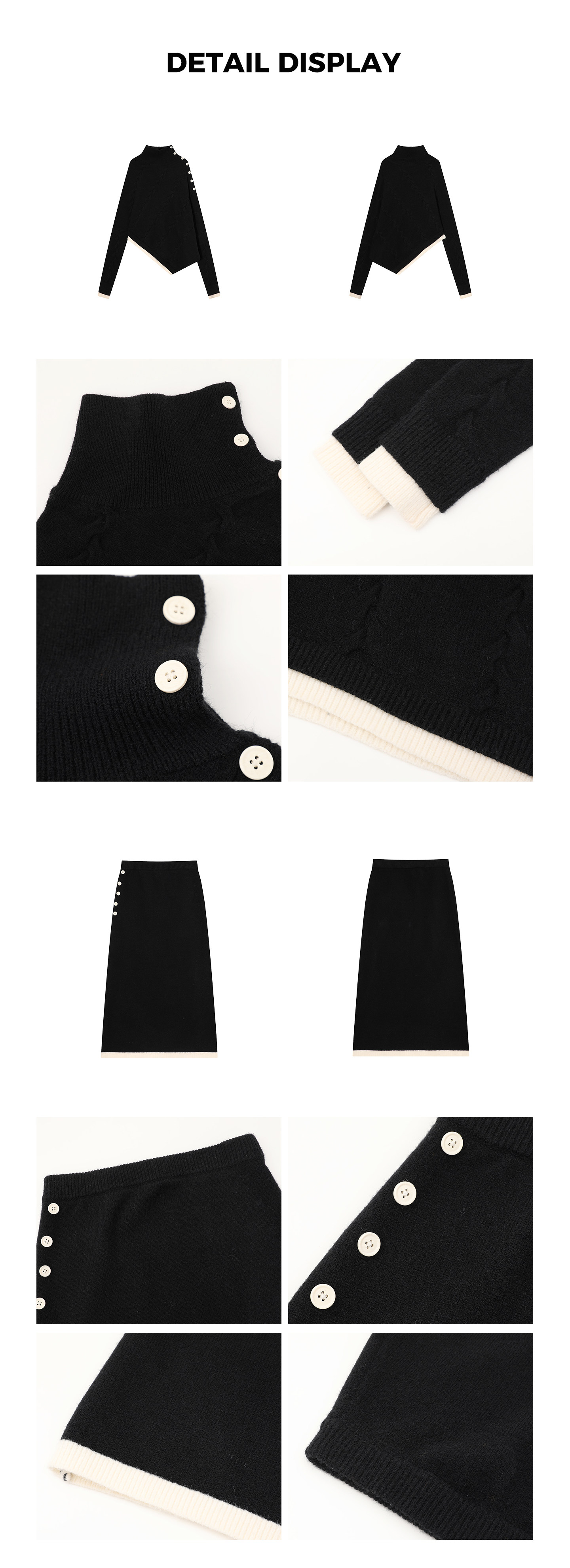 【単品注文】【セットアップ】不規則 配色切替 長袖ニット+スカート 上下セット レディース 秋冬 韓国風 ゆったり ルーズ カジュアル【JZシリーズ】