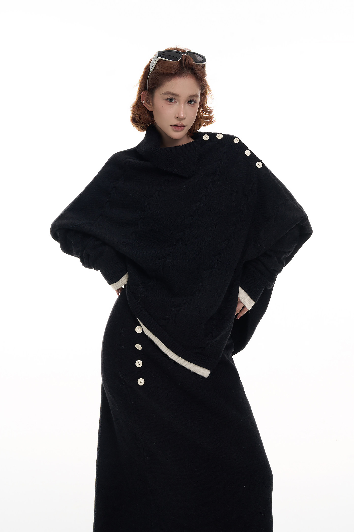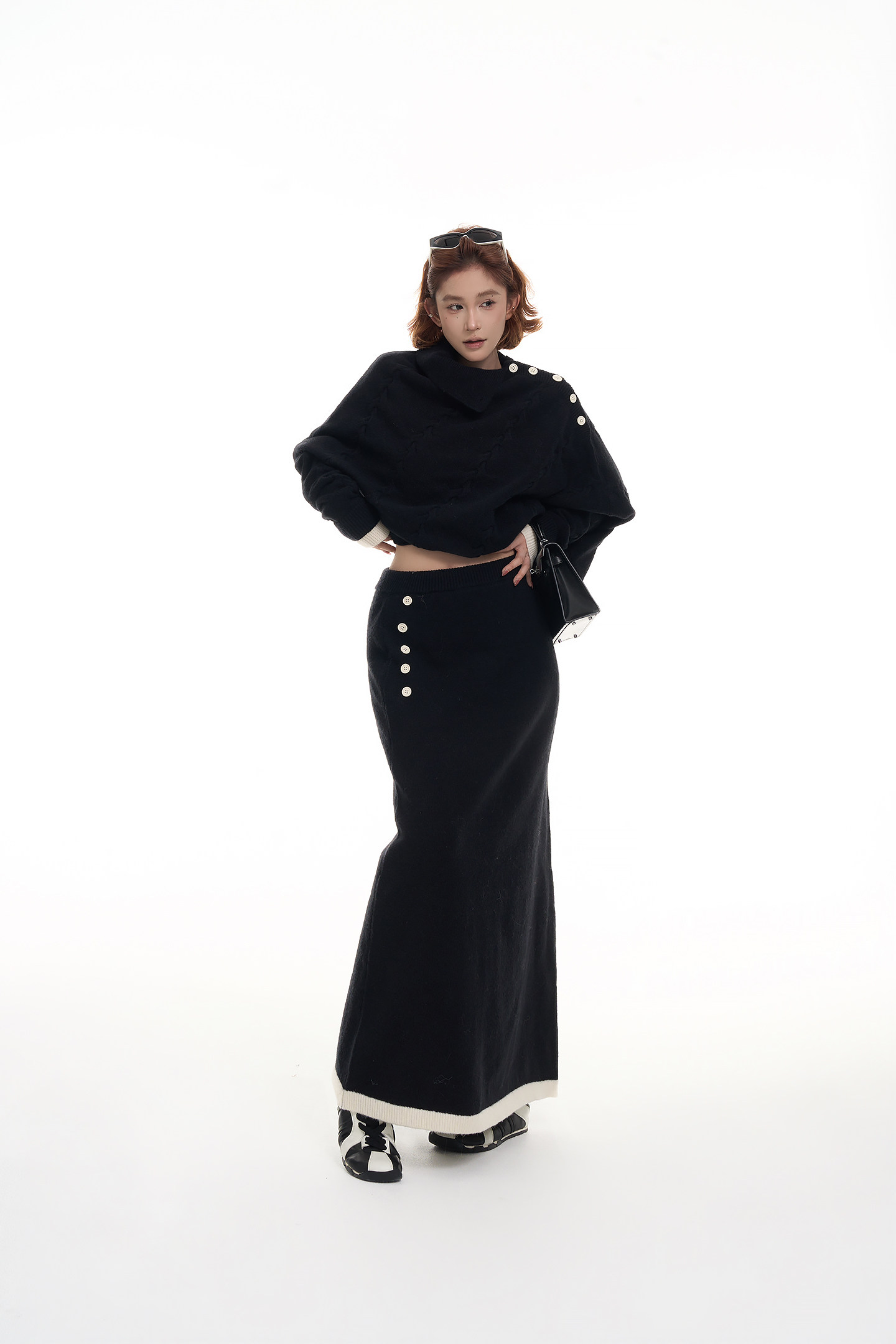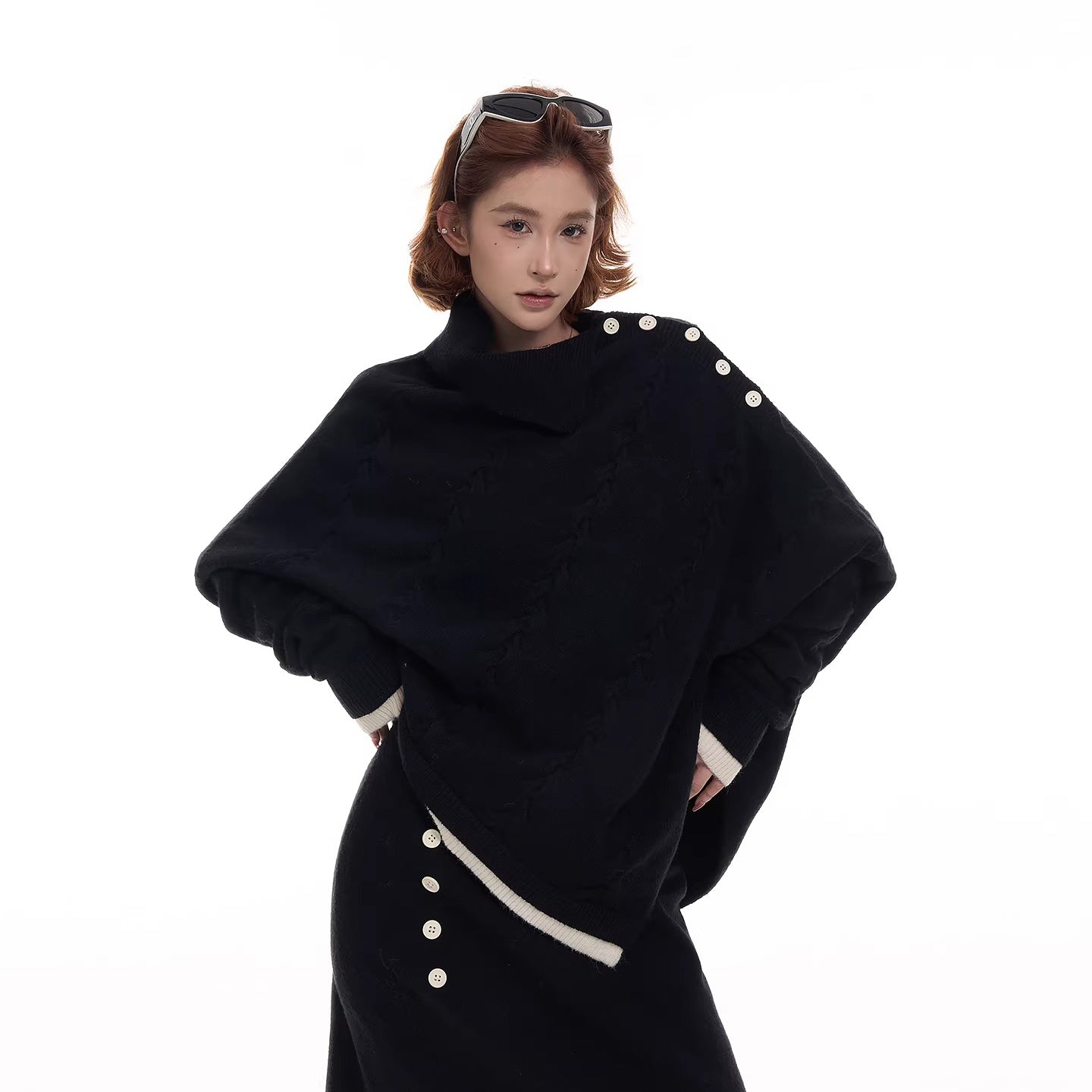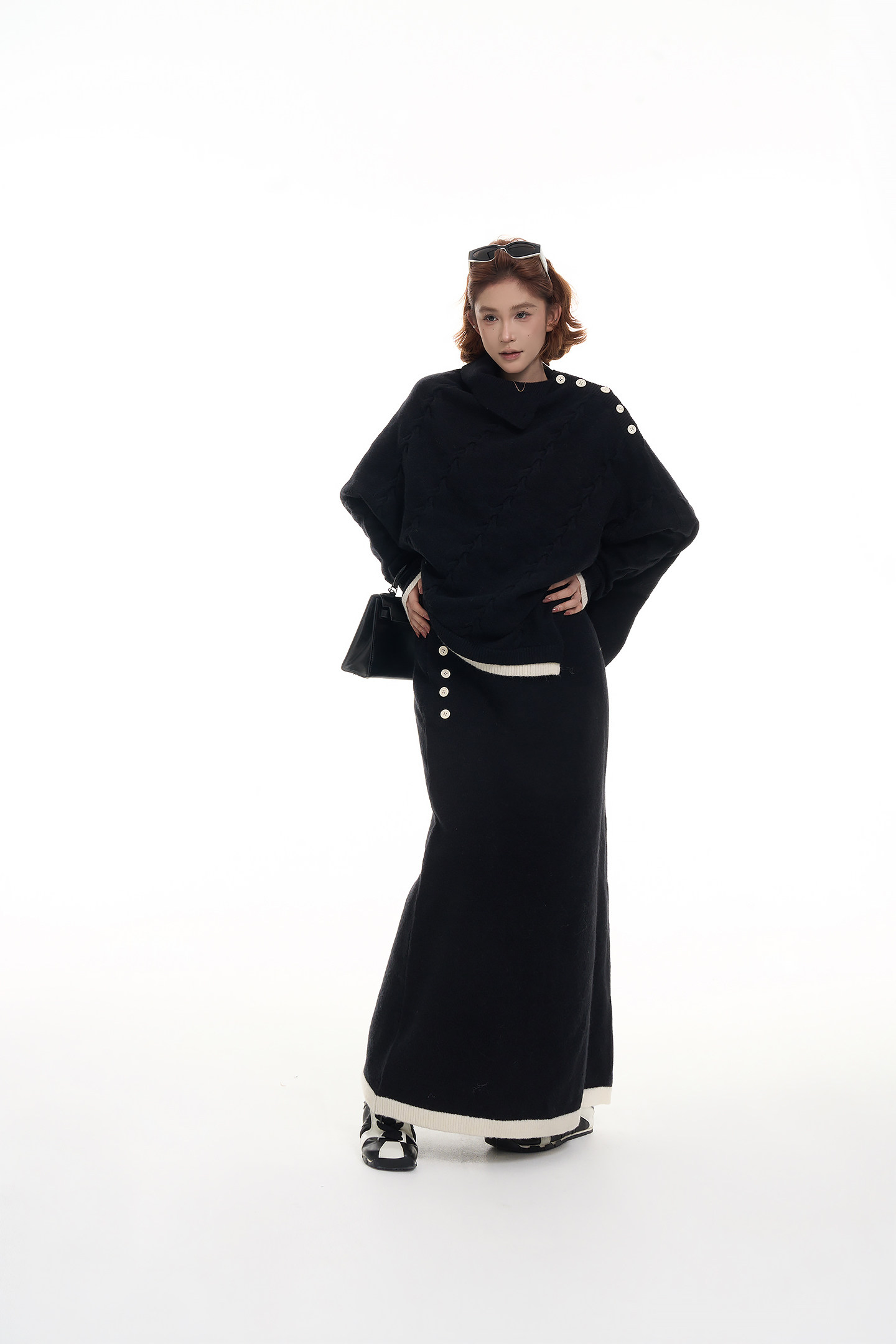 【単品注文】【セットアップ】不規則 配色切替 長袖ニット+スカート 上下セット レディース 秋冬 韓国風 ゆったり ルーズ カジュアル【JZシリーズ】
