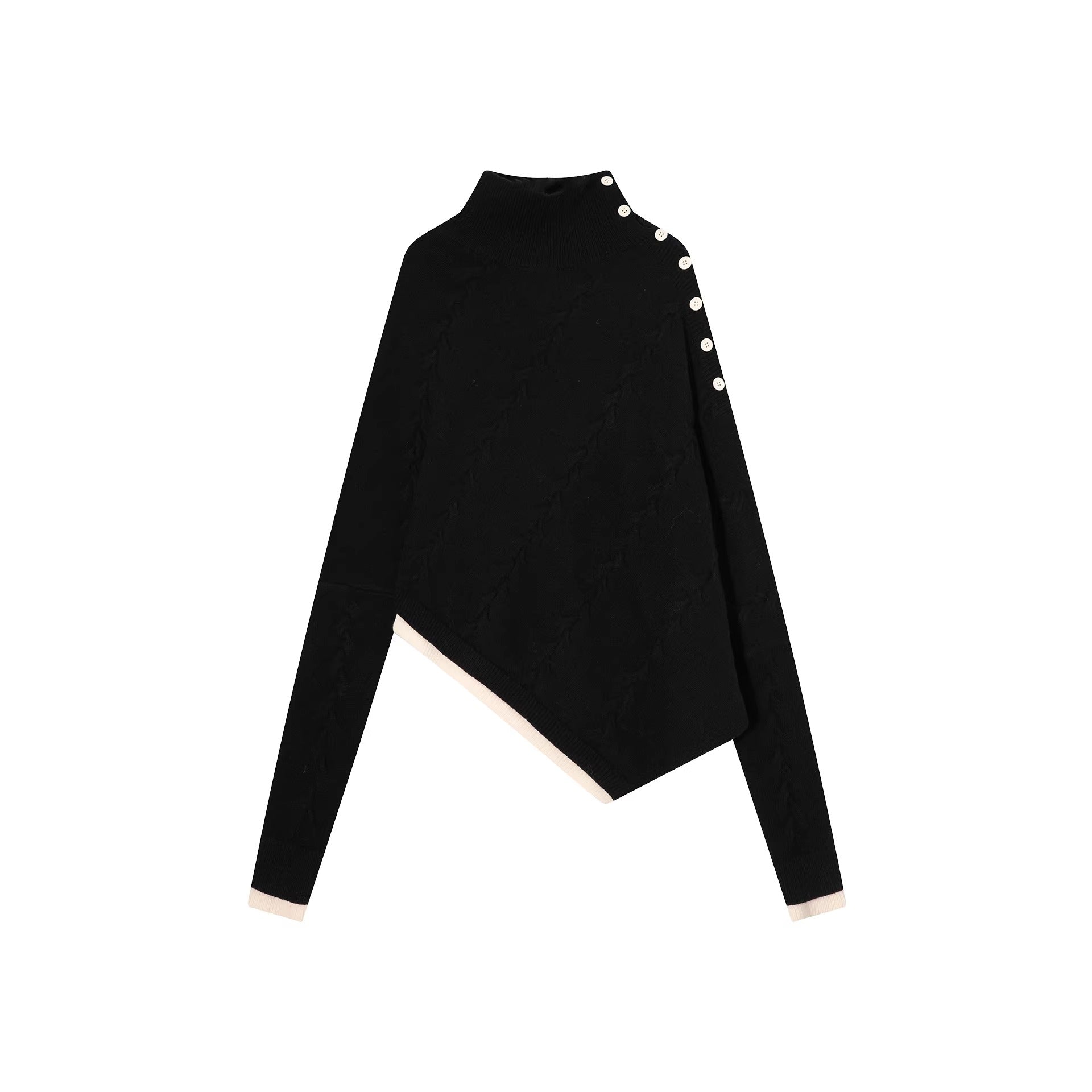 【商品名】【単品注文】【セットアップ】不規則 配色切替 長袖ニット+スカート 上下セット レディース 秋冬 韓国風 ゆったり ルーズ カジュアル【JZシリーズ】