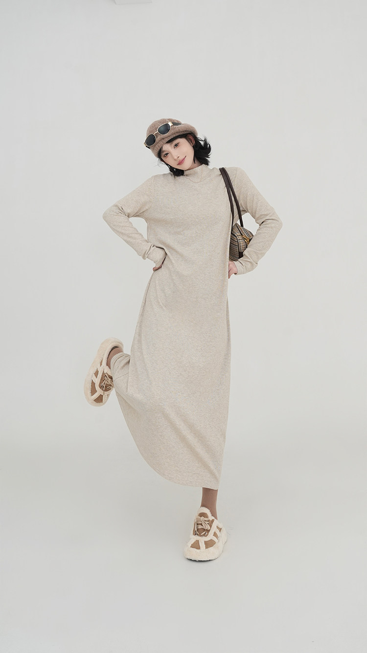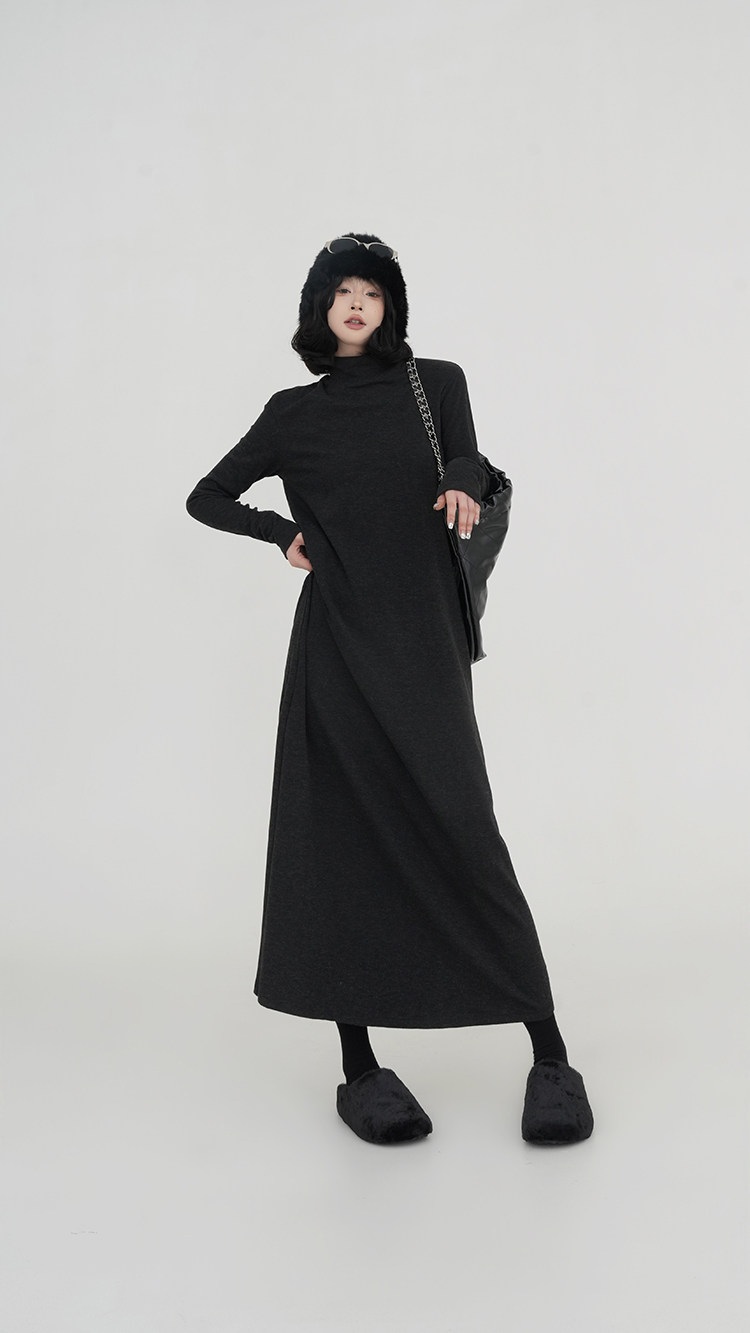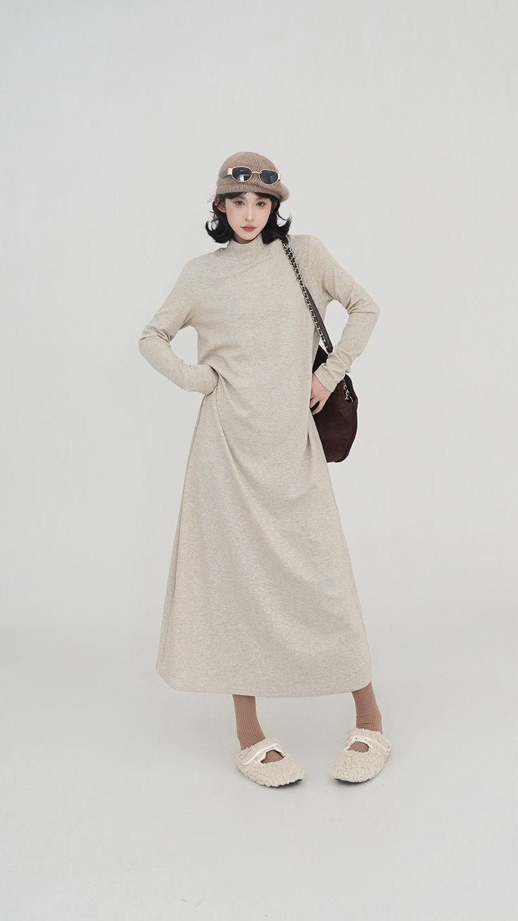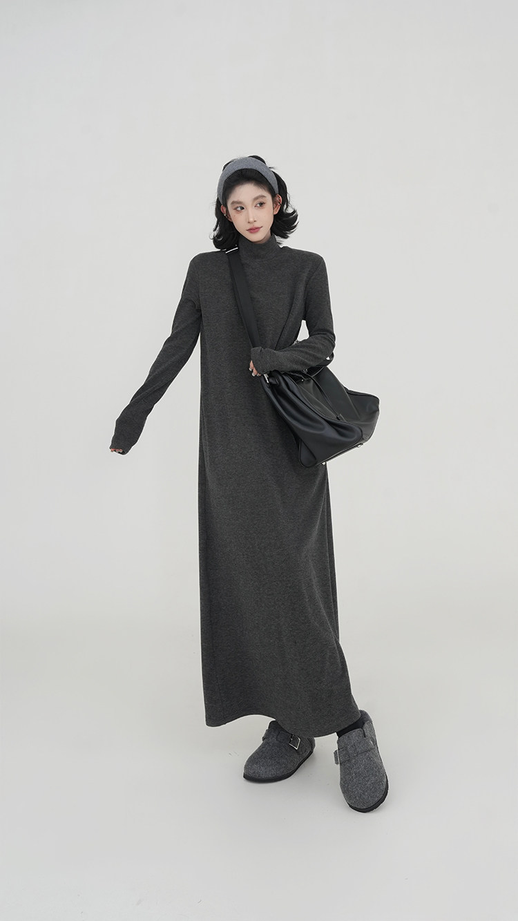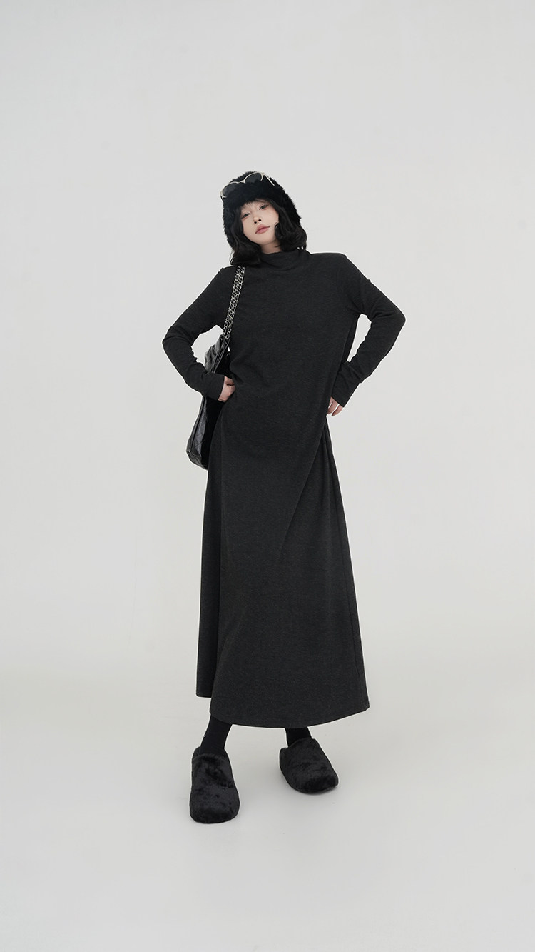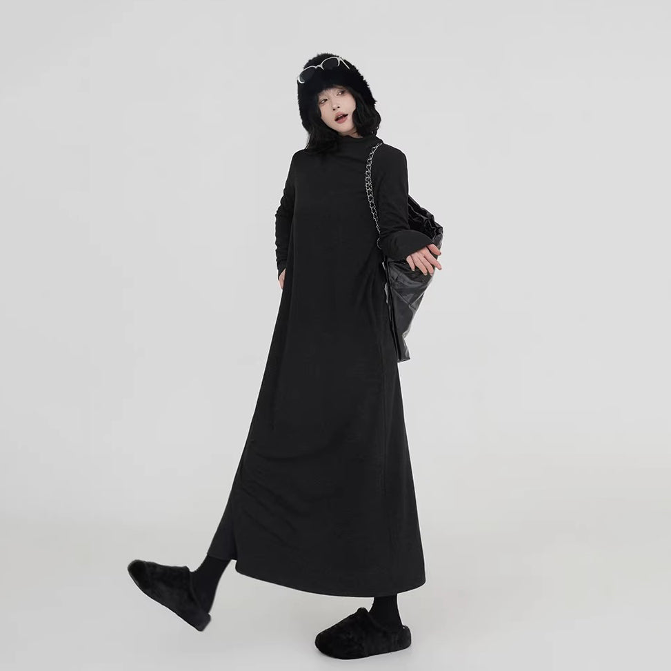 【ワンピース】無地 ハイネック ニット長袖ワンピース レディース 秋冬 韓国風 ゆったり ルーズ ロング丈 Aライン【JZシリーズ】