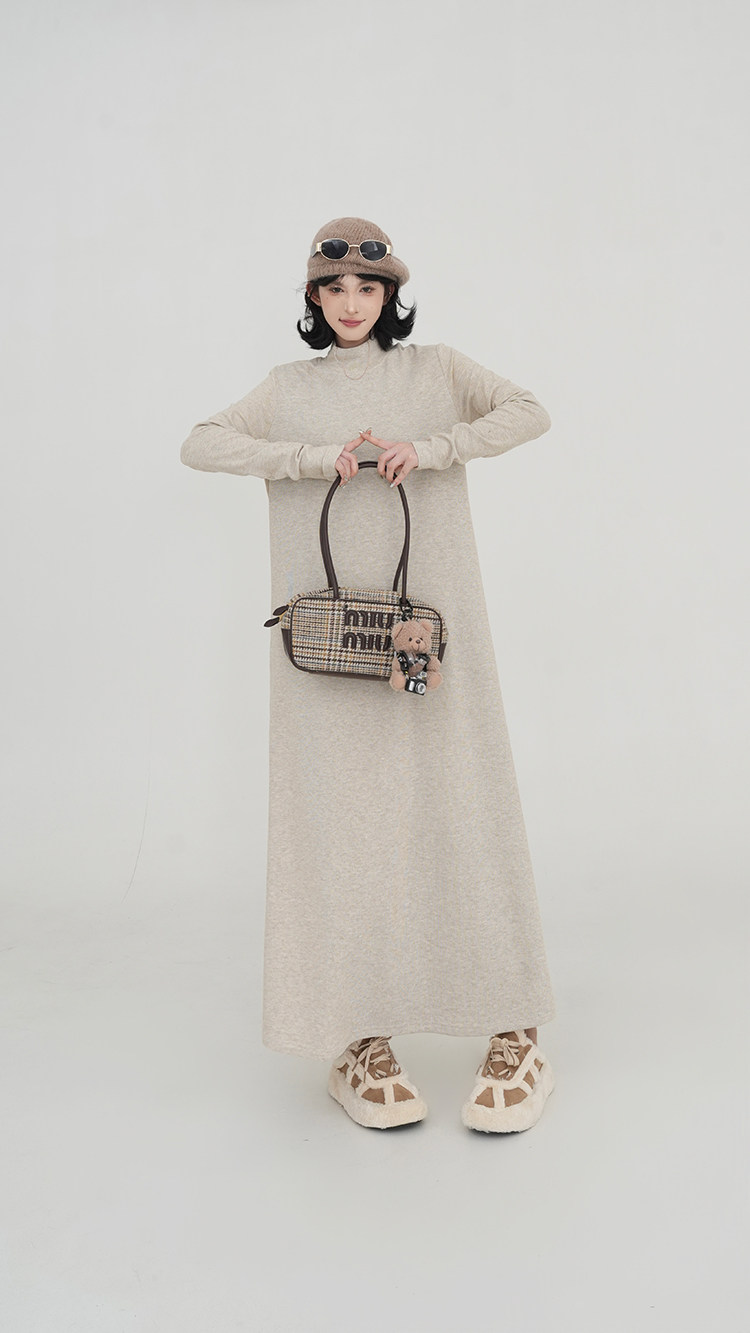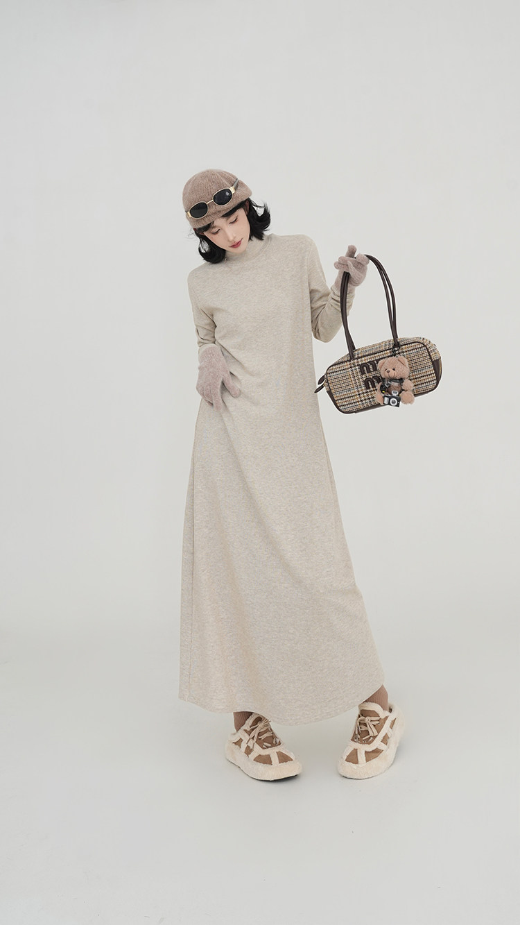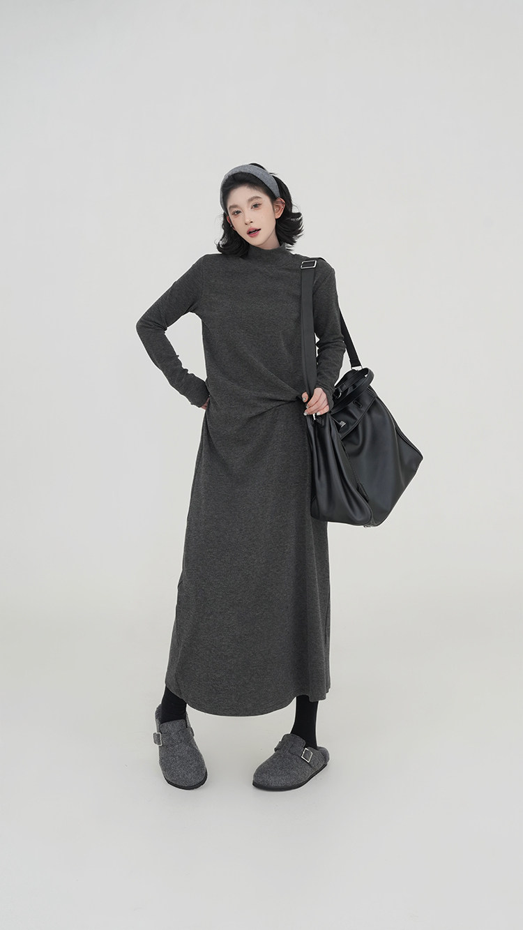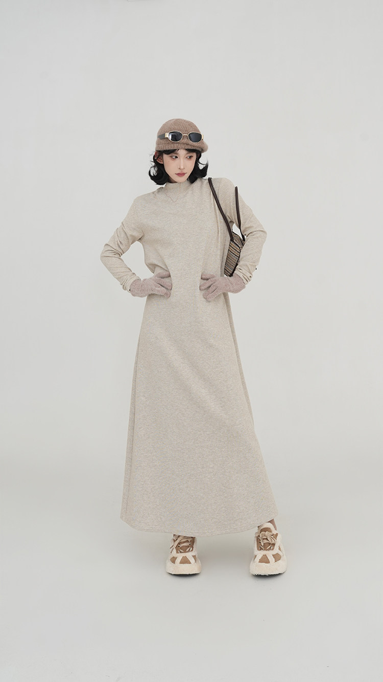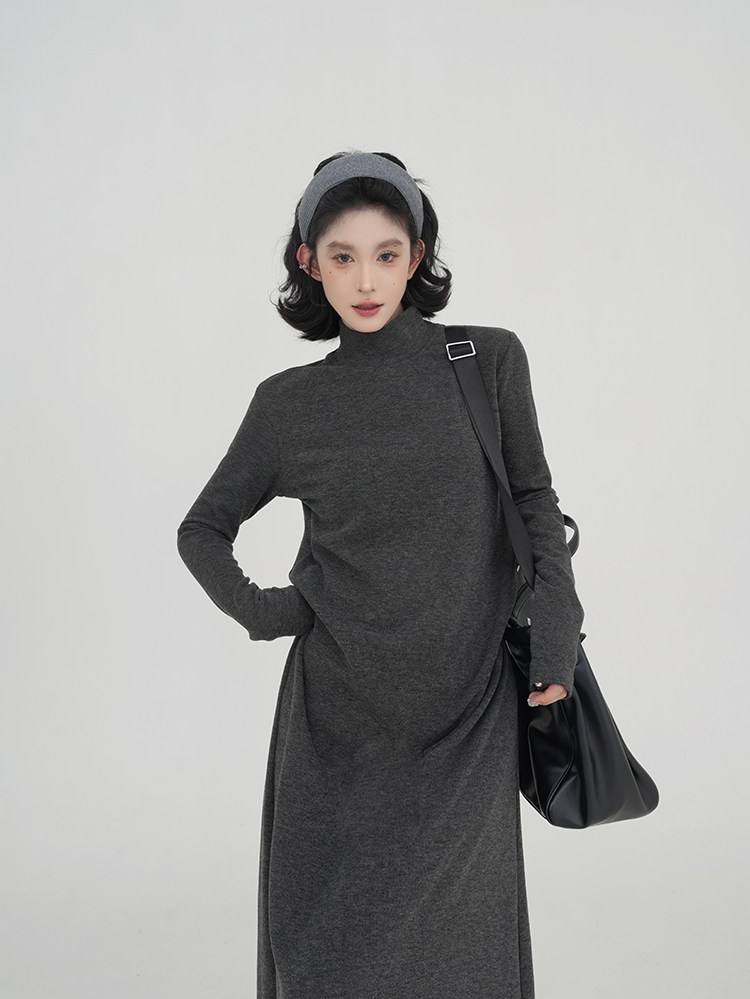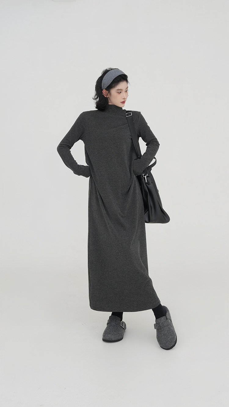 【ワンピース】無地 ハイネック ニット長袖ワンピース レディース 秋冬 韓国風 ゆったり ルーズ ロング丈 Aライン【JZシリーズ】