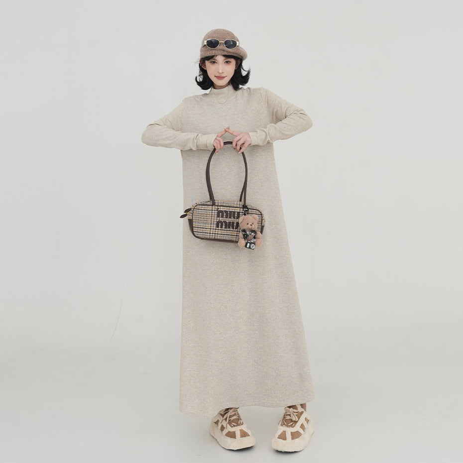 【商品名】【ワンピース】無地 ハイネック ニット長袖ワンピース レディース 秋冬 韓国風 ゆったり ルーズ ロング丈 Aライン【JZシリーズ】