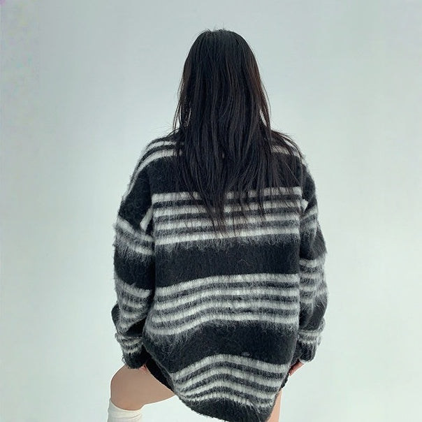 【トップス】ふわふわフェイクミンクグラデーション フード付きニットセーター レディース 秋冬 高級感 オーバーサイズ トップス【FCシリーズ】