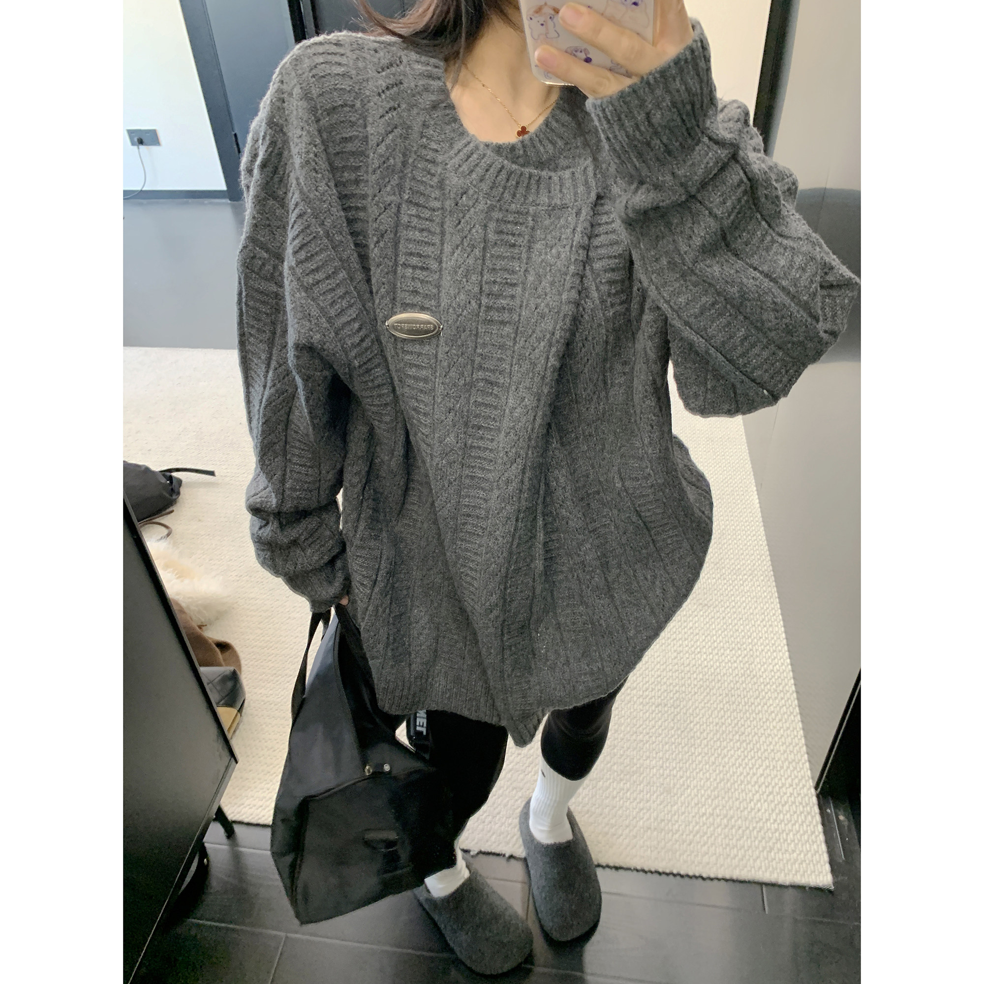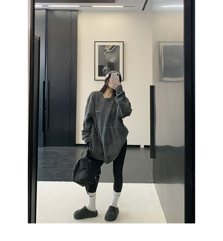 【トップス】アメリカンレトロ 猫柄ジャカード クルーネック ニット レディース 秋 ゆったり ルーズ シンプル 着回し セーター【FCシリーズ】