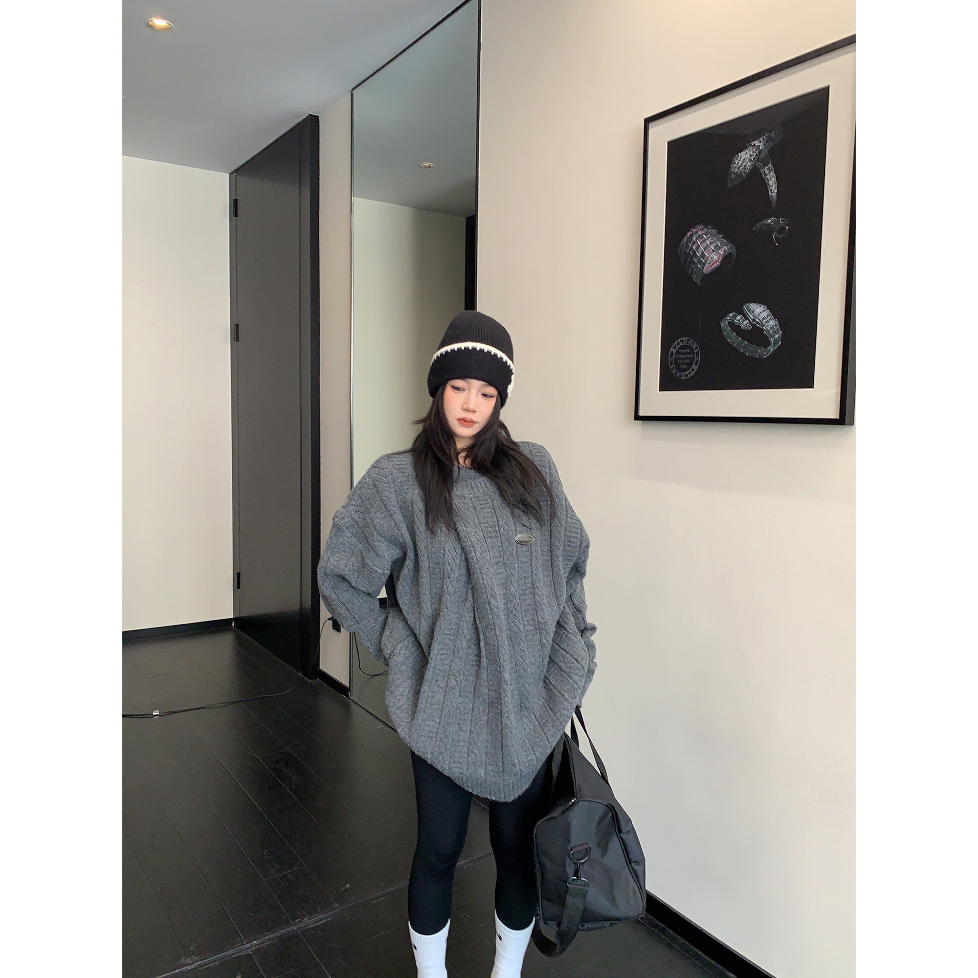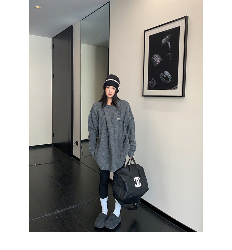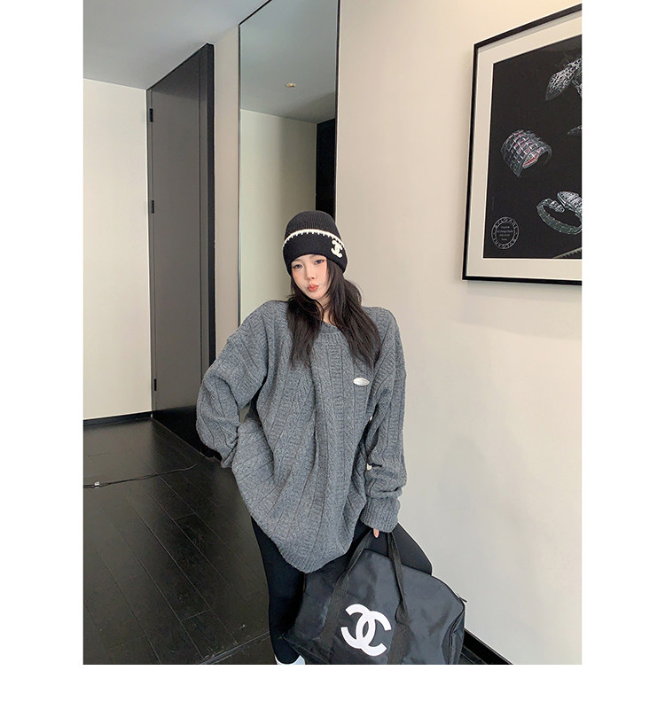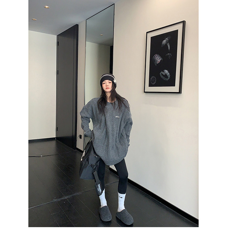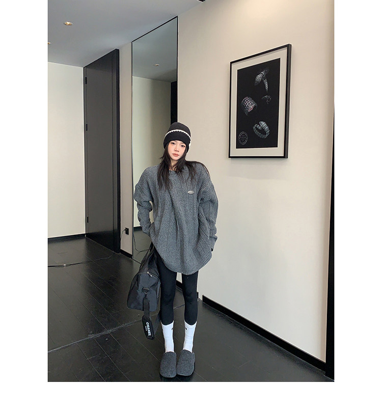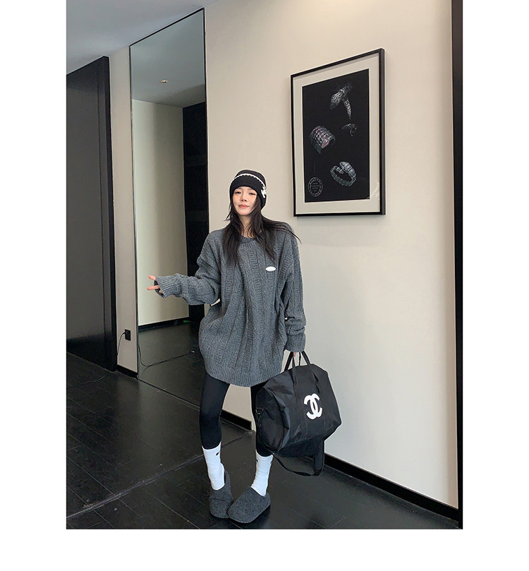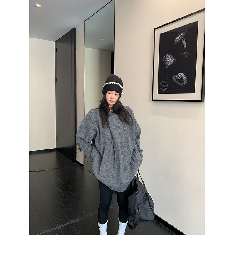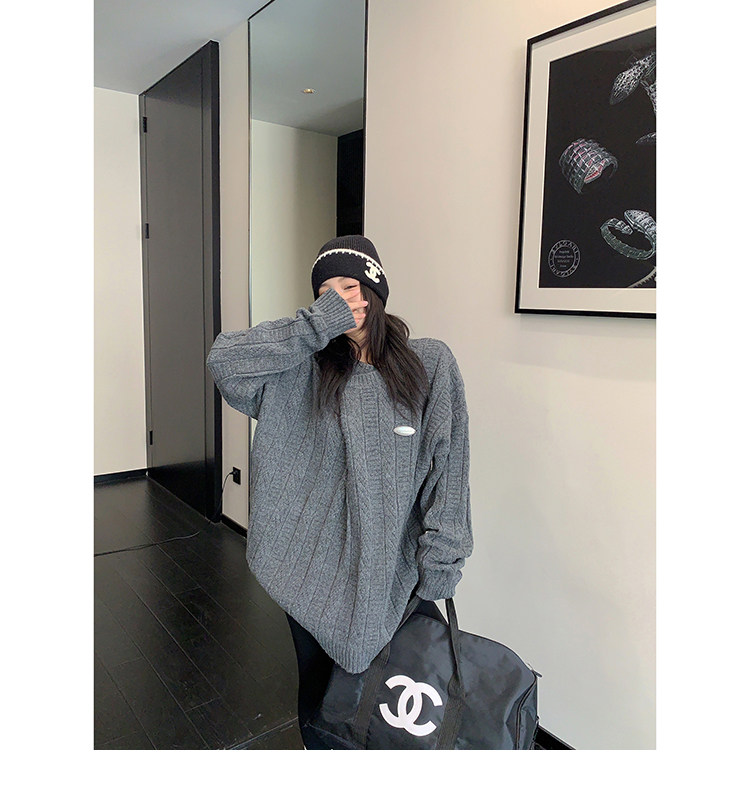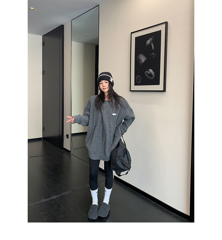 【トップス】レトロ デザイン 小犬柄 クルーネック ニット レディース ゆったり ルーズ 着回し セーター【FCシリーズ】