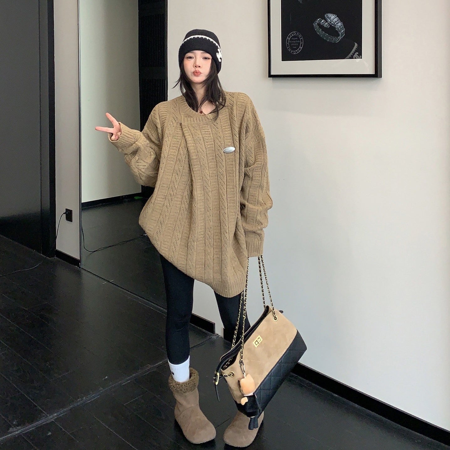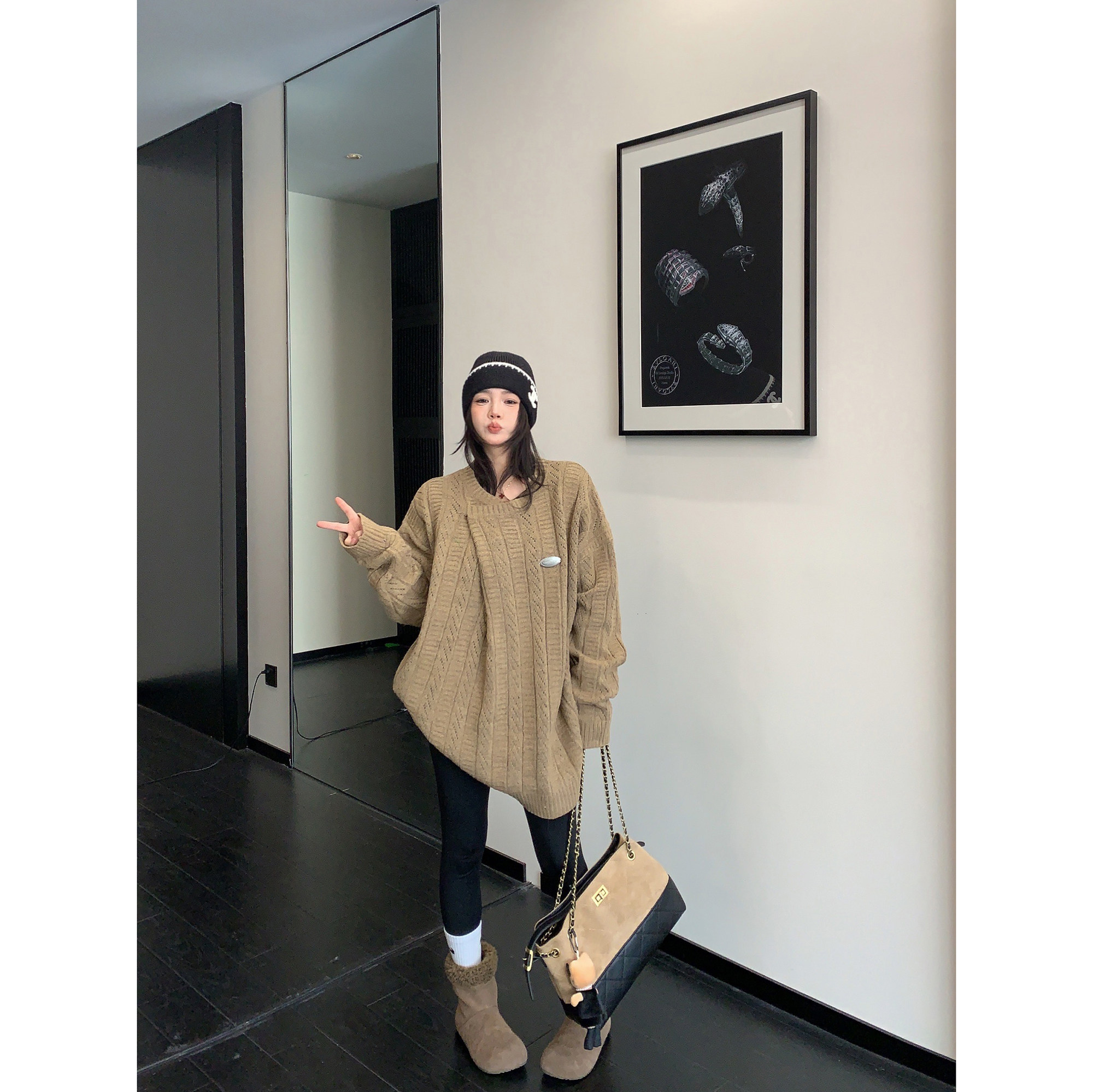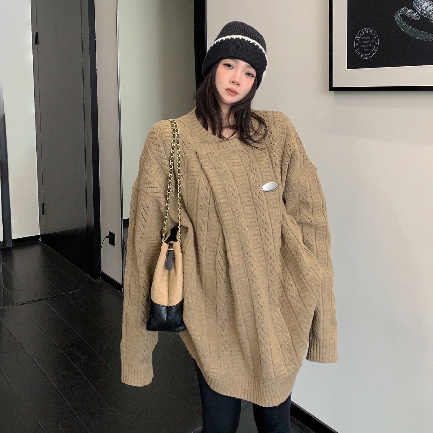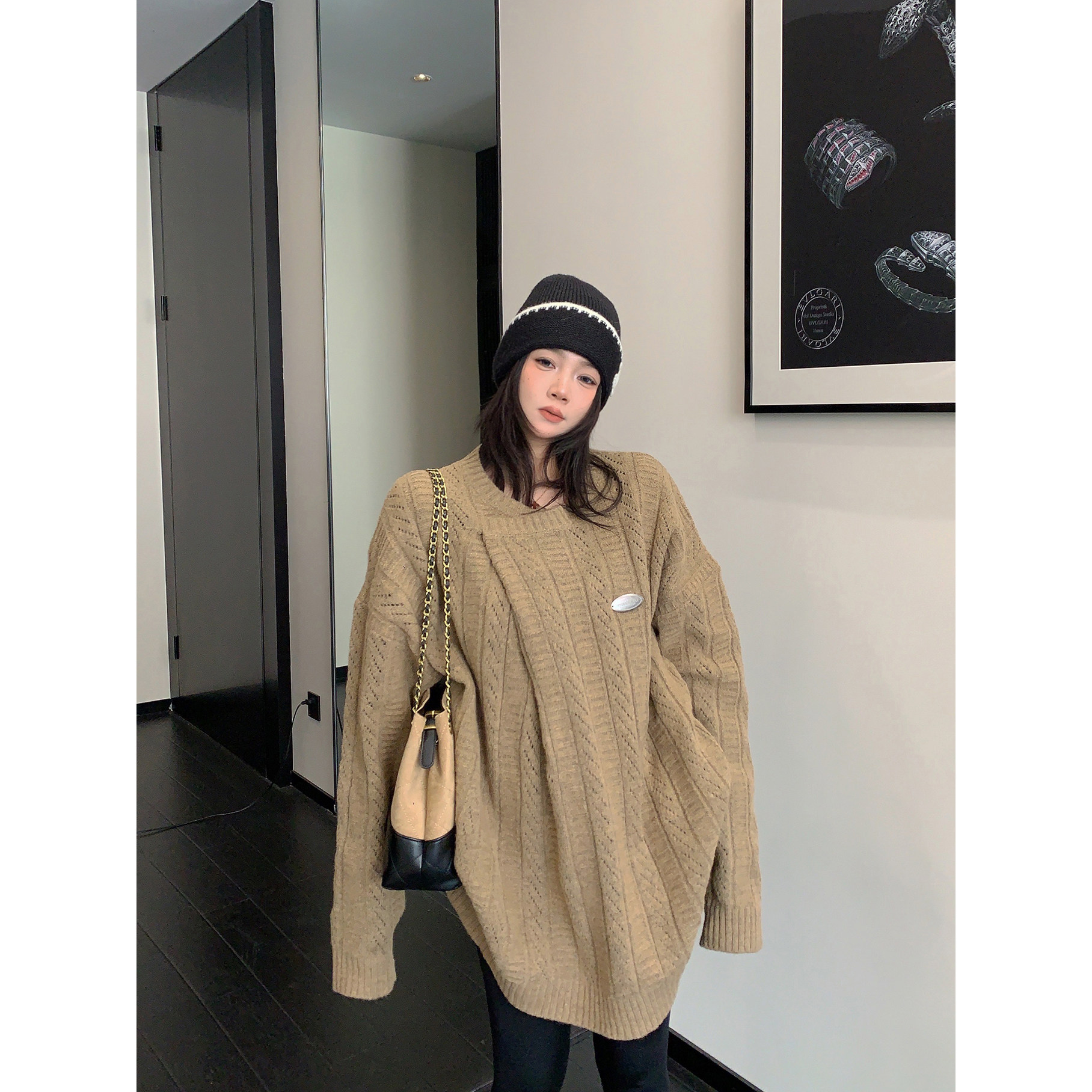 1/30~2/1⭐️期間限定 60%OFF !🏆 売れ筋No.1【トップス】ユニセックス対応 レトロ 豹柄 猫 ゆったり ラウンドネック ネコ柄 ニットセーター【FCシリーズ】