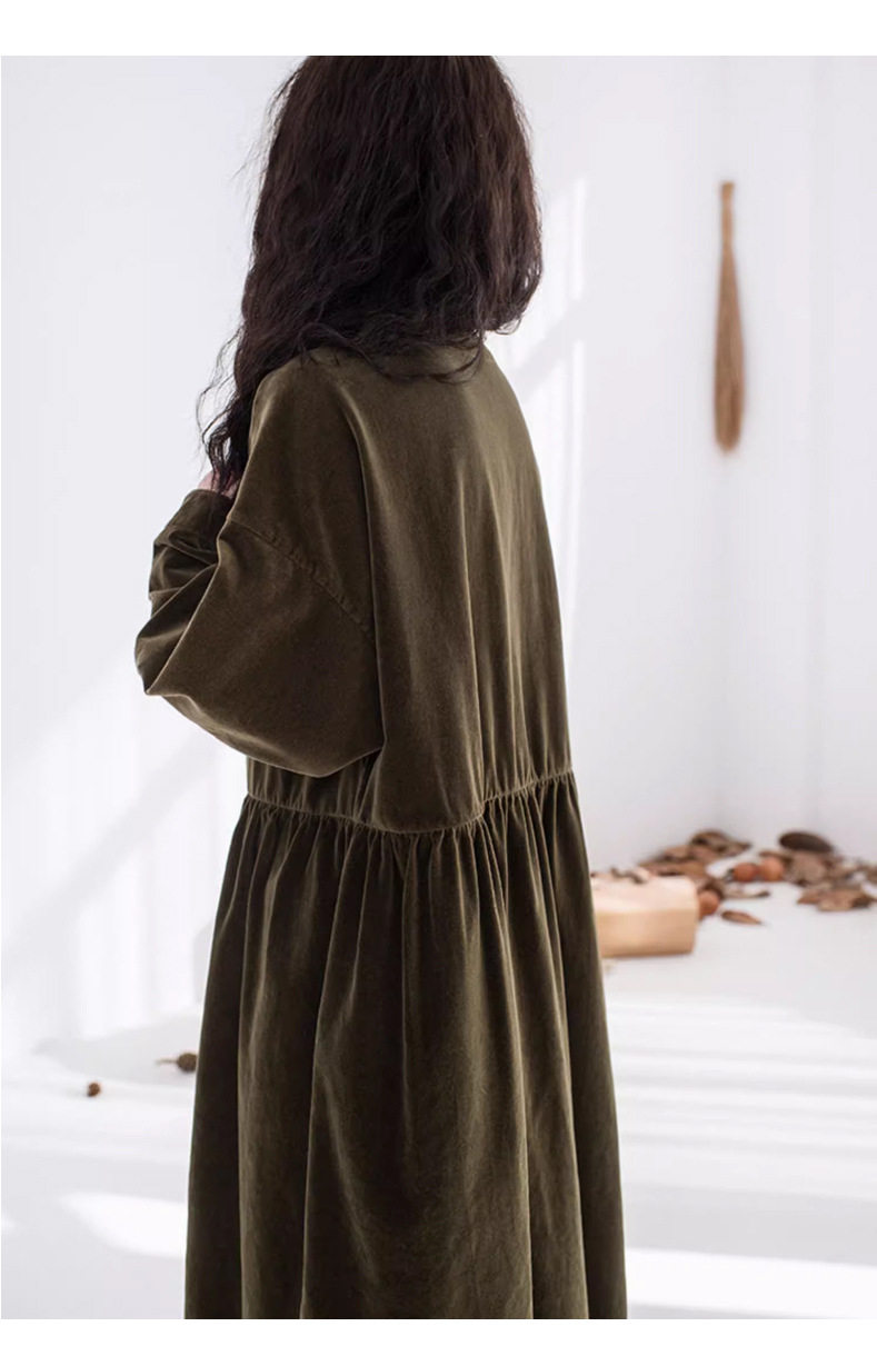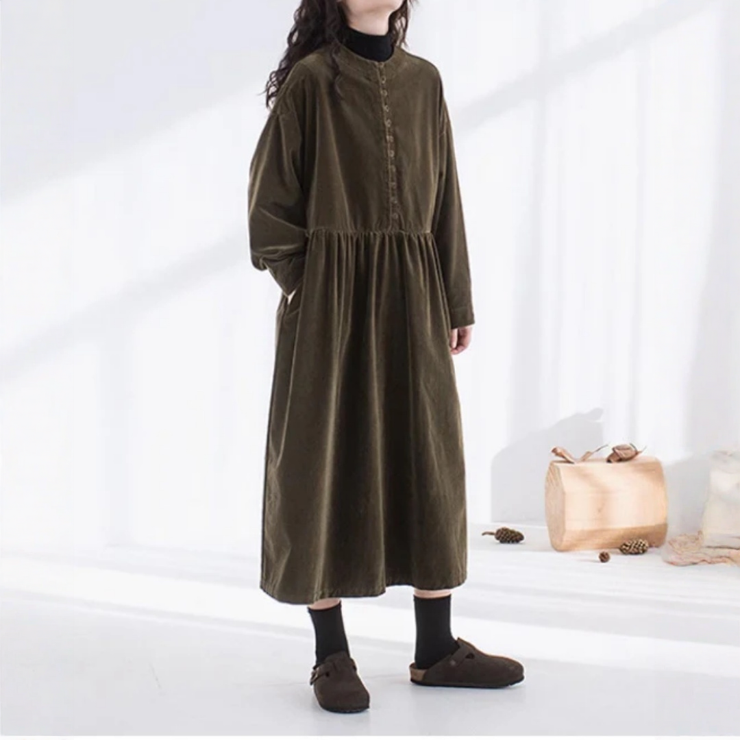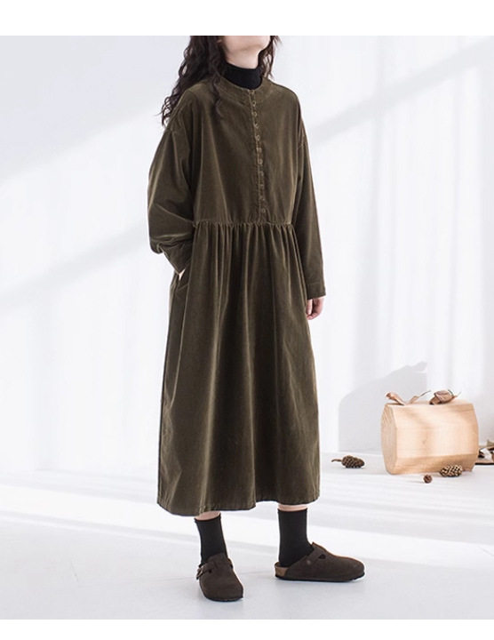 【ワンピース】コーデュロイ クルーネック ゆったり 長袖 ワンピース 【JZシリーズ】