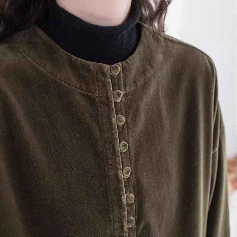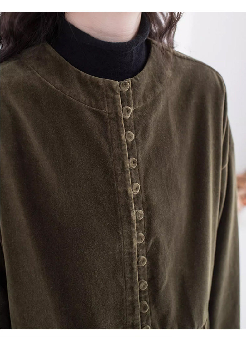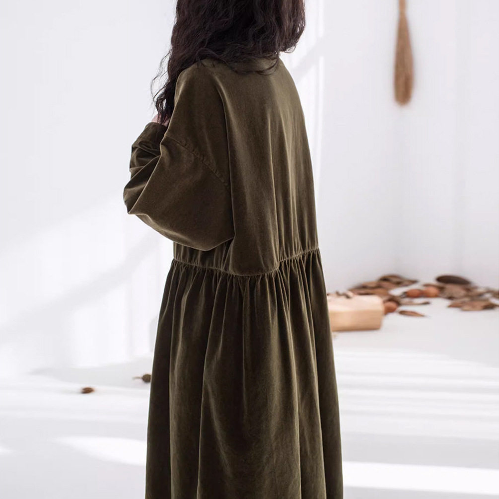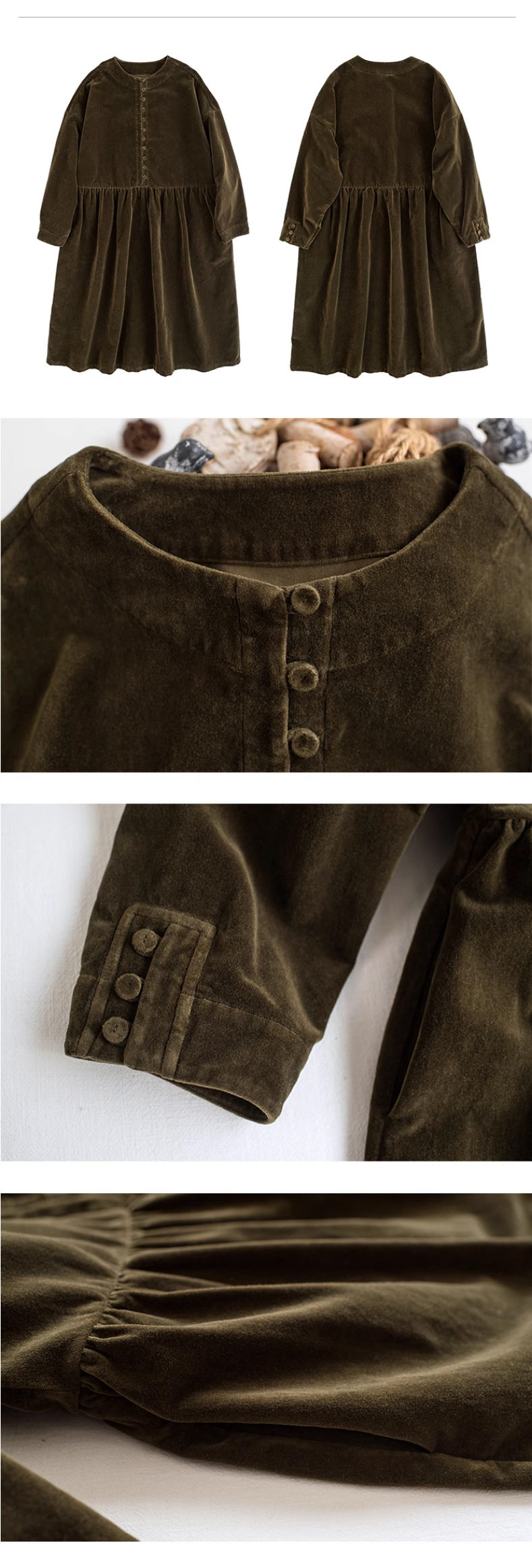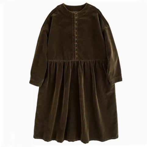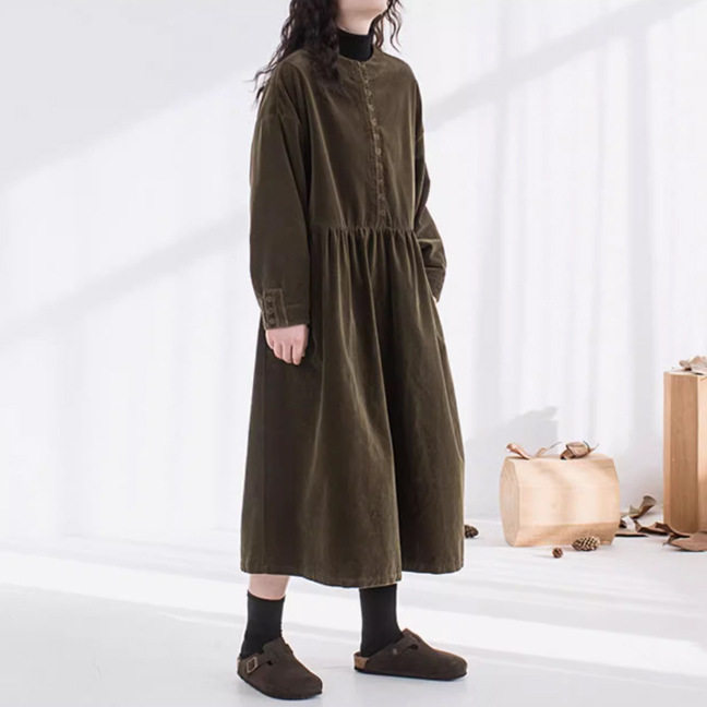 【商品名】【ワンピース】コーデュロイ クルーネック ゆったり 長袖 ワンピース 【JZシリーズ】