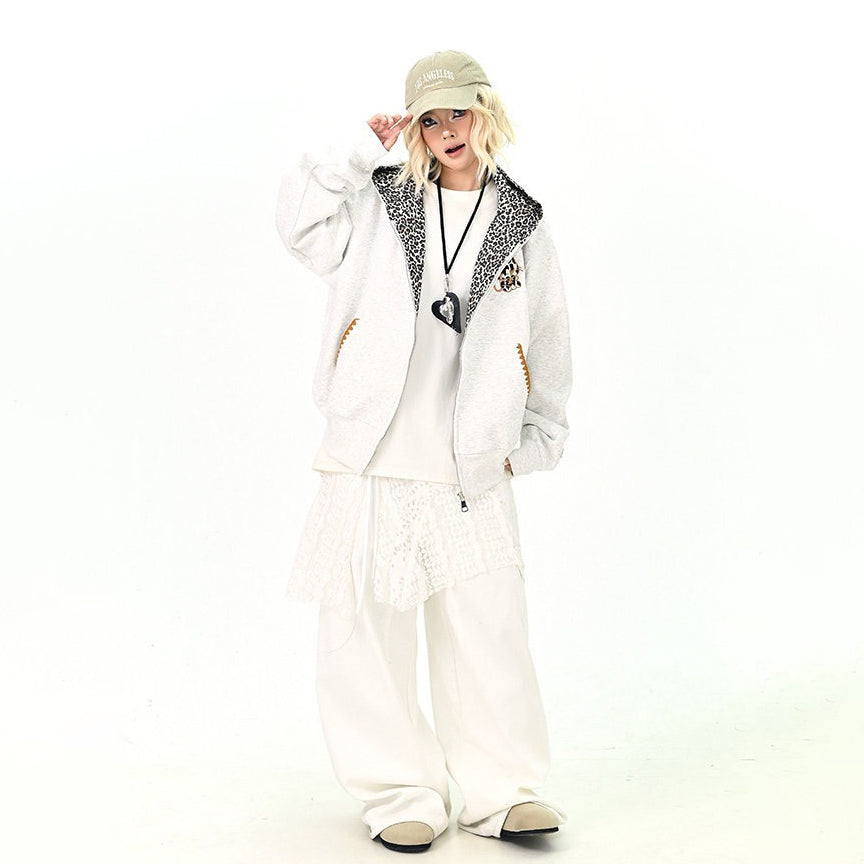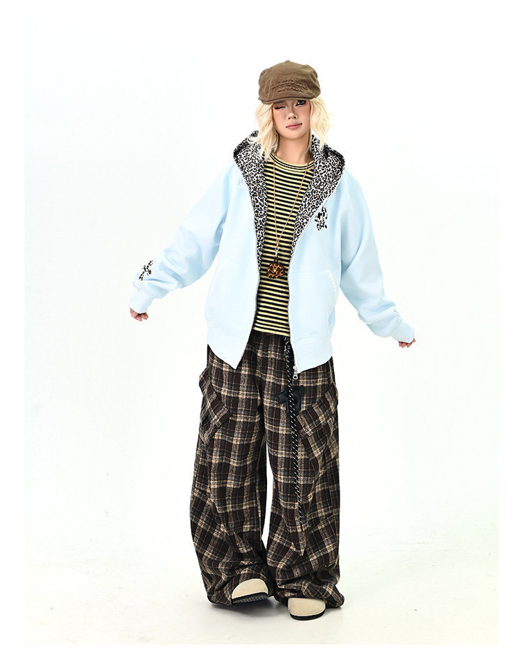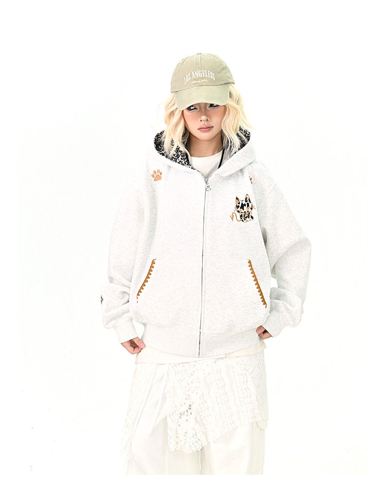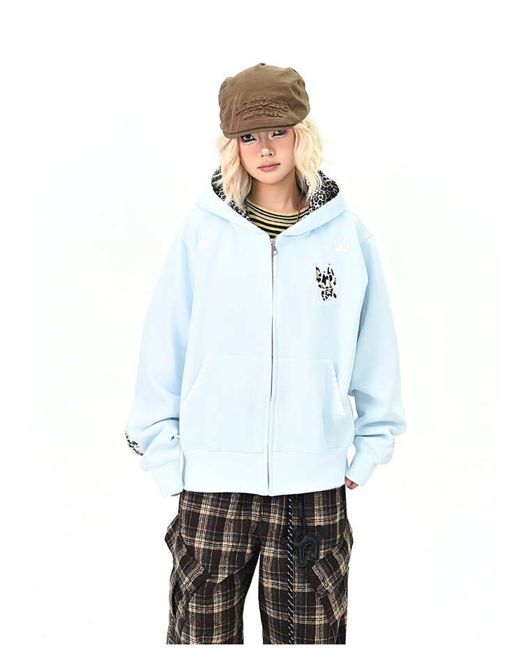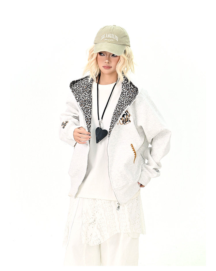 【アウター】アメリカンヴィンテージ レオパード ロゴ ジップアップパーカー ゆったり 男女兼用 カジュアルカーディガン【FCシリーズ】