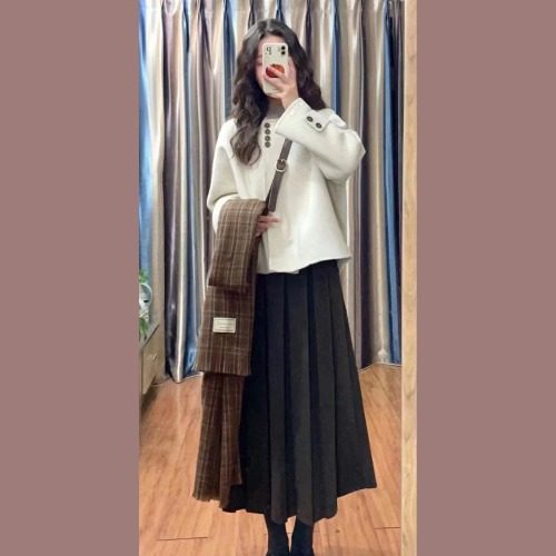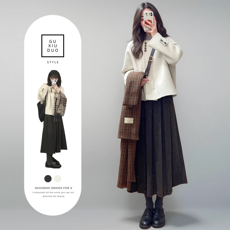 【商品名】【セットアップ】韓国風 エレガント ジャケット + プリーツ スカート 2点上下セット 【JZシリーズ】