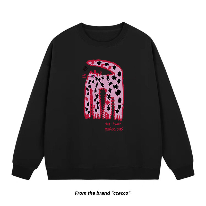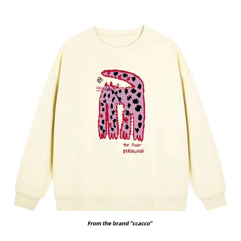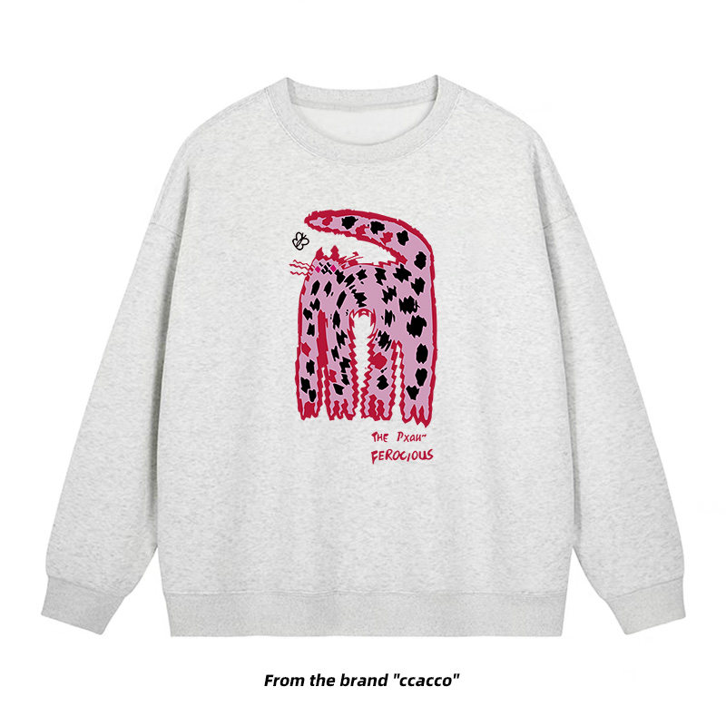 【商品名】【トップス】クルーネック ネコ スウェット レディース 韓国風 ゆったり 学生風 豹柄 猫 秋冬パーカー【FCシリーズ】