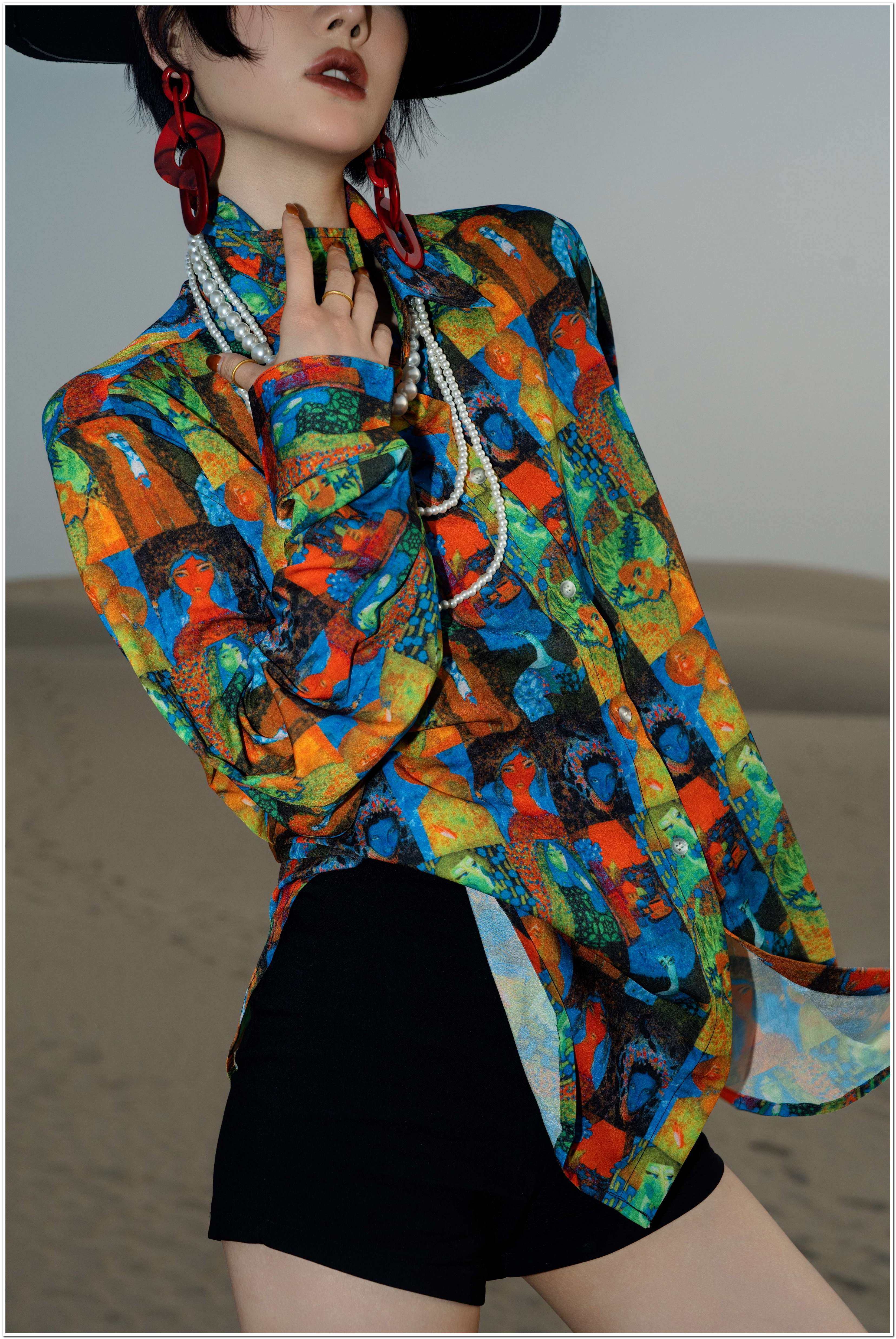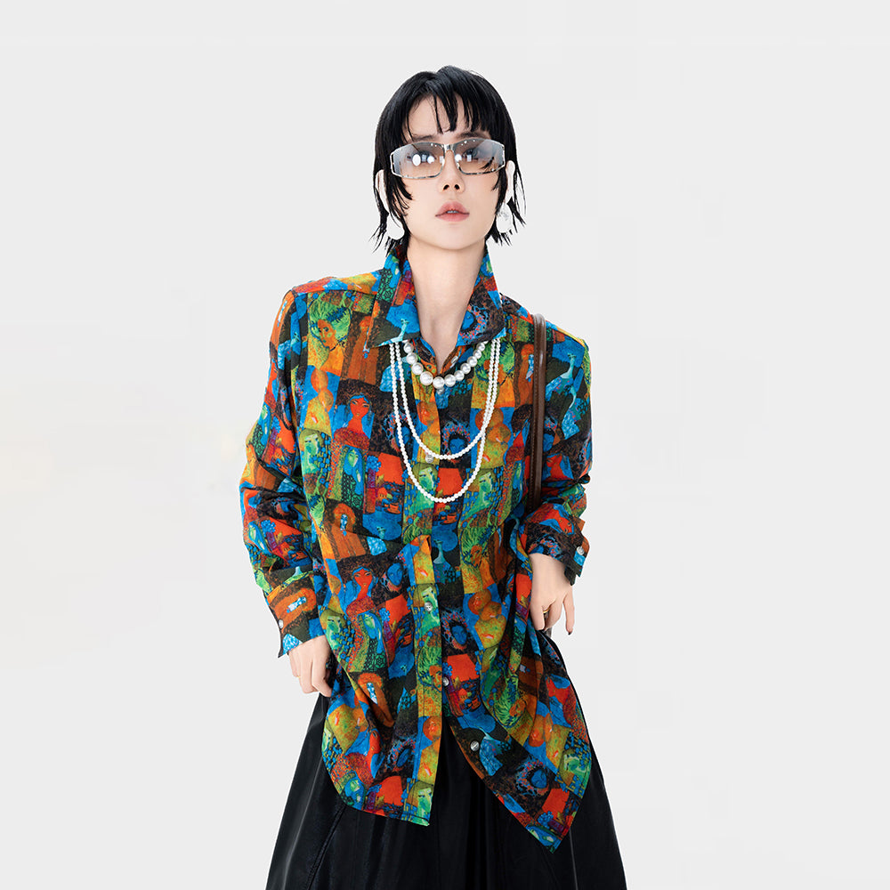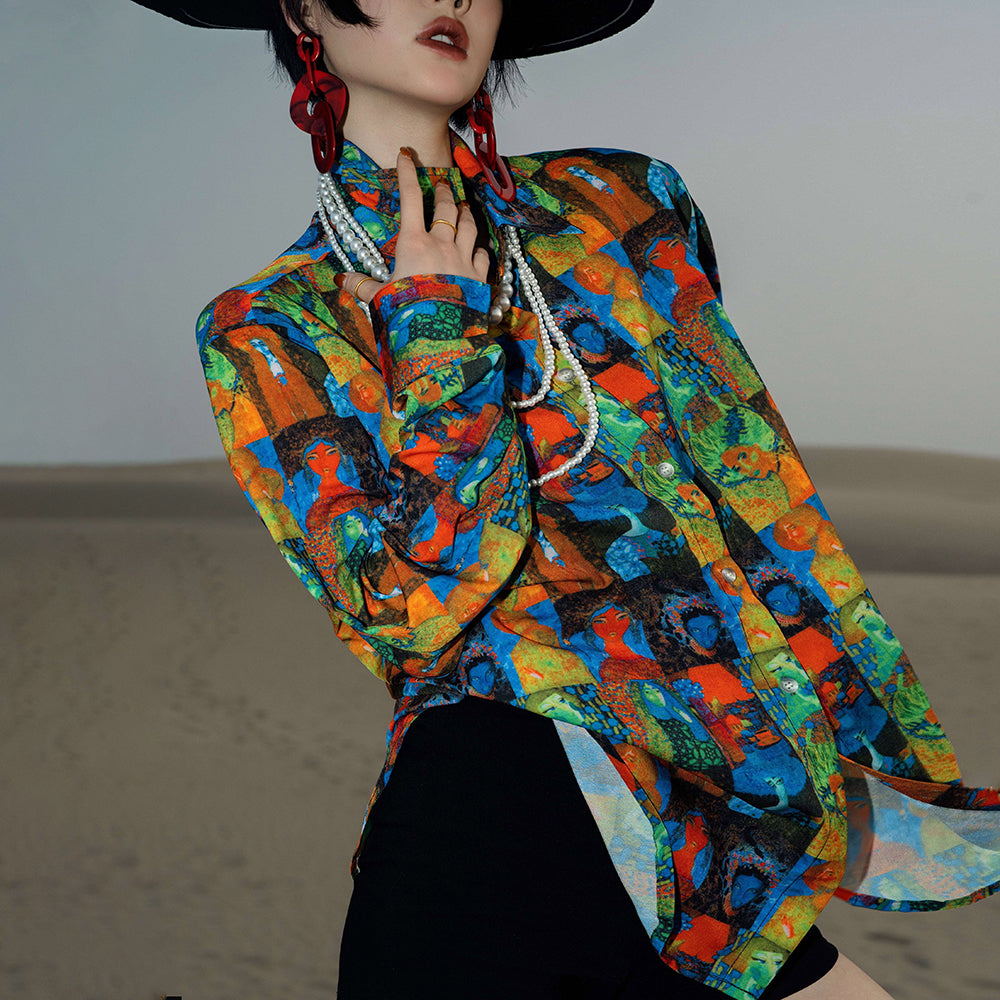 【トップス】フレンチレトロ ヘップバーン風 ブラウス レディース ヴィンテージフラワー 長袖 シャツ【SHシリーズ】【15~20日内発送】