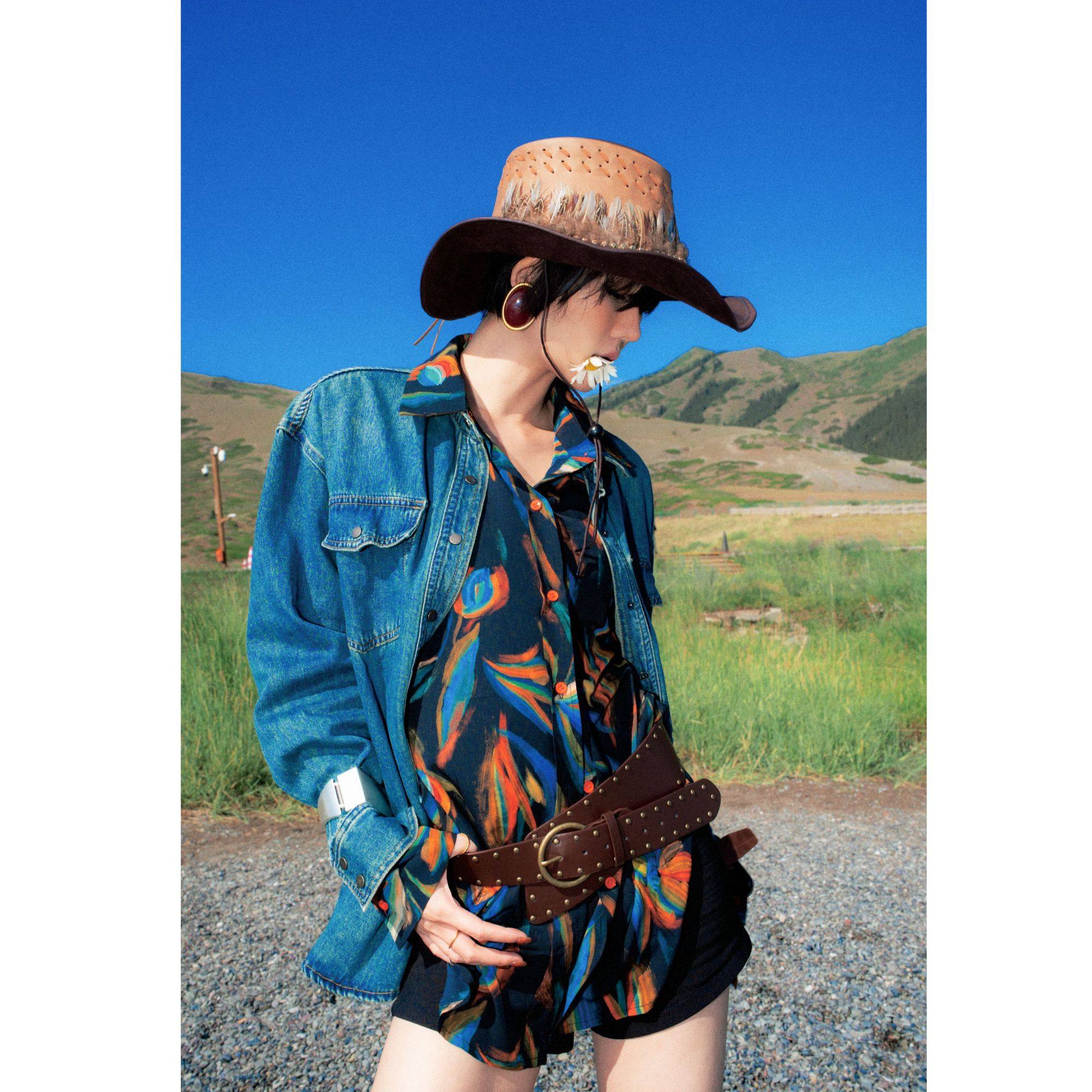【トップス】春秋冬 Oversize レトロ 刺繍 ゆったり フード付き デニム パーカー【FCシリーズ】【15~20日発送】