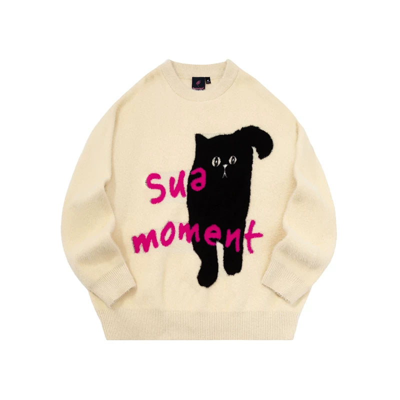 【トップス】アメリカンレトロ 猫モチーフ 猫柄 ネコ クルーネック ニット ルーズ 秋新作【FCシリーズ】