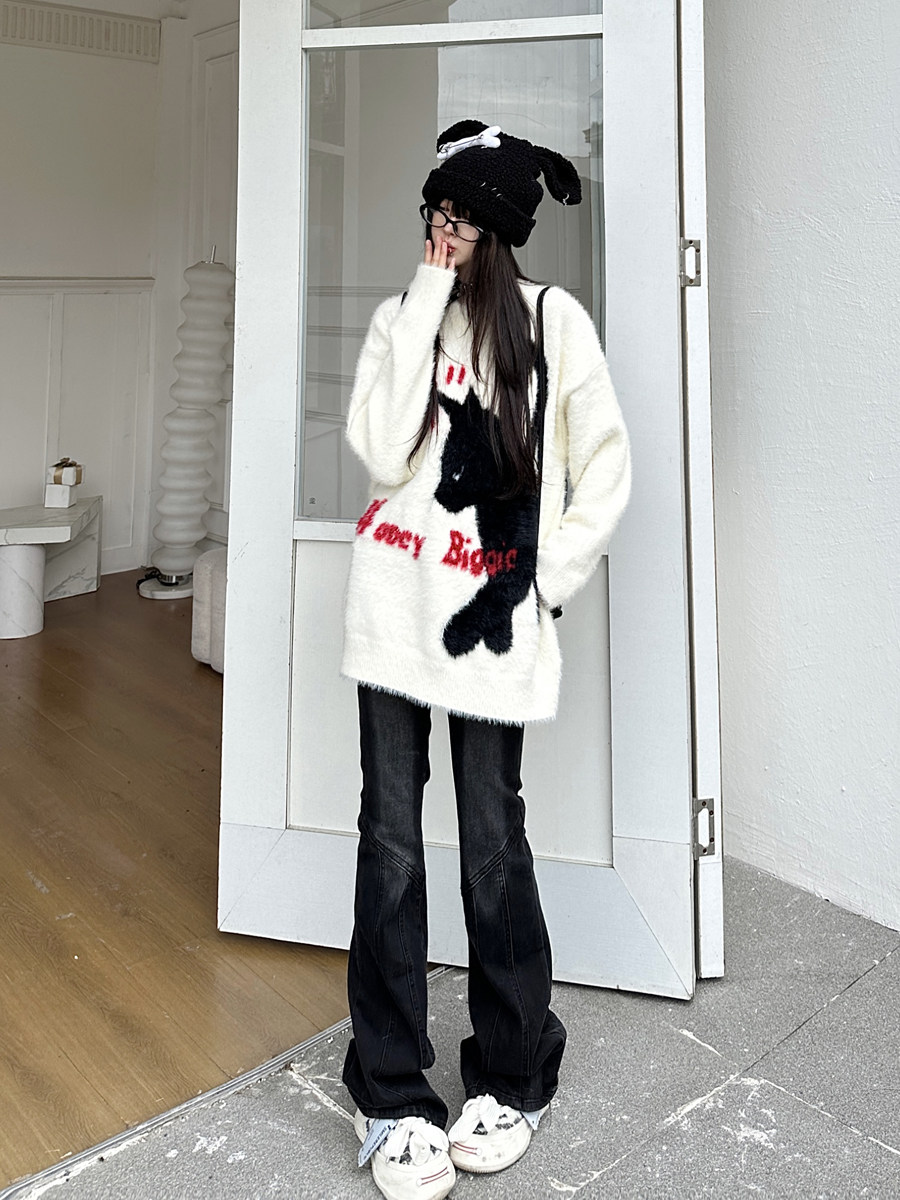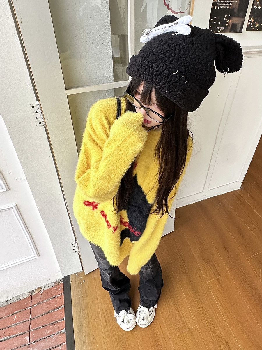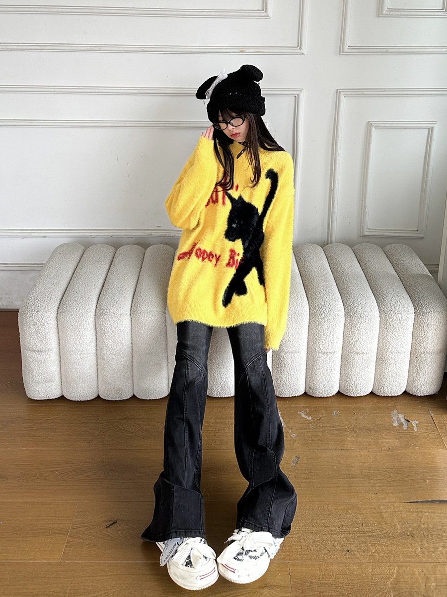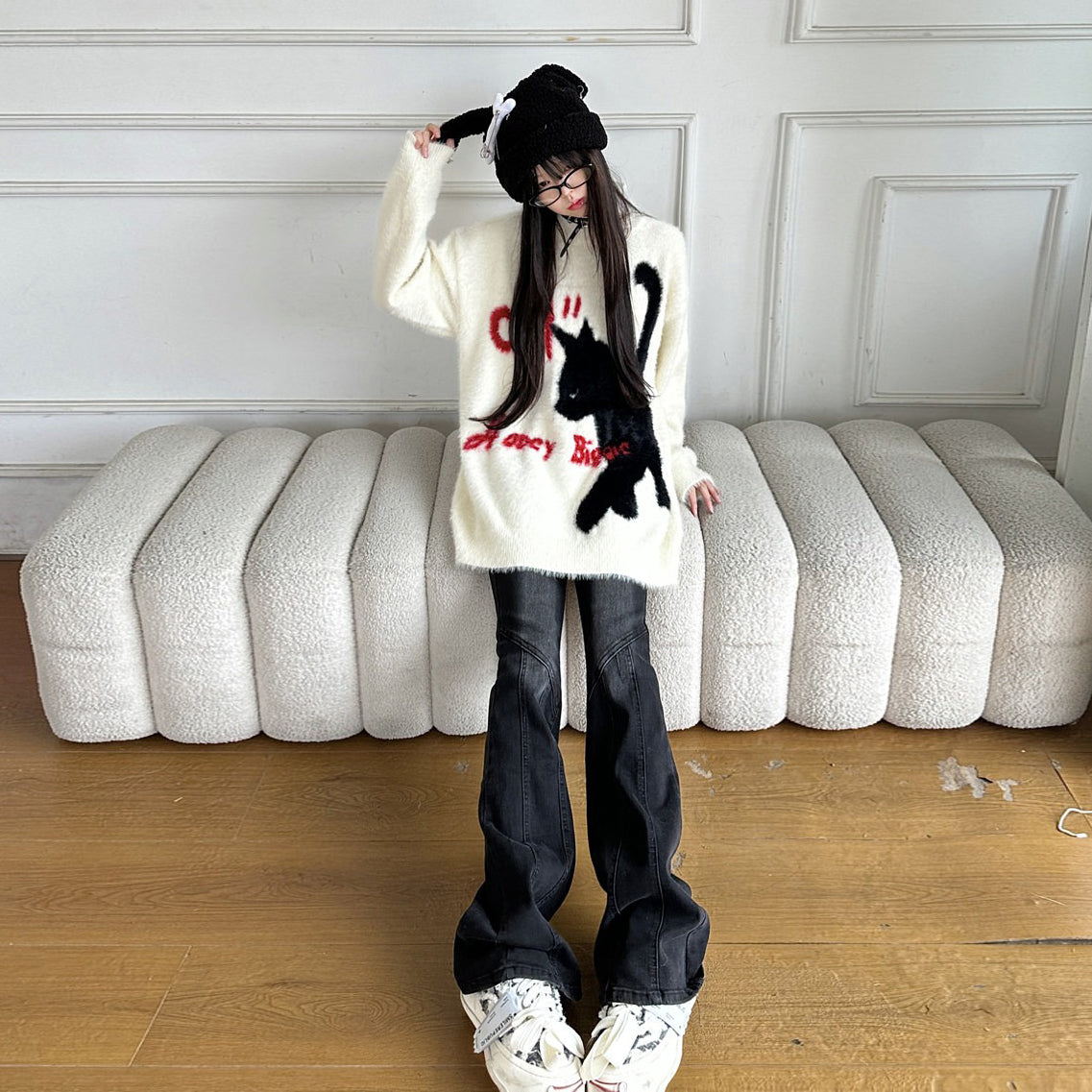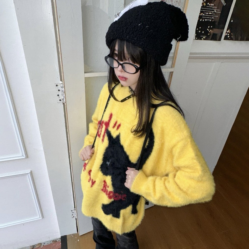 【トップス】猫モチーフニット 秋冬 ユニセックス ゆったり Y2K カップル対応【FCシリーズ】