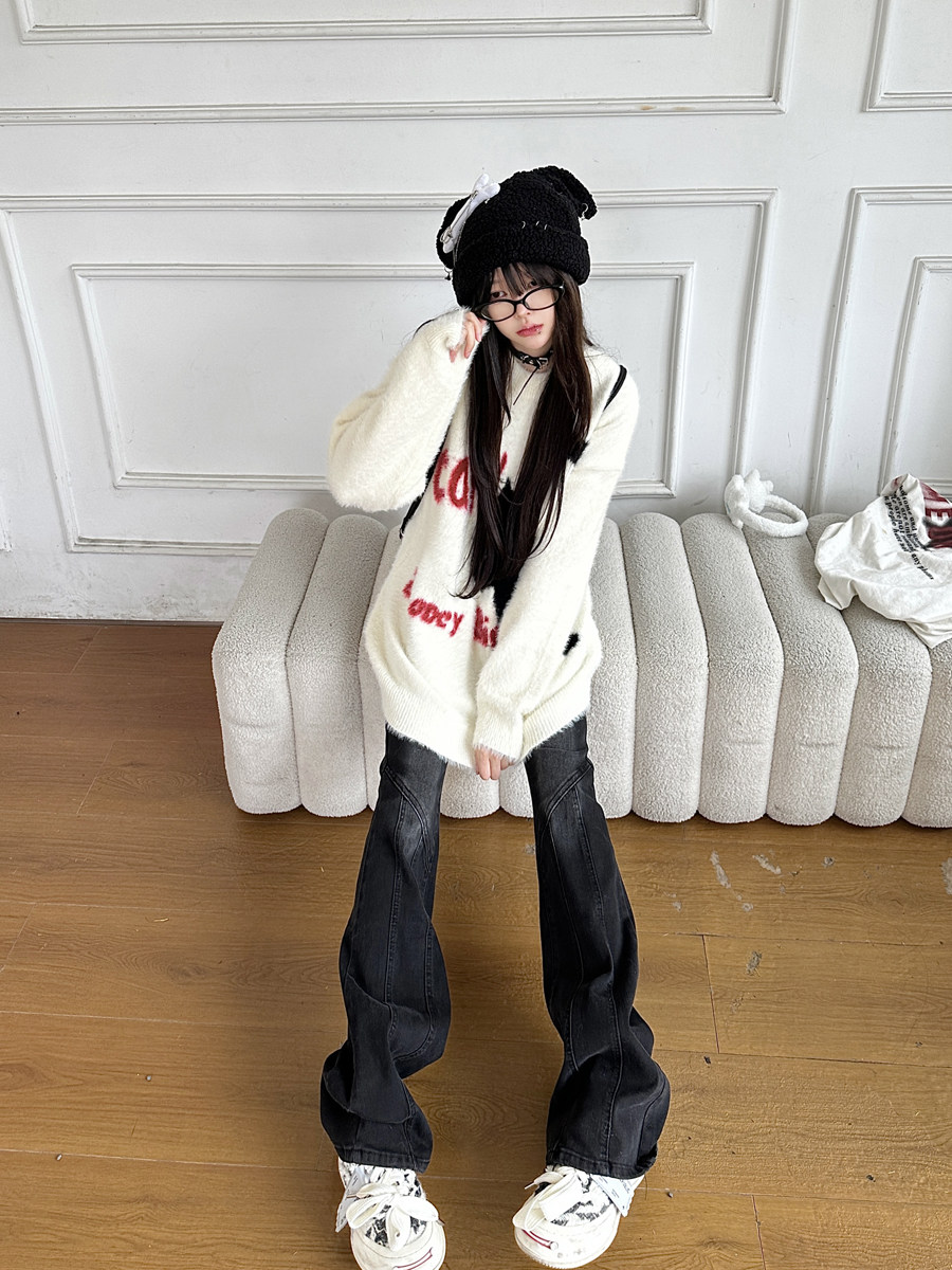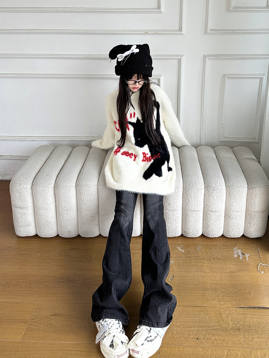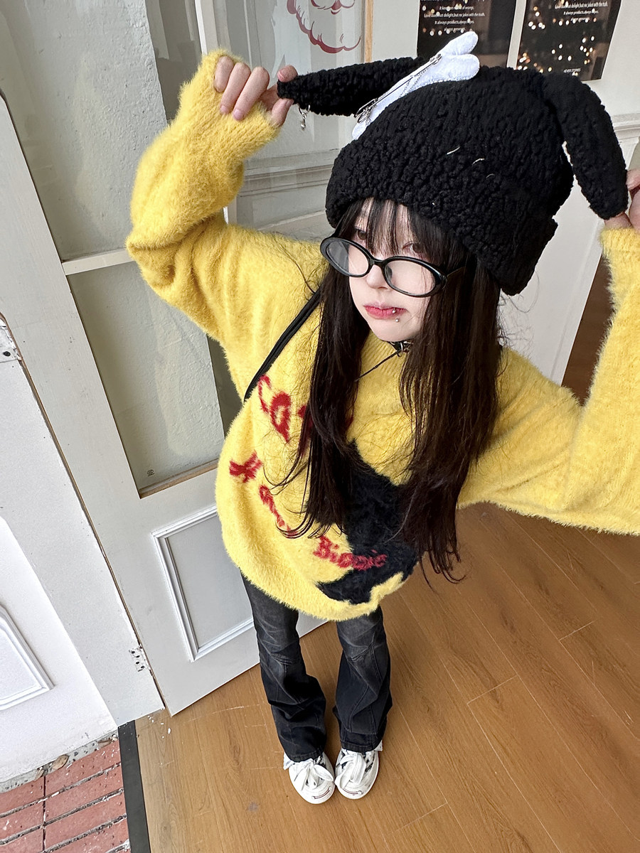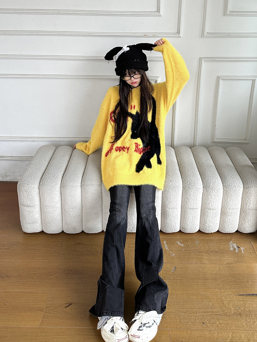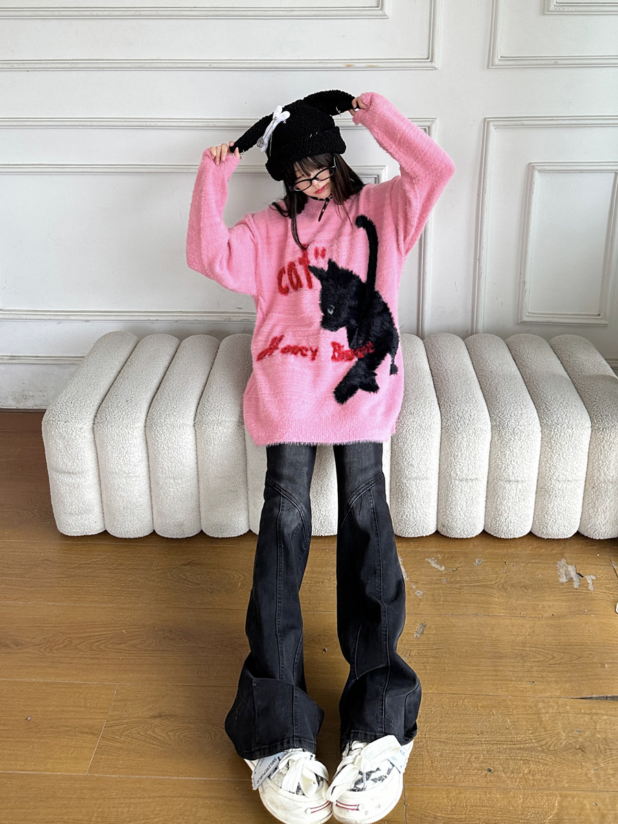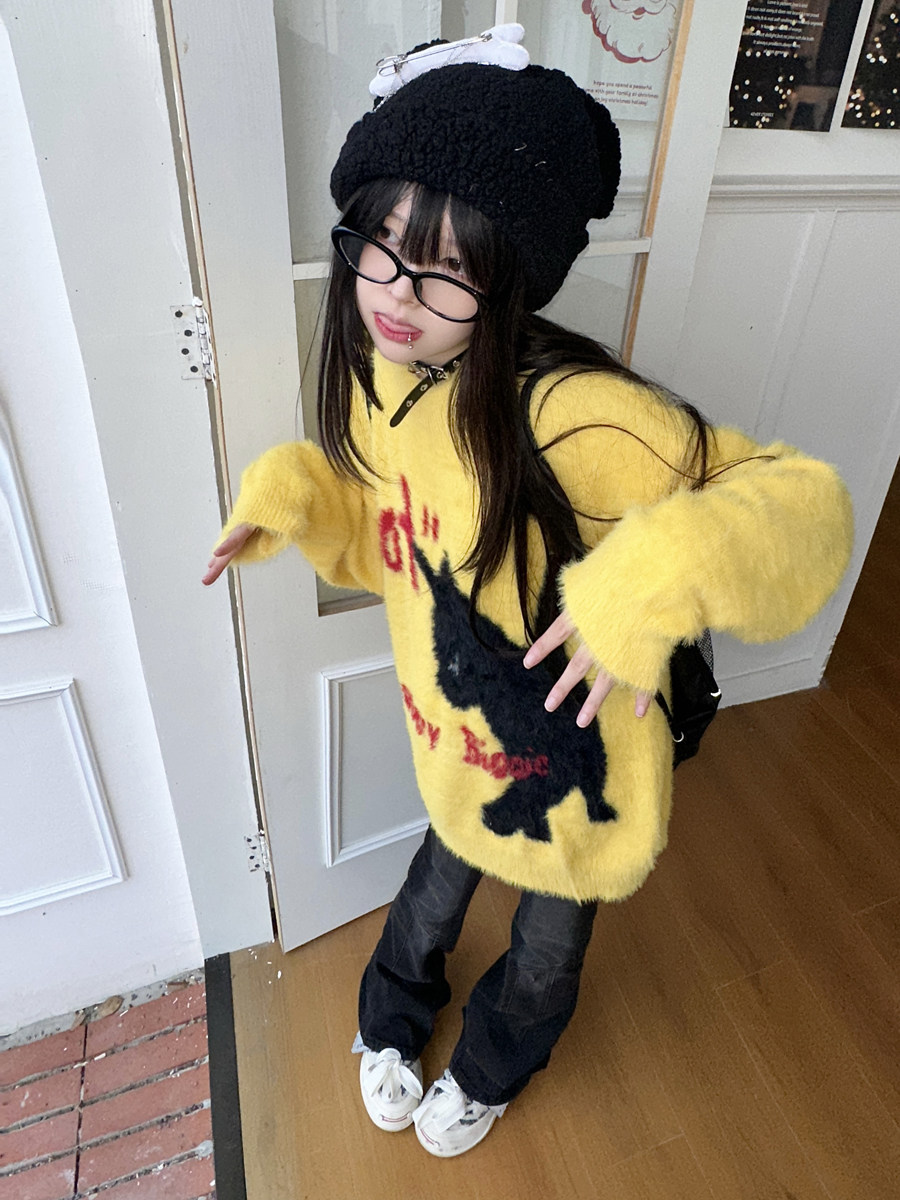【トップス】猫モチーフニット 秋冬 ユニセックス ゆったり Y2K カップル対応【FCシリーズ】