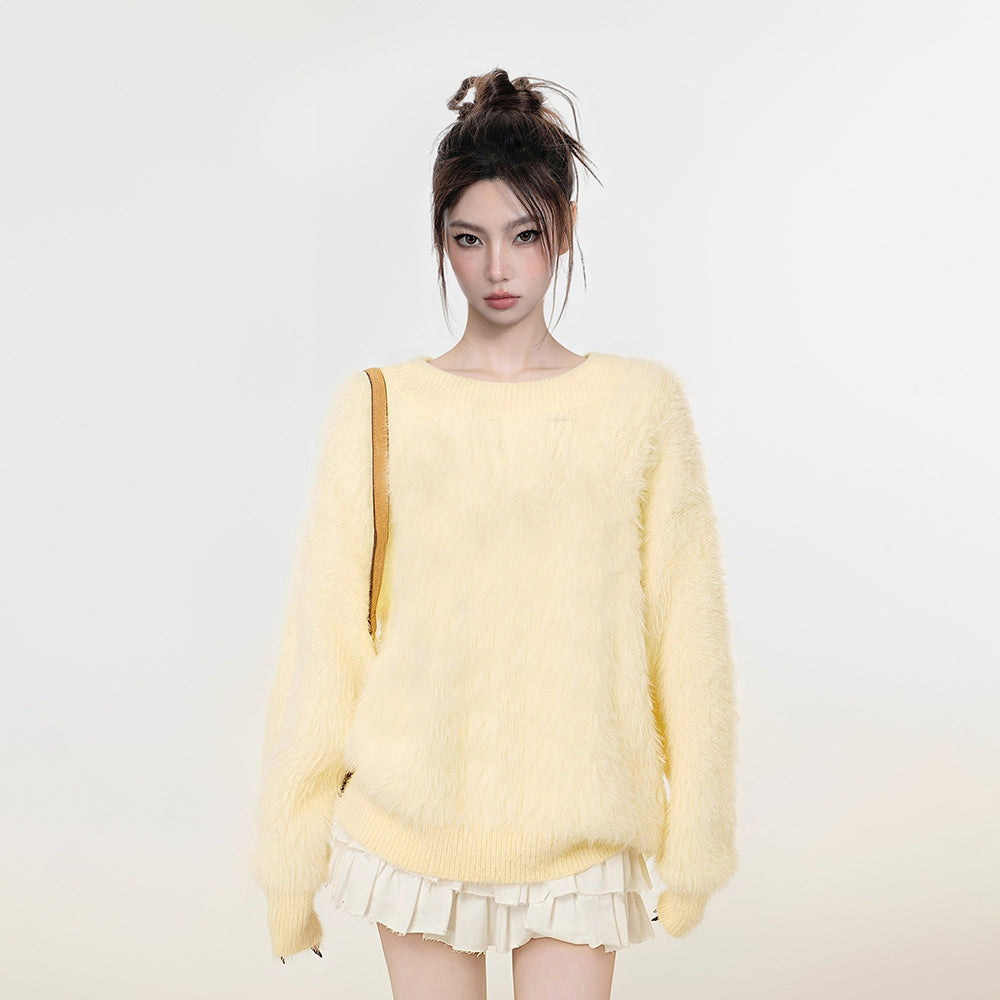 【トップス】ふわふわフェイクミンクグラデーション フード付きニットセーター レディース 秋冬 高級感 オーバーサイズ トップス【FCシリーズ】