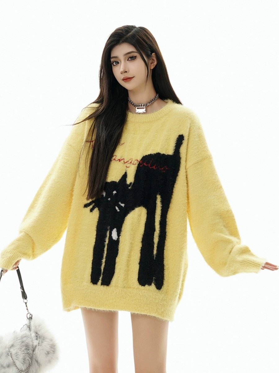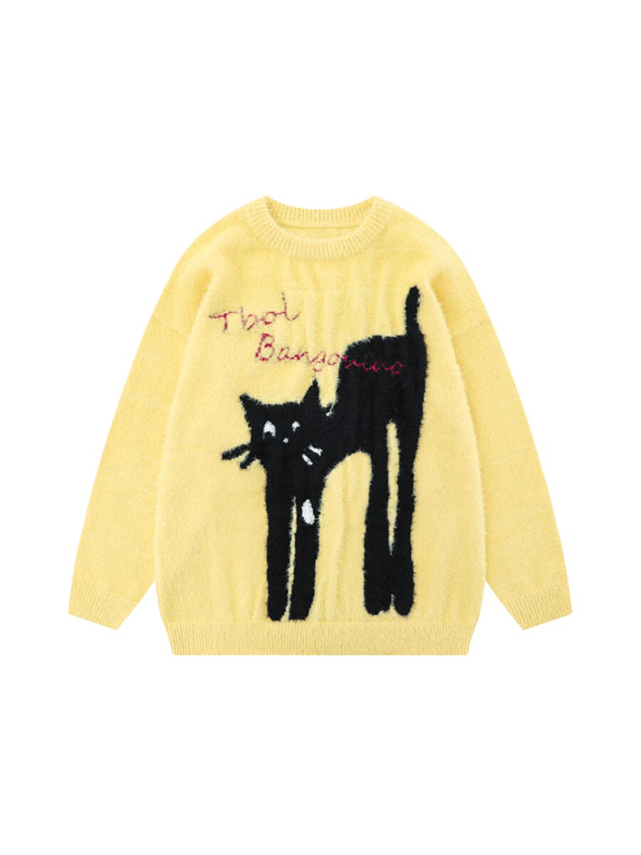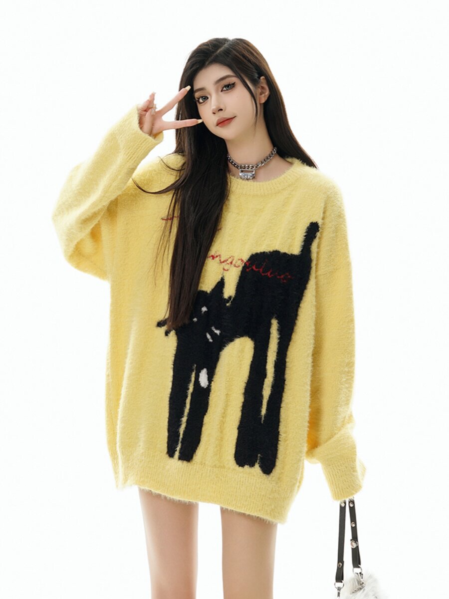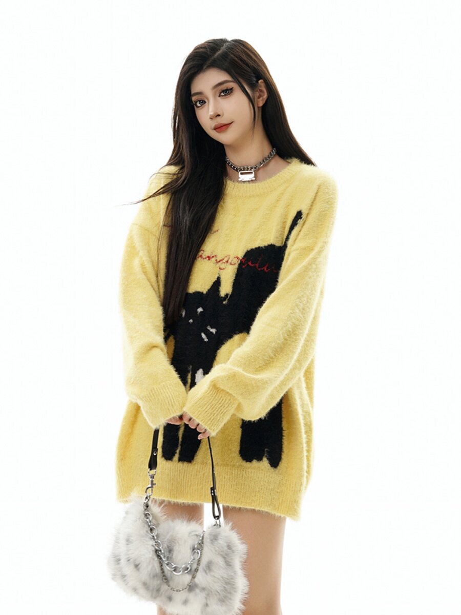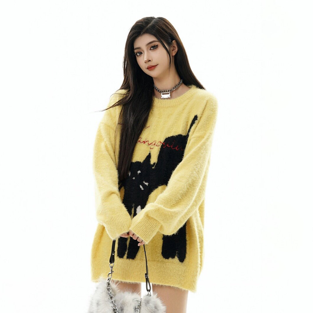 【トップス】猫モチーフ フェイクミンクニット レディース 秋冬 防寒 ゆったり カップル対応 プルオーバー【FCシリーズ】