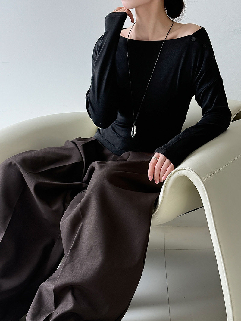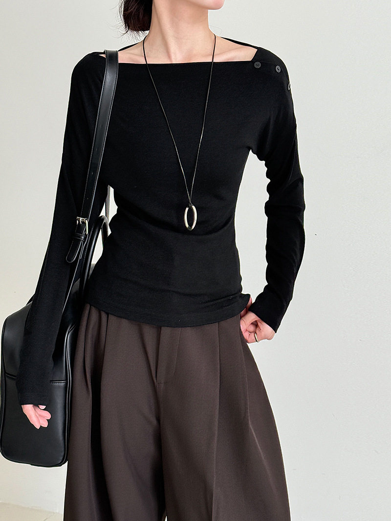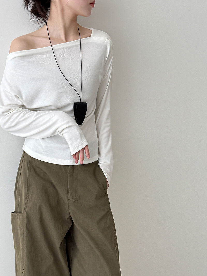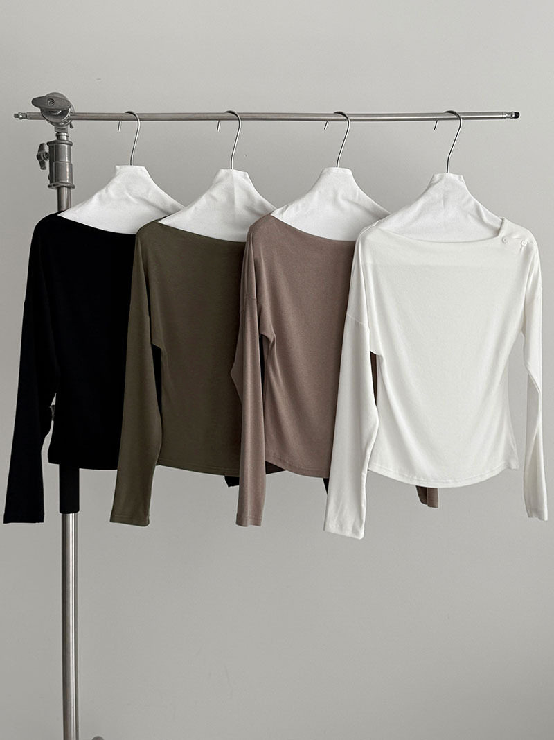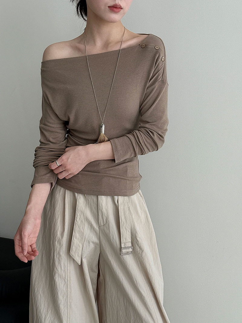 【60%OFF⭐️早い者勝ち】【トップス】オフショルダー 長袖インナー向け 美シルエット ニット Tシャツ【JZシリーズ】