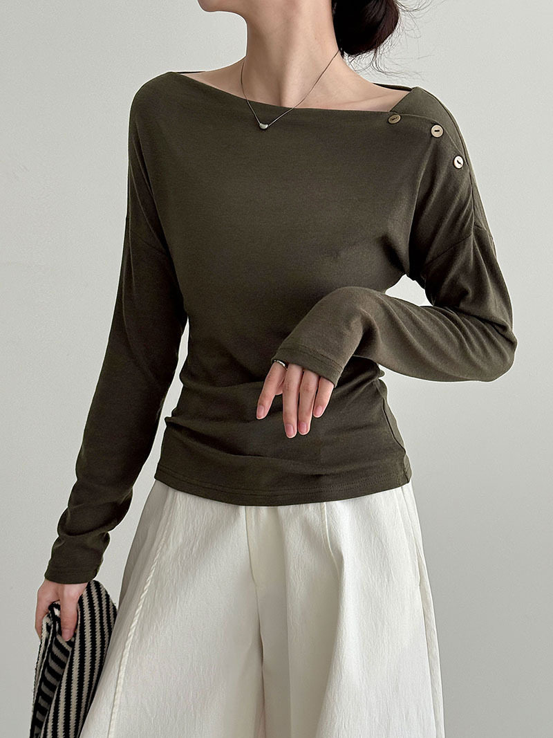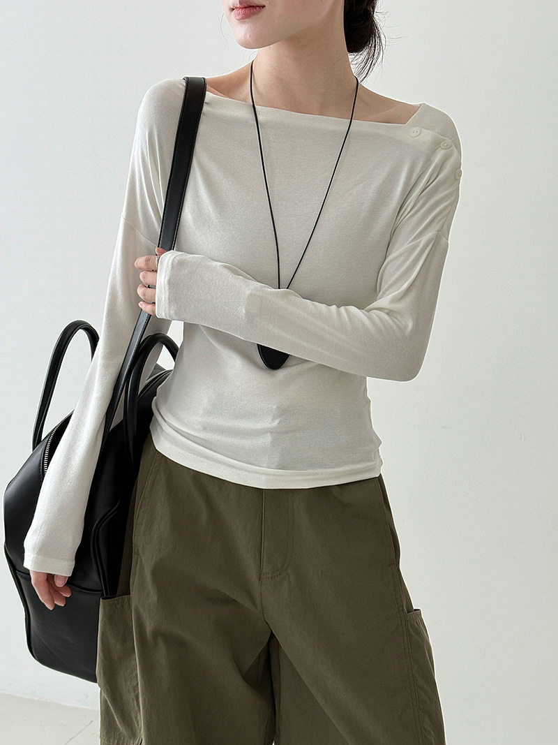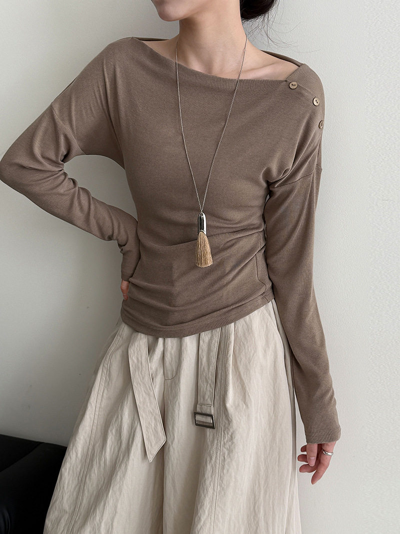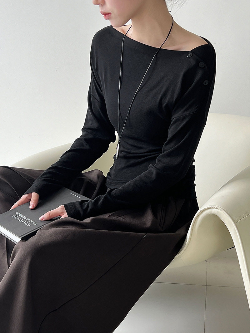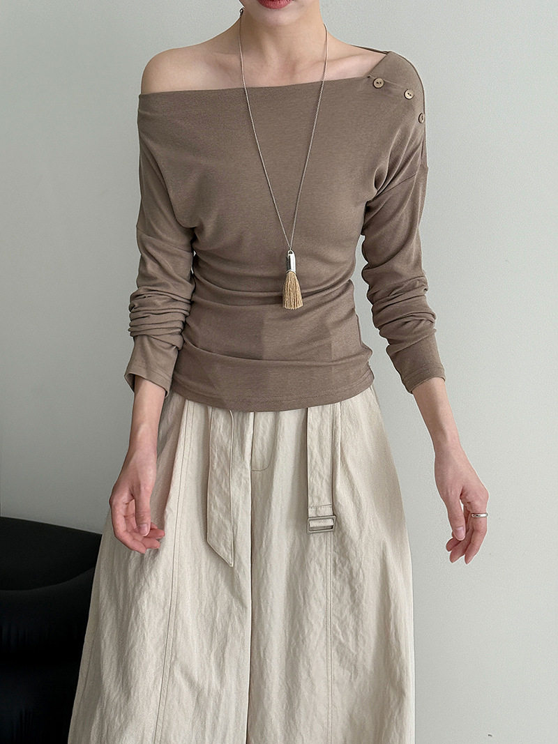 【60%OFF⭐️早い者勝ち】【トップス】オフショルダー 長袖インナー向け 美シルエット ニット Tシャツ【JZシリーズ】