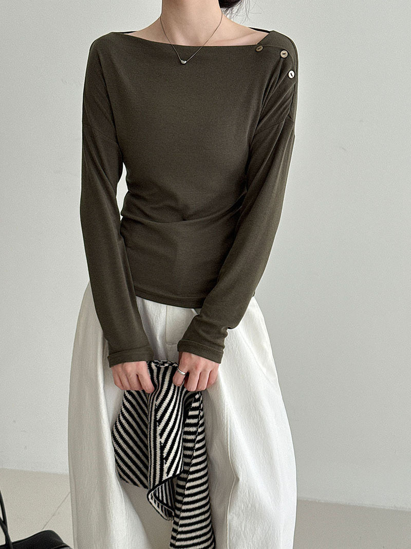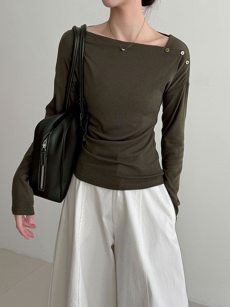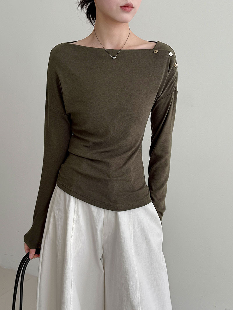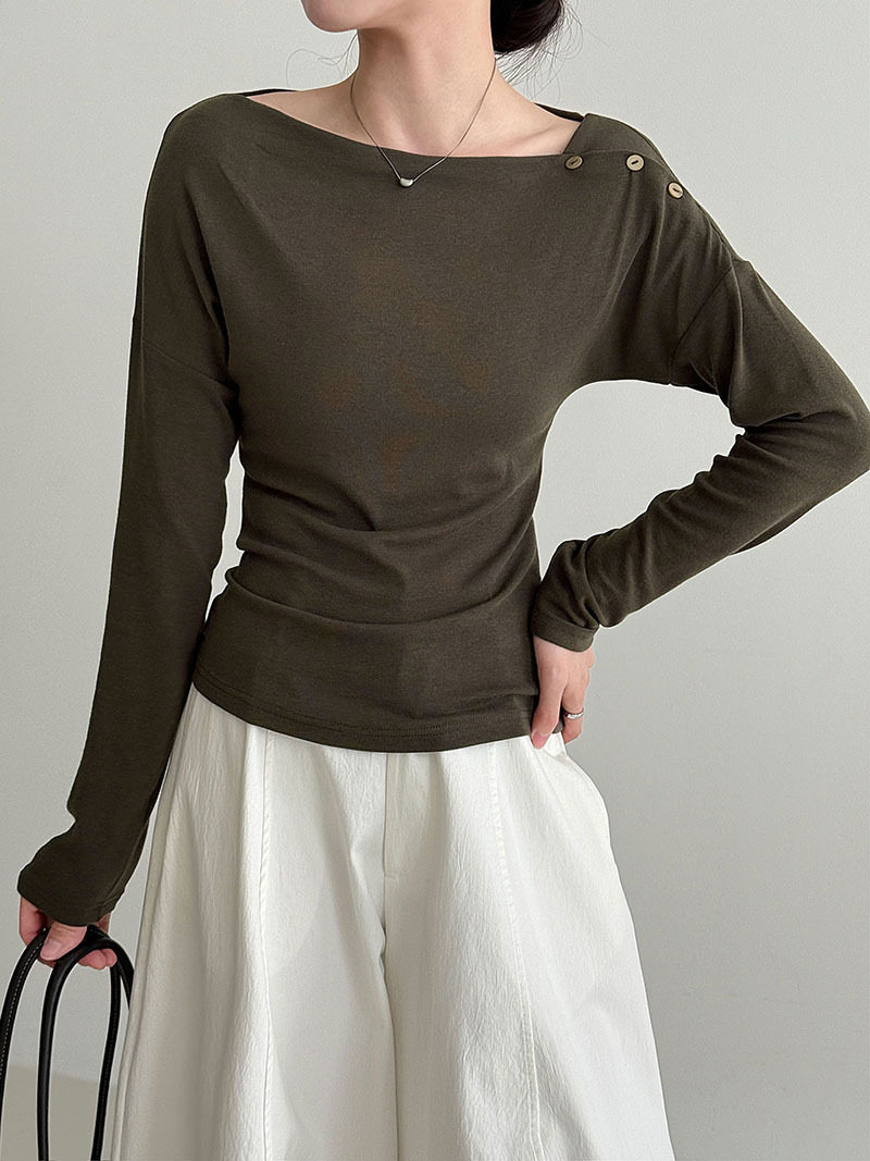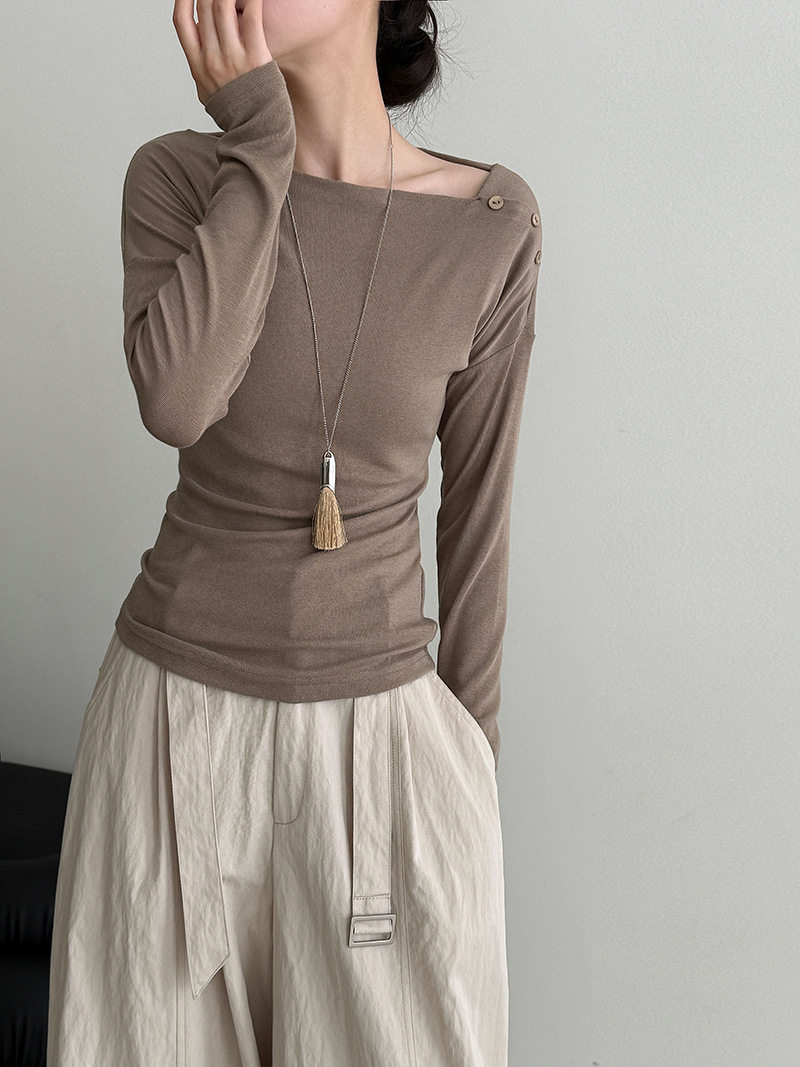 【60%OFF⭐️早い者勝ち】【トップス】オフショルダー 長袖インナー向け 美シルエット ニット Tシャツ【JZシリーズ】