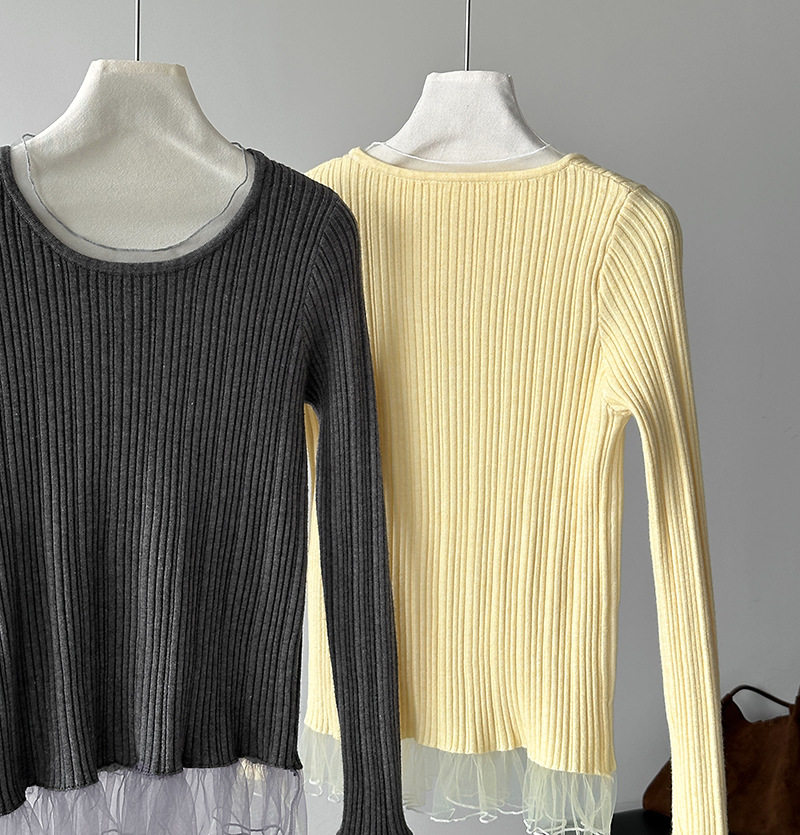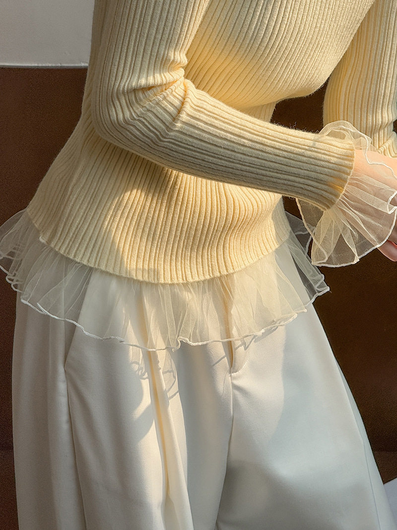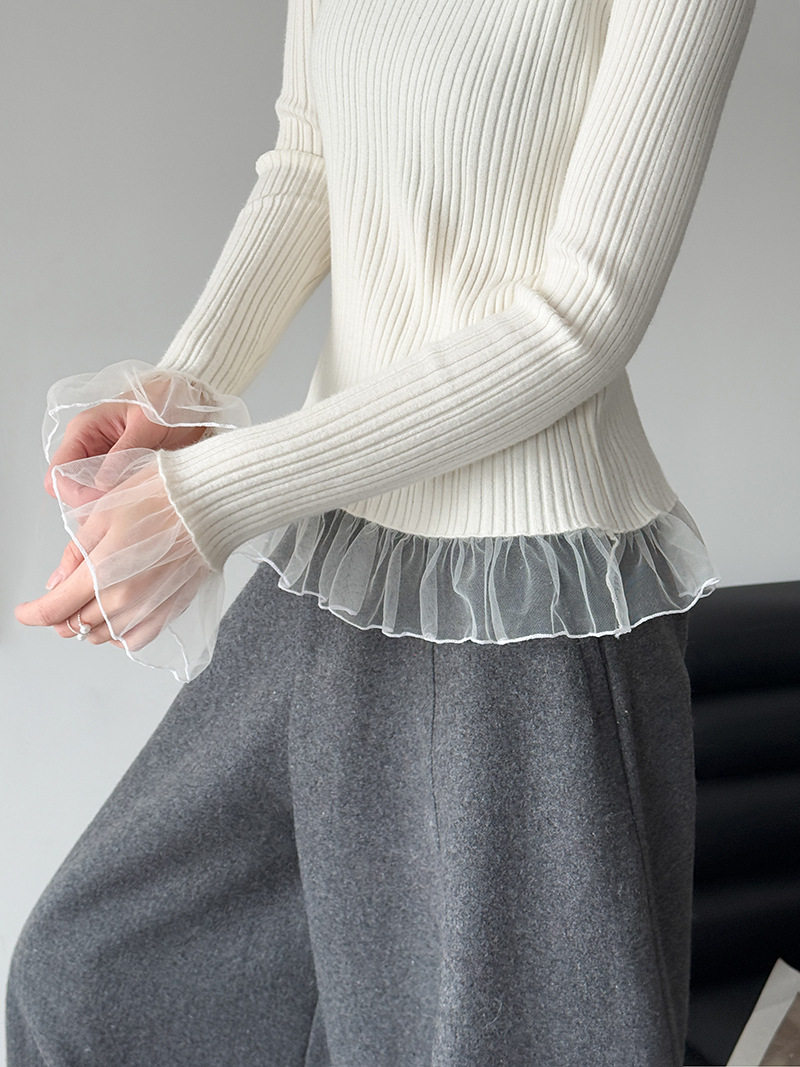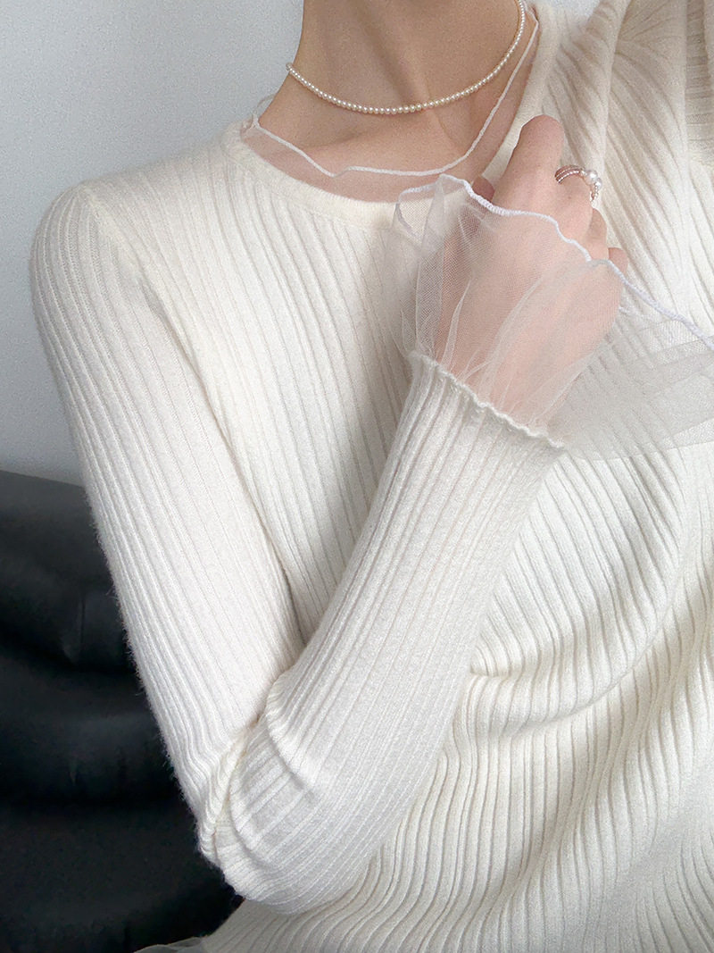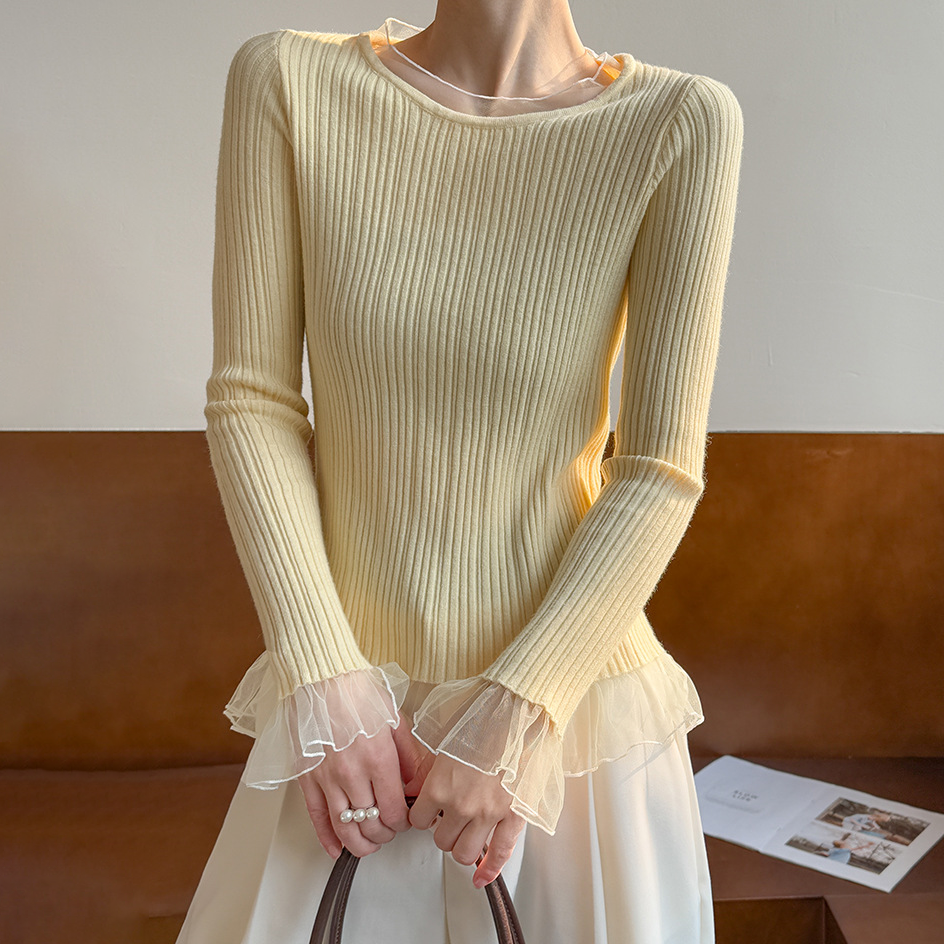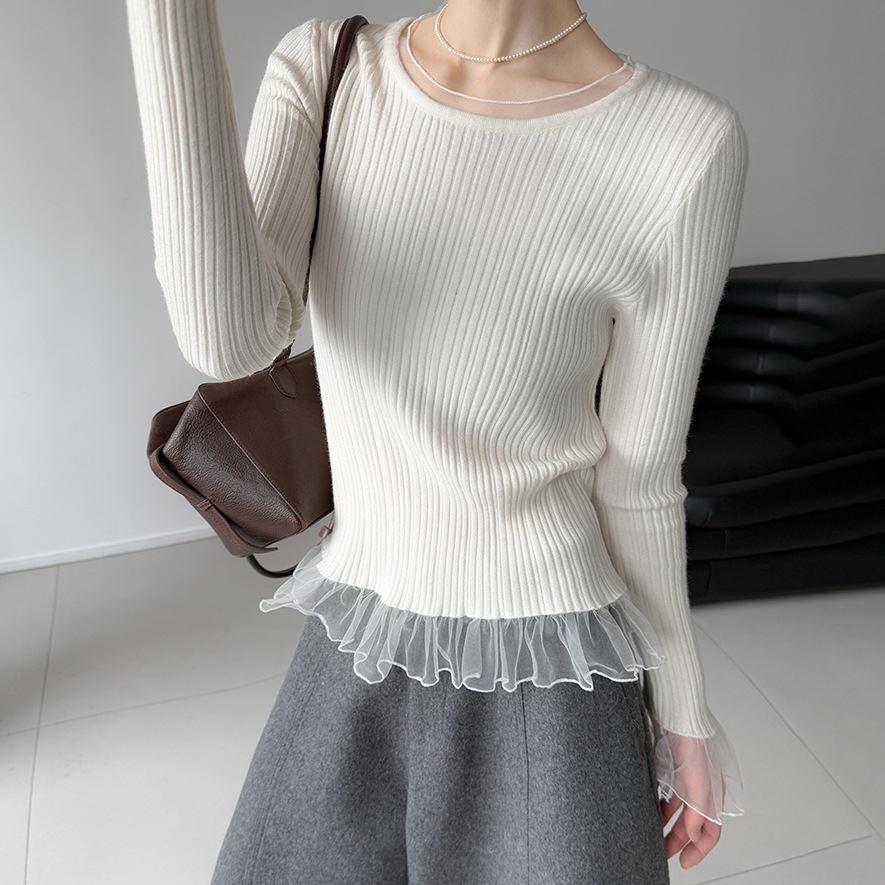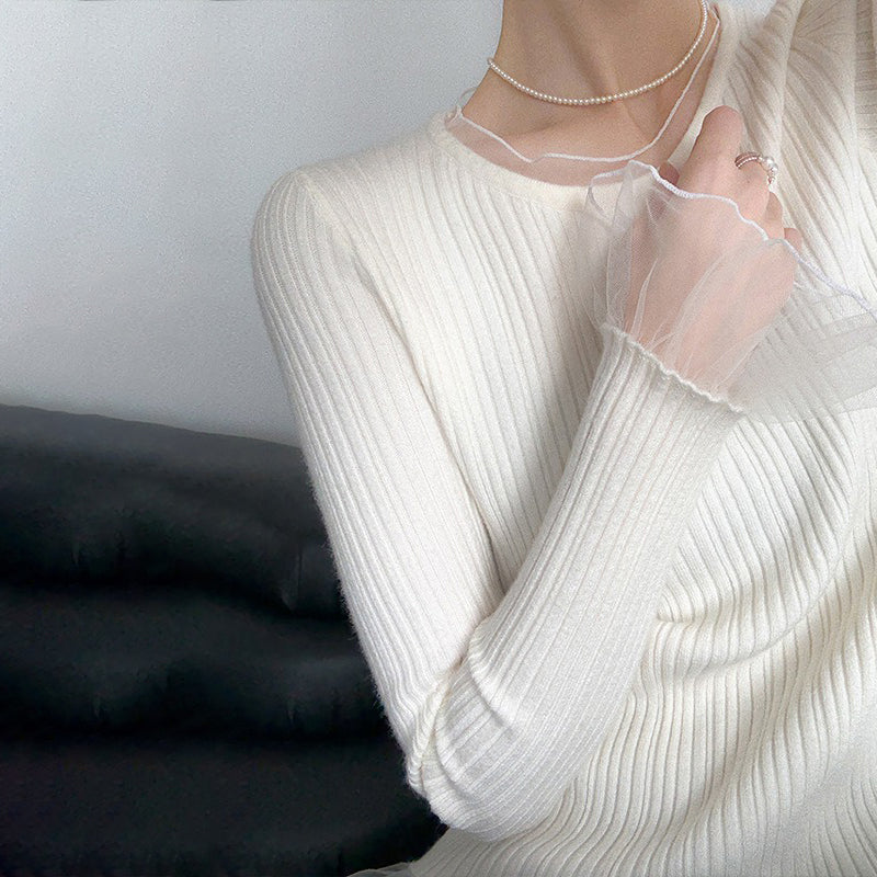 【60%OFF⭐️早い者勝ち】【トップス】甘め レース付き ニット レディース 春秋 デザイン インナー トップス【JZシリーズ】