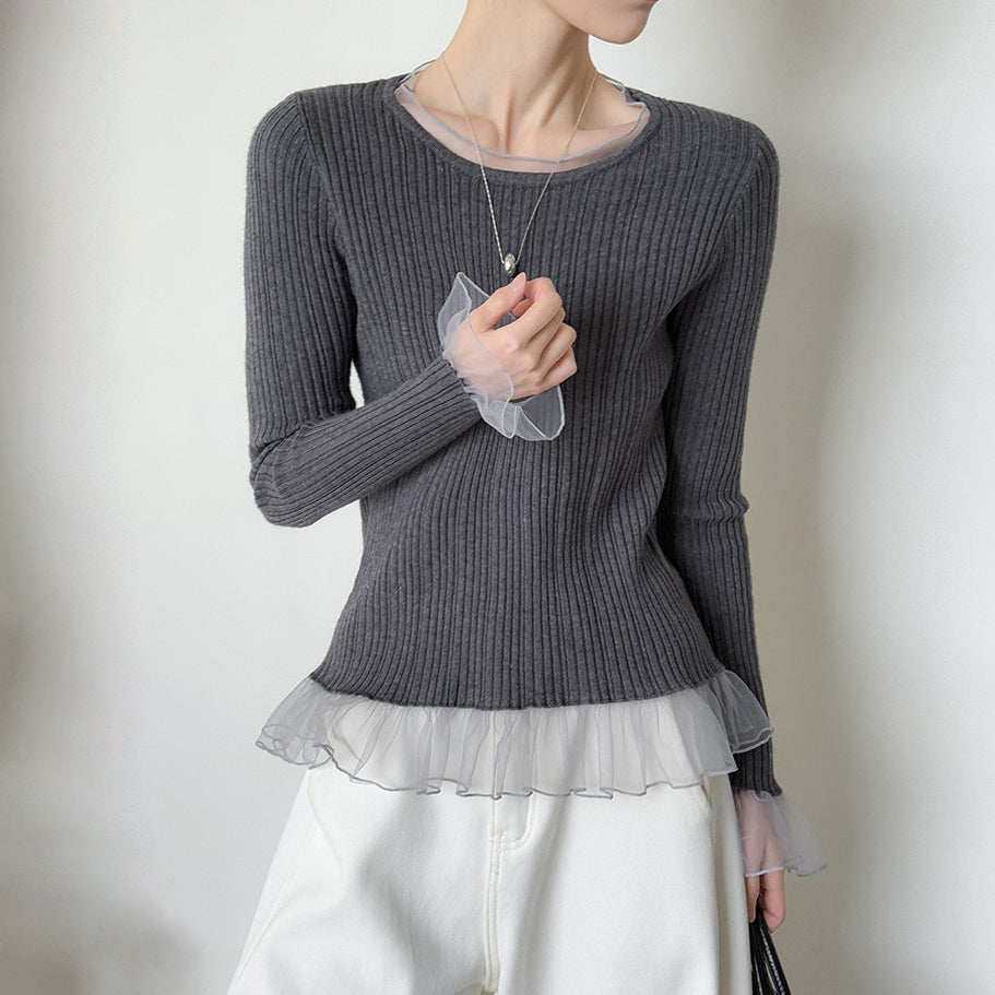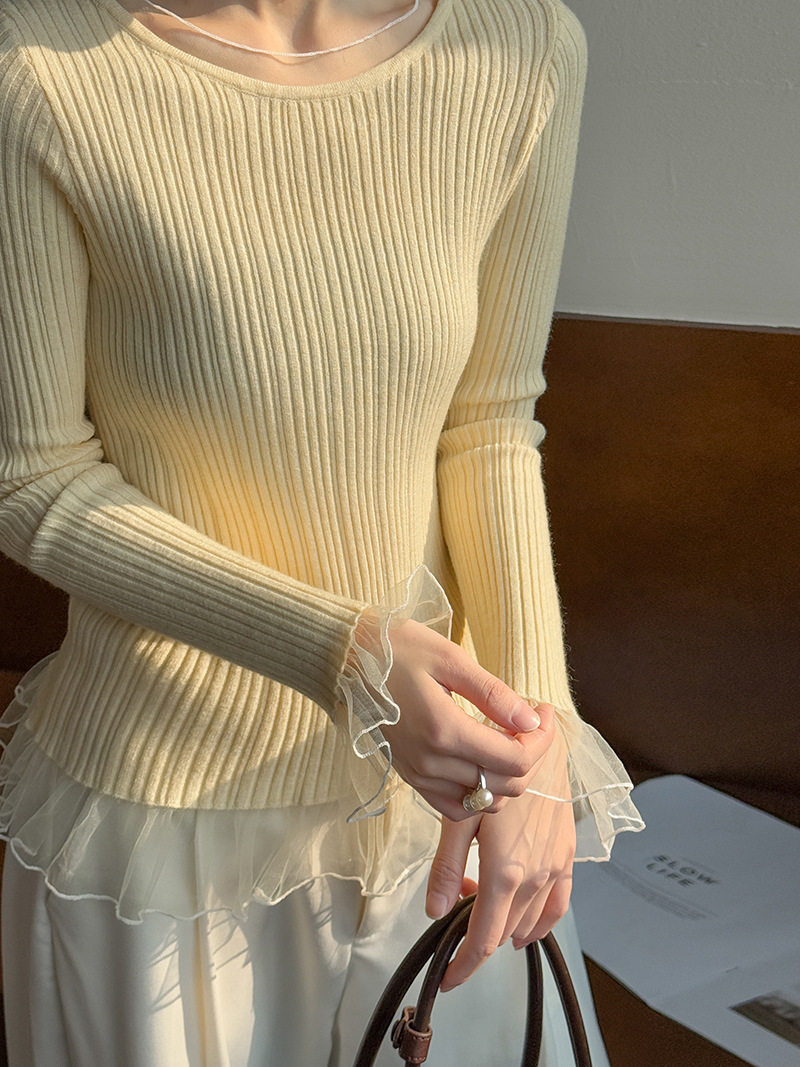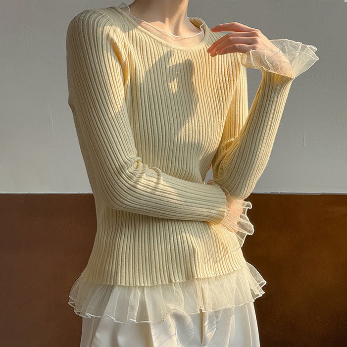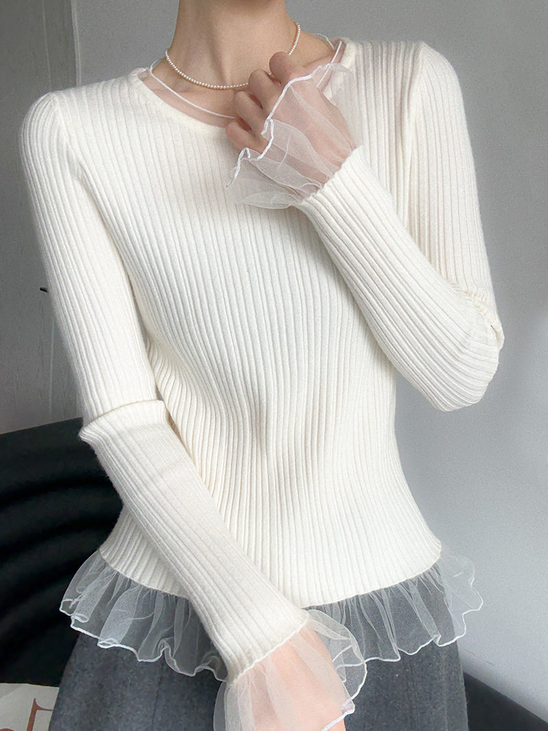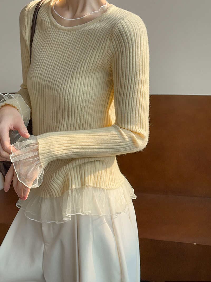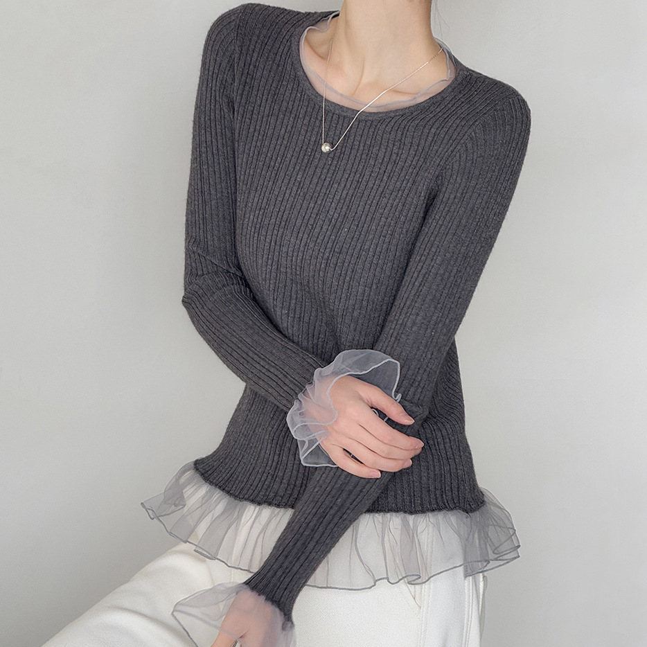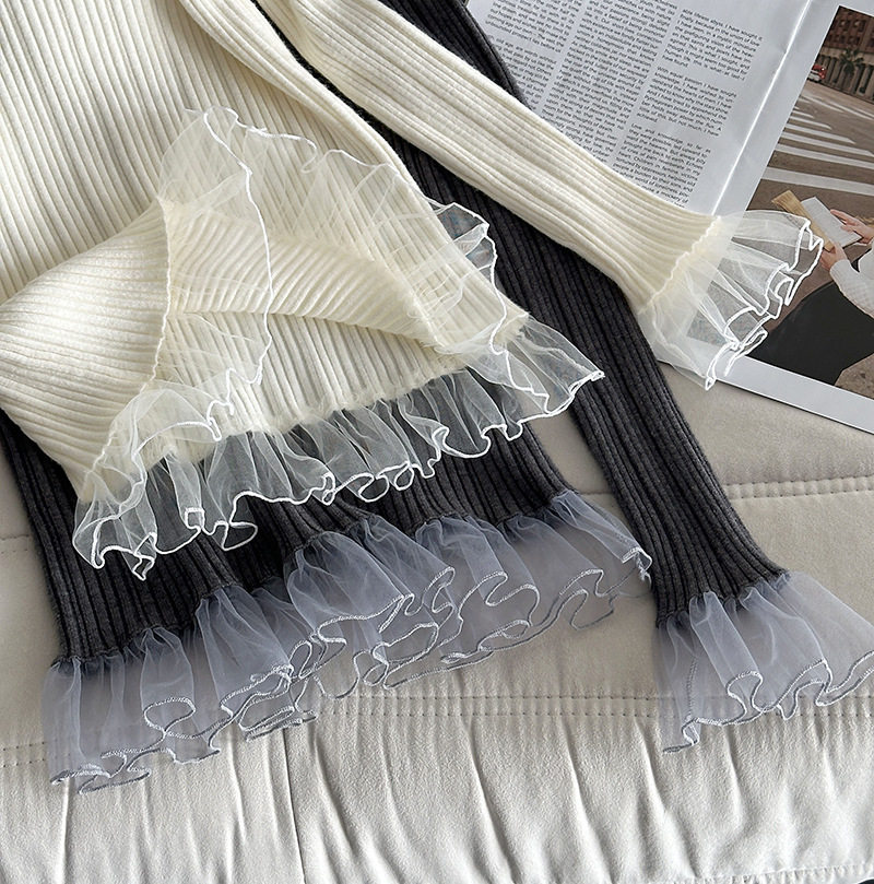 【60%OFF⭐️早い者勝ち】【トップス】甘め レース付き ニット レディース 春秋 デザイン インナー トップス【JZシリーズ】