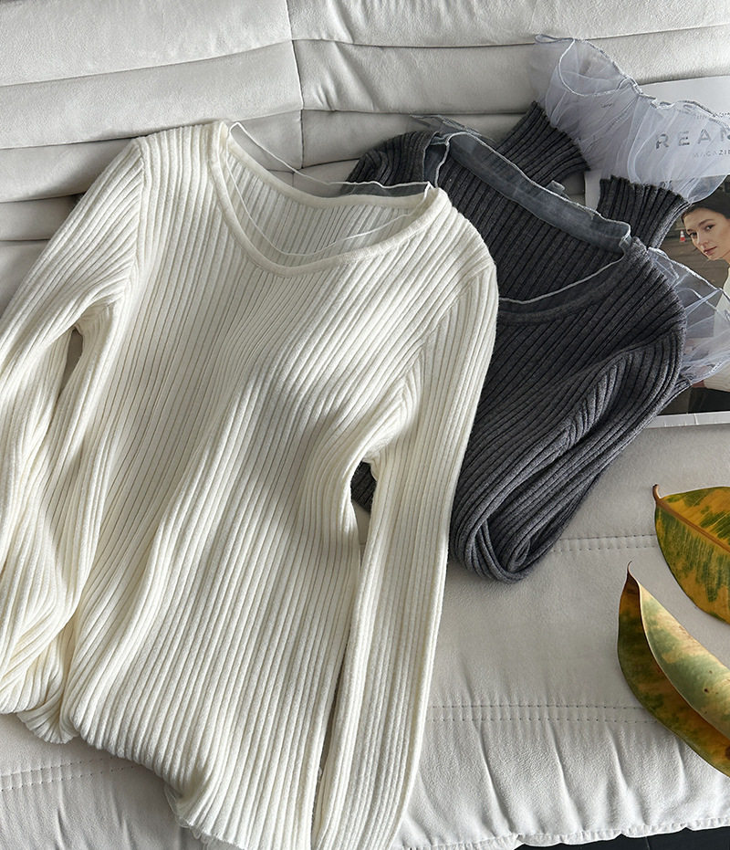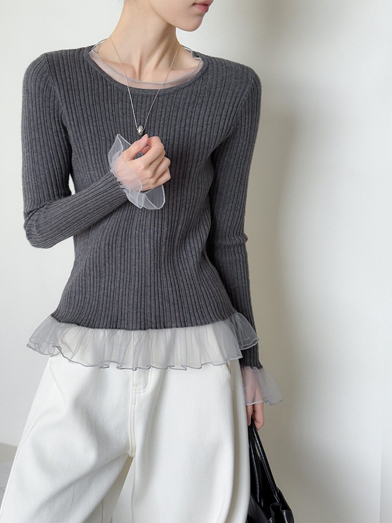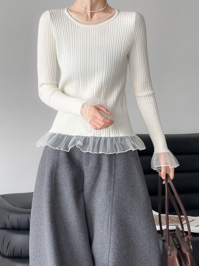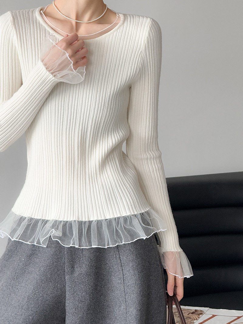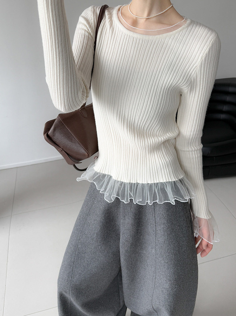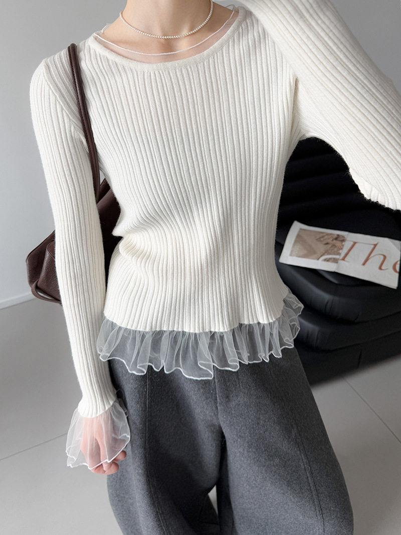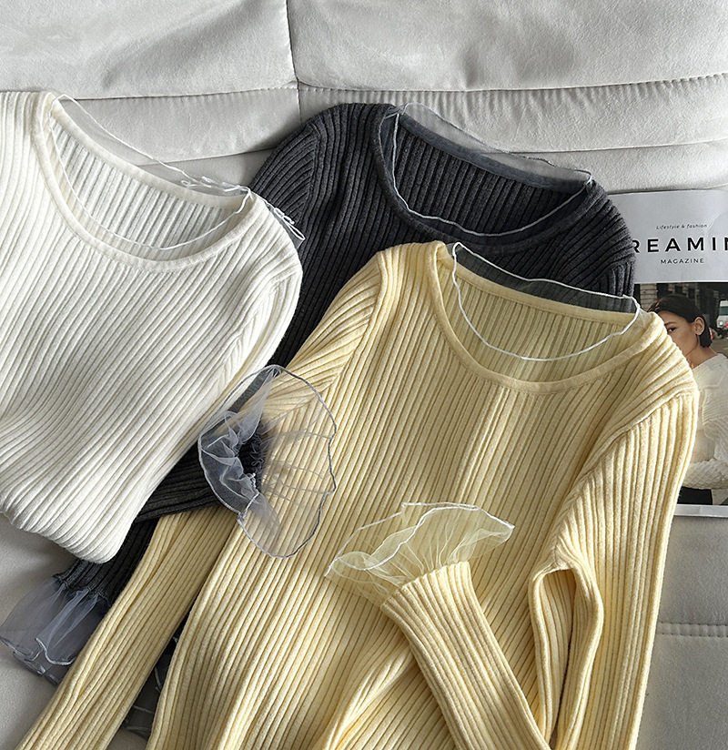 【60%OFF⭐️早い者勝ち】【トップス】甘め レース付き ニット レディース 春秋 デザイン インナー トップス【JZシリーズ】
