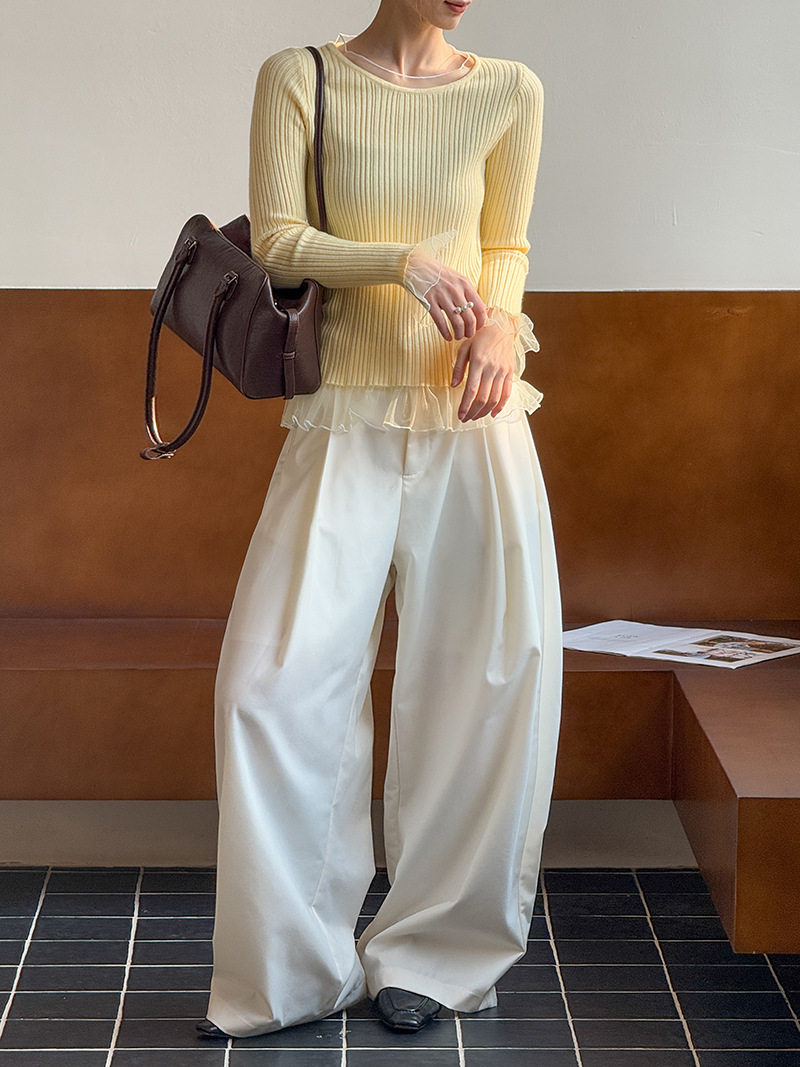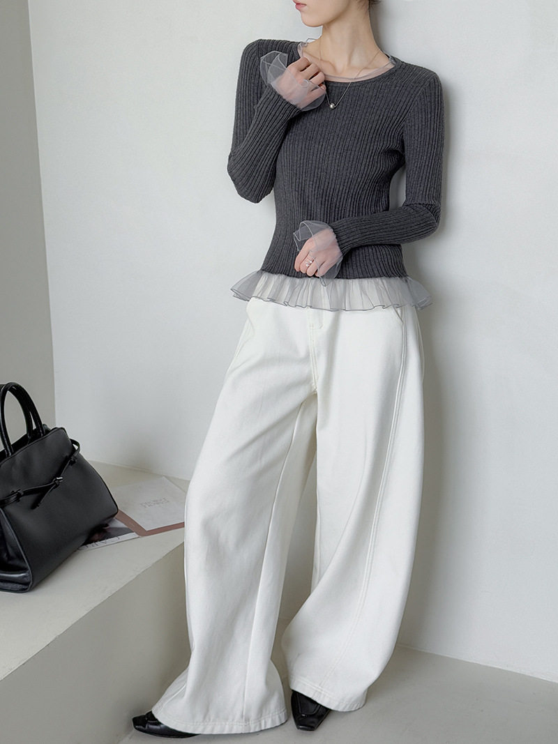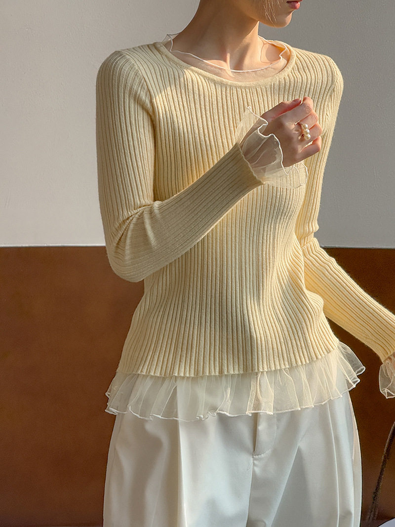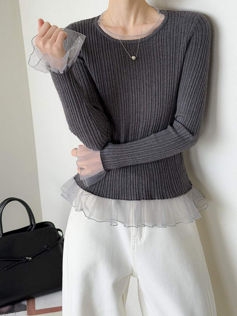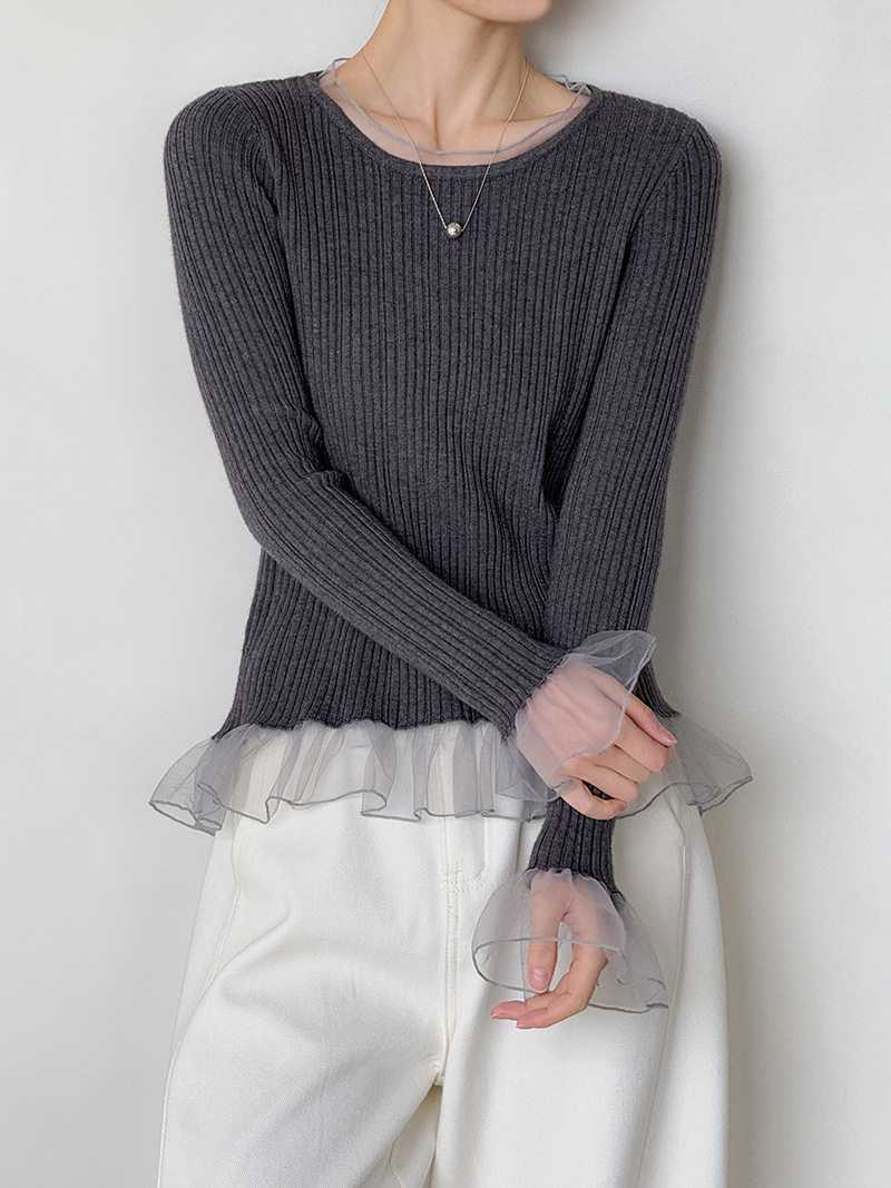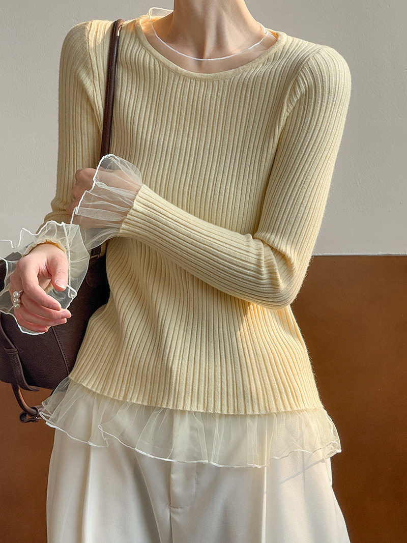 【60%OFF⭐️早い者勝ち】【トップス】甘め レース付き ニット レディース 春秋 デザイン インナー トップス【JZシリーズ】
