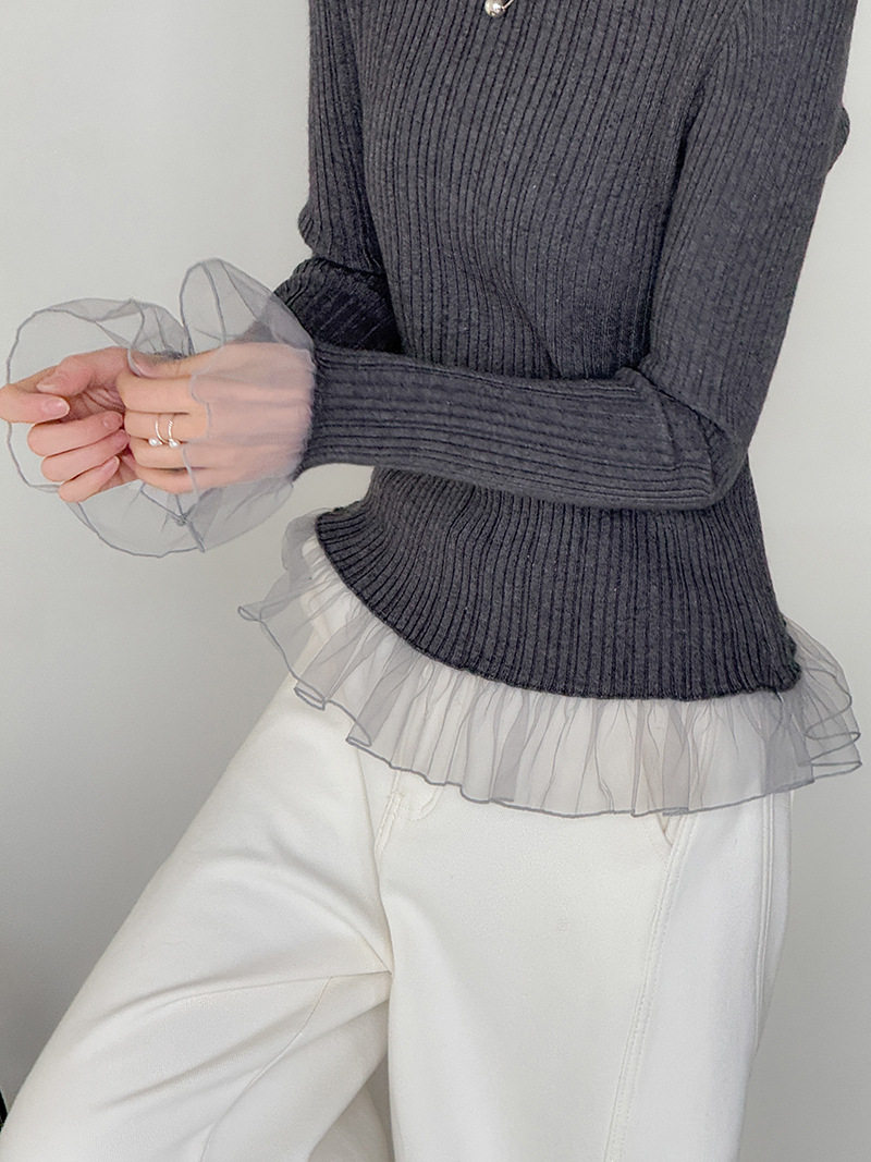 【商品名】【トップス】甘め レース付き ニット レディース 春秋 デザイン インナー トップス【JZシリーズ】