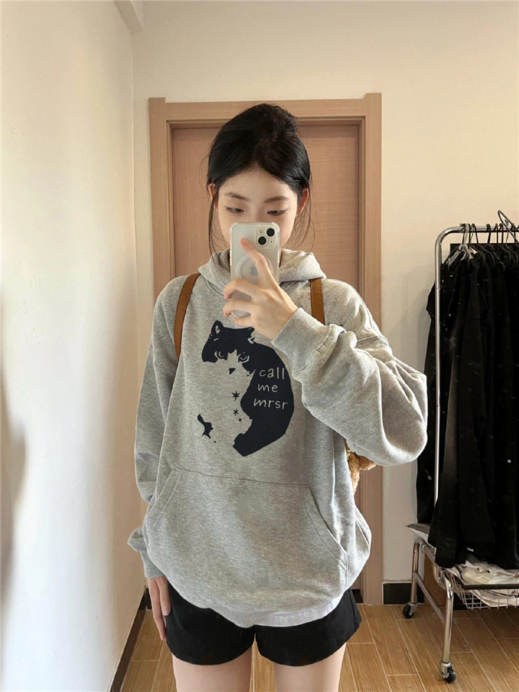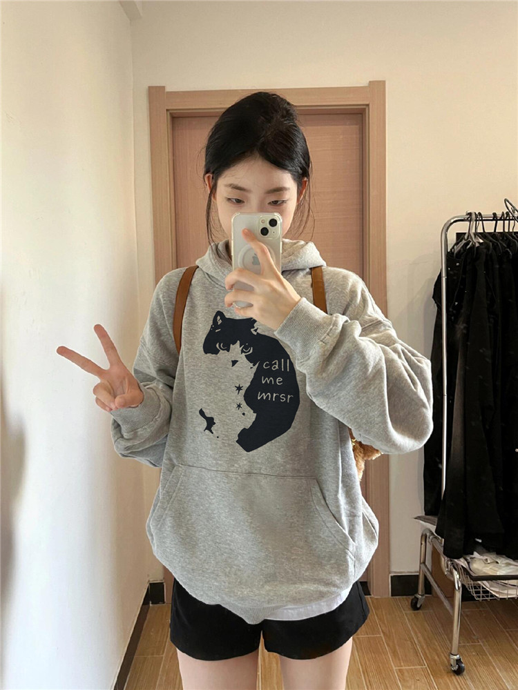 【60%OFF⭐️早い者勝ち】【トップス】ねこ 綿100% フード付き リラックス感 フード付き パーカー【FCシリーズ】