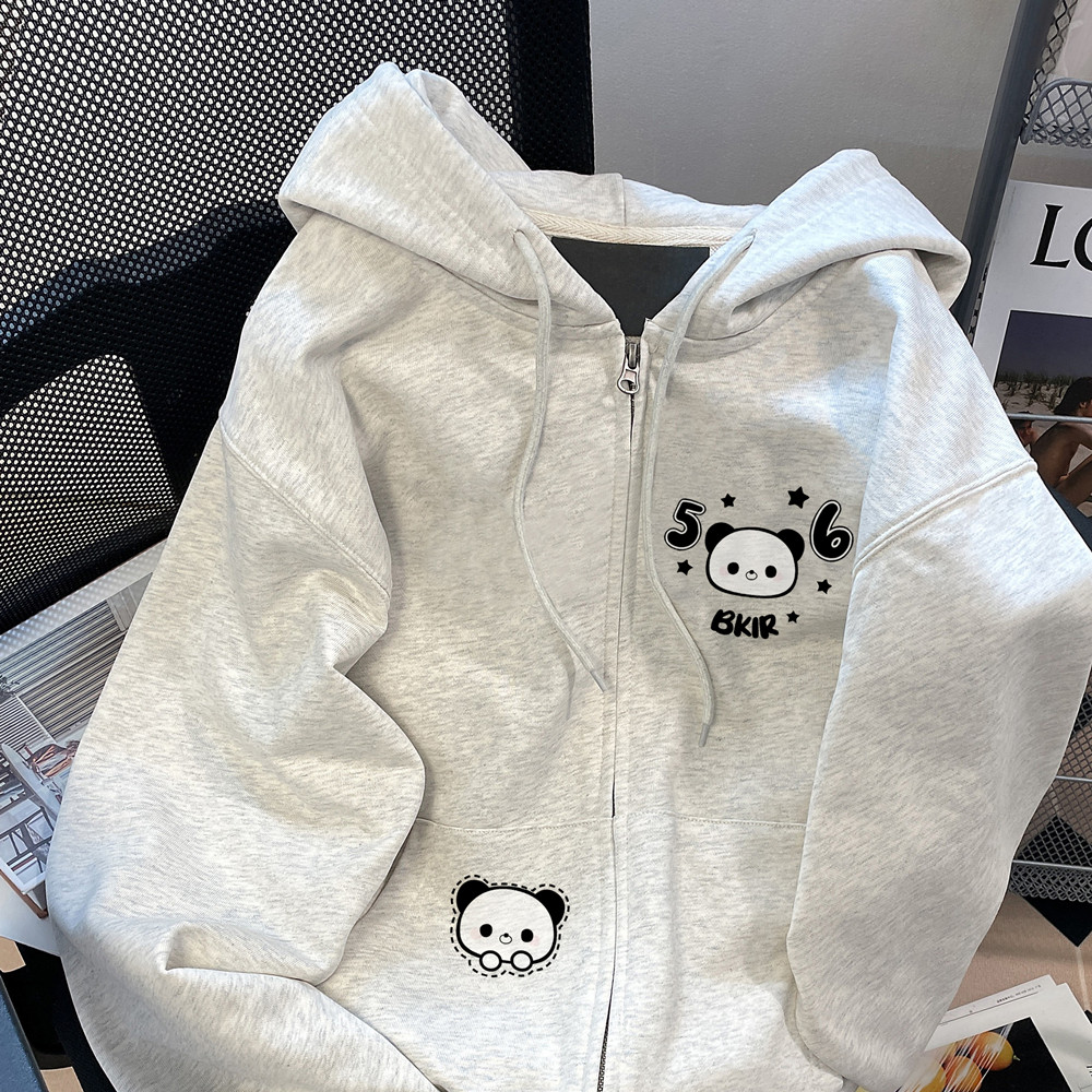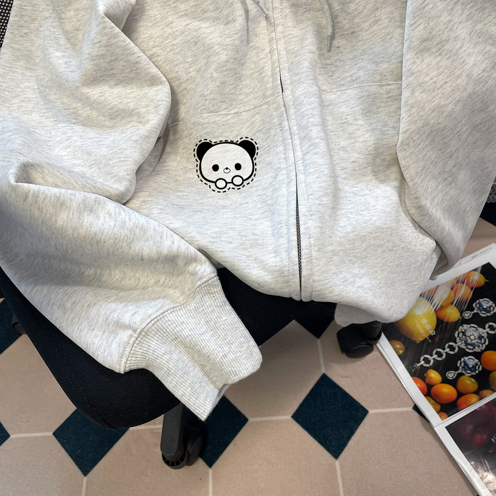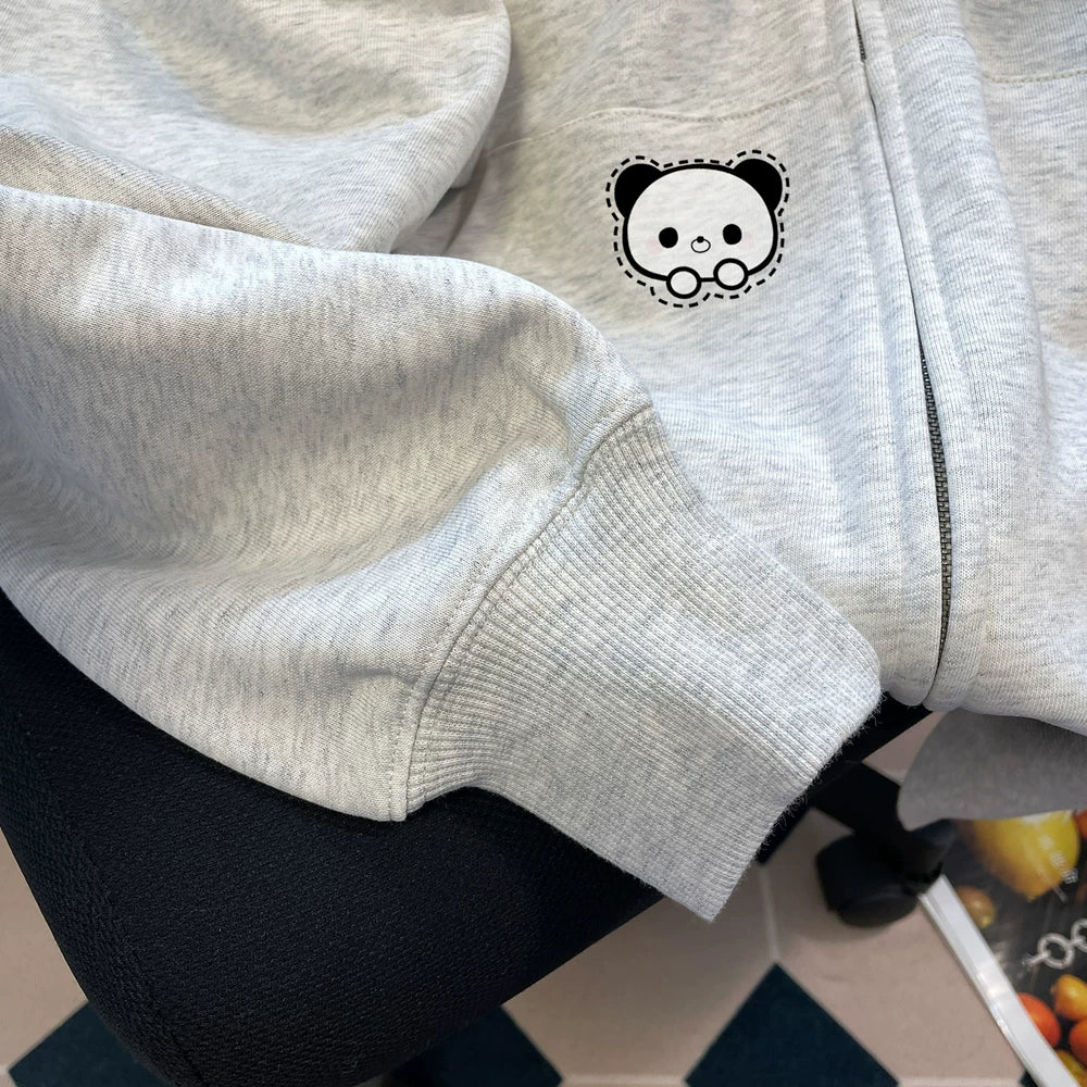 【アウター】裏起毛 🐼かわいいパンダ刺繍 フード付き ジップパーカー レディース 秋冬 カーディガン【FCシリーズ】