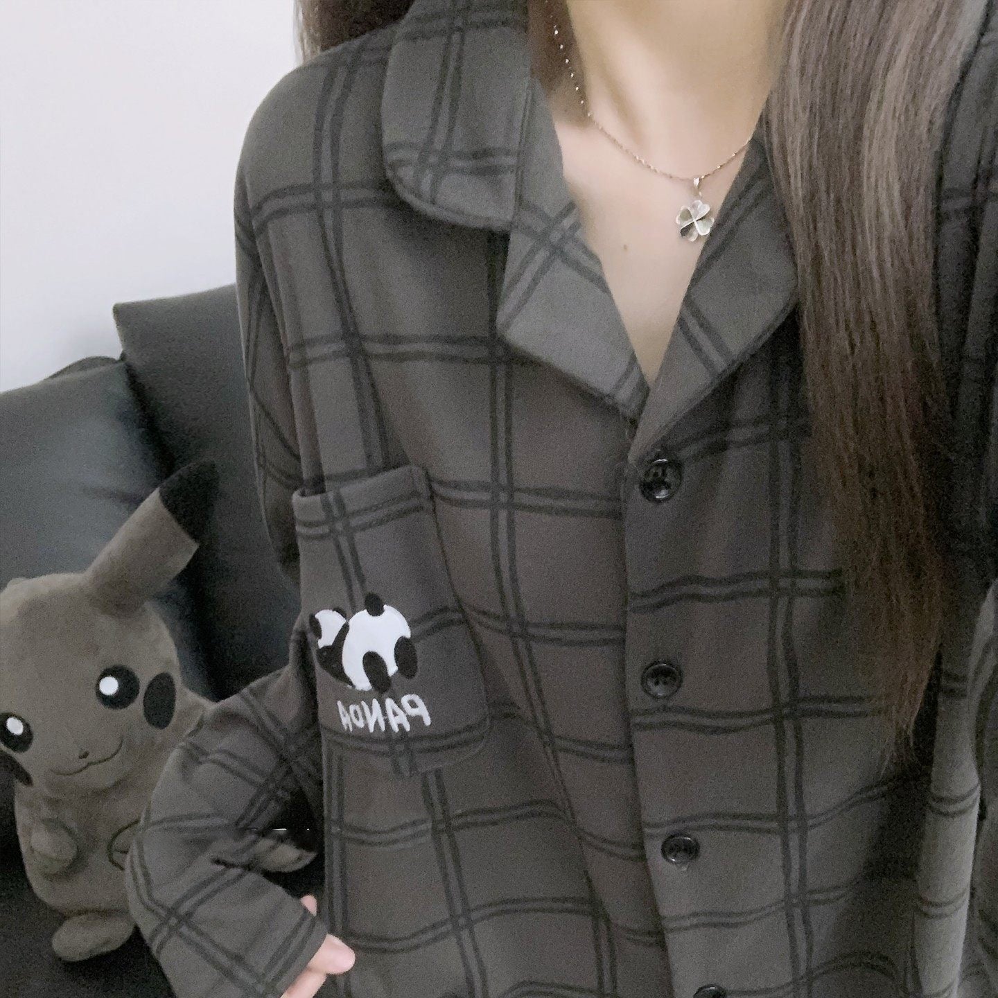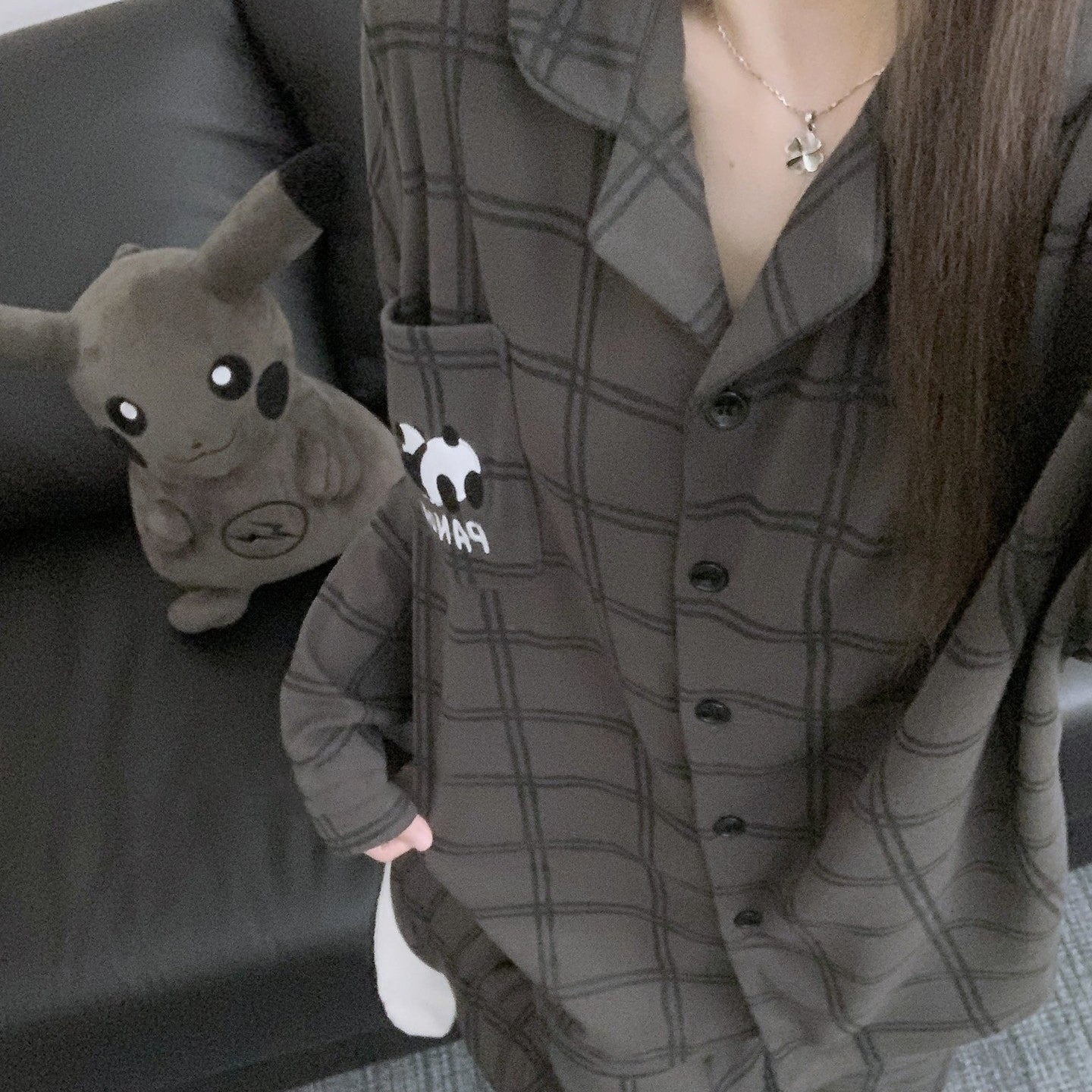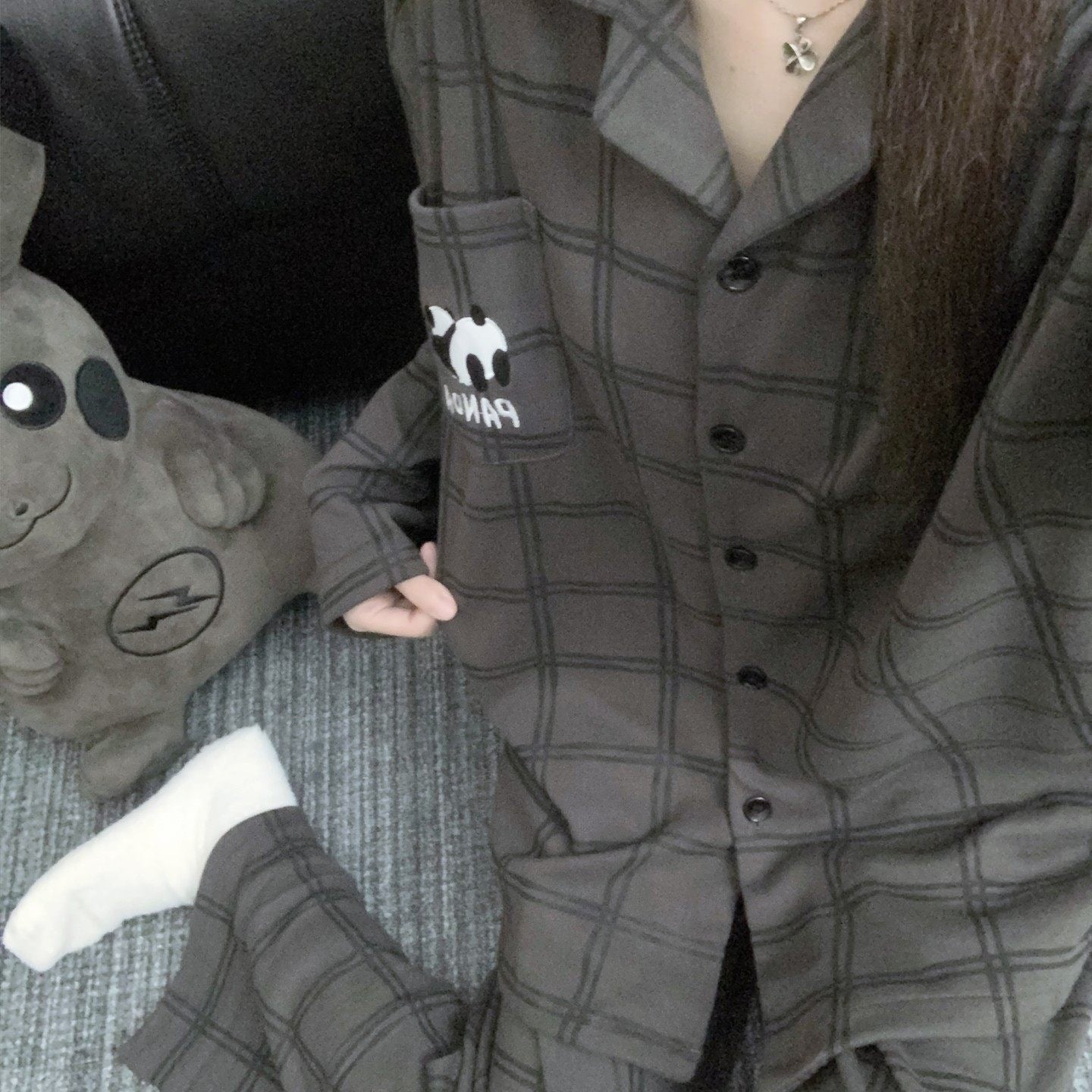 【商品名】【インナー】チェック柄 パンダ 薄手 保温 ルームウェア レディース/メンズ ペア対応 秋冬