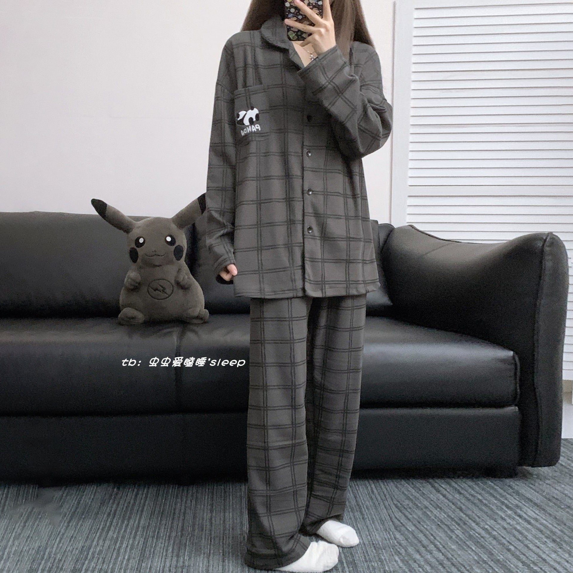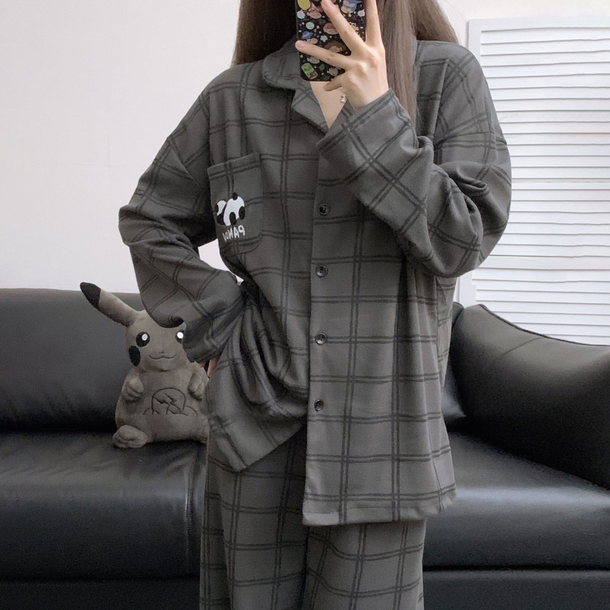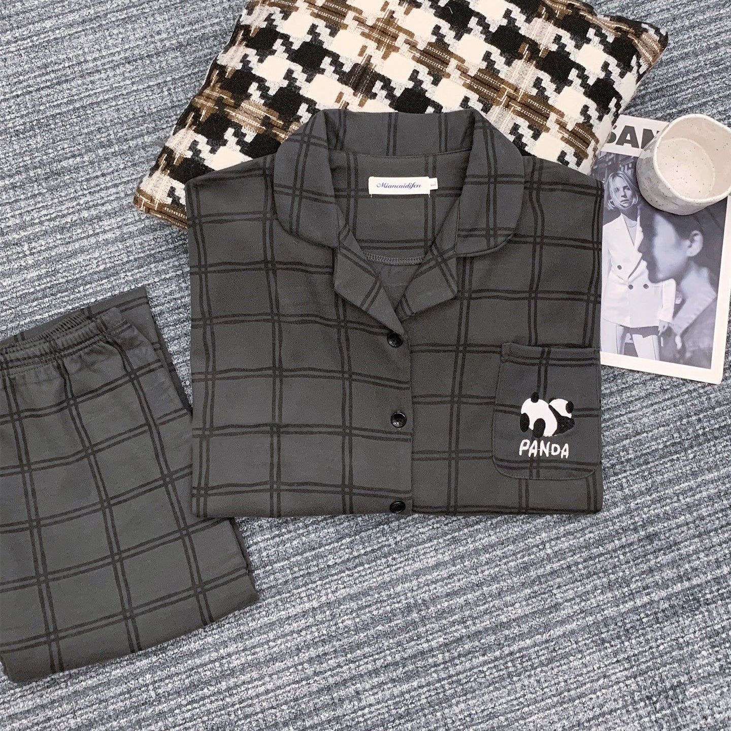【商品名】【インナー】チェック柄 パンダ 薄手 保温 ルームウェア レディース/メンズ ペア対応 秋冬