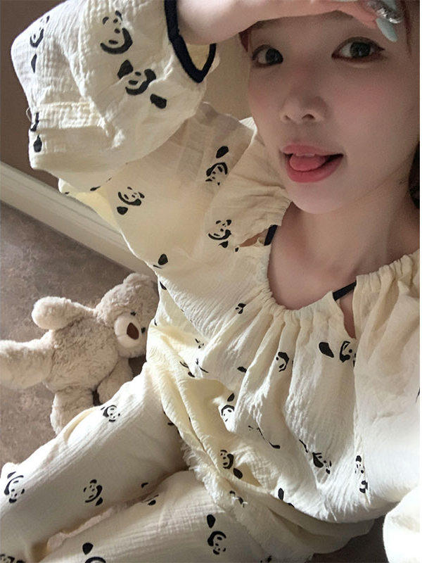 S~5XL【インナー】パンダ柄 チャイニーズテイスト 長袖 ワイドシルエット ルームウェア 大きいサイズ レディース 春秋