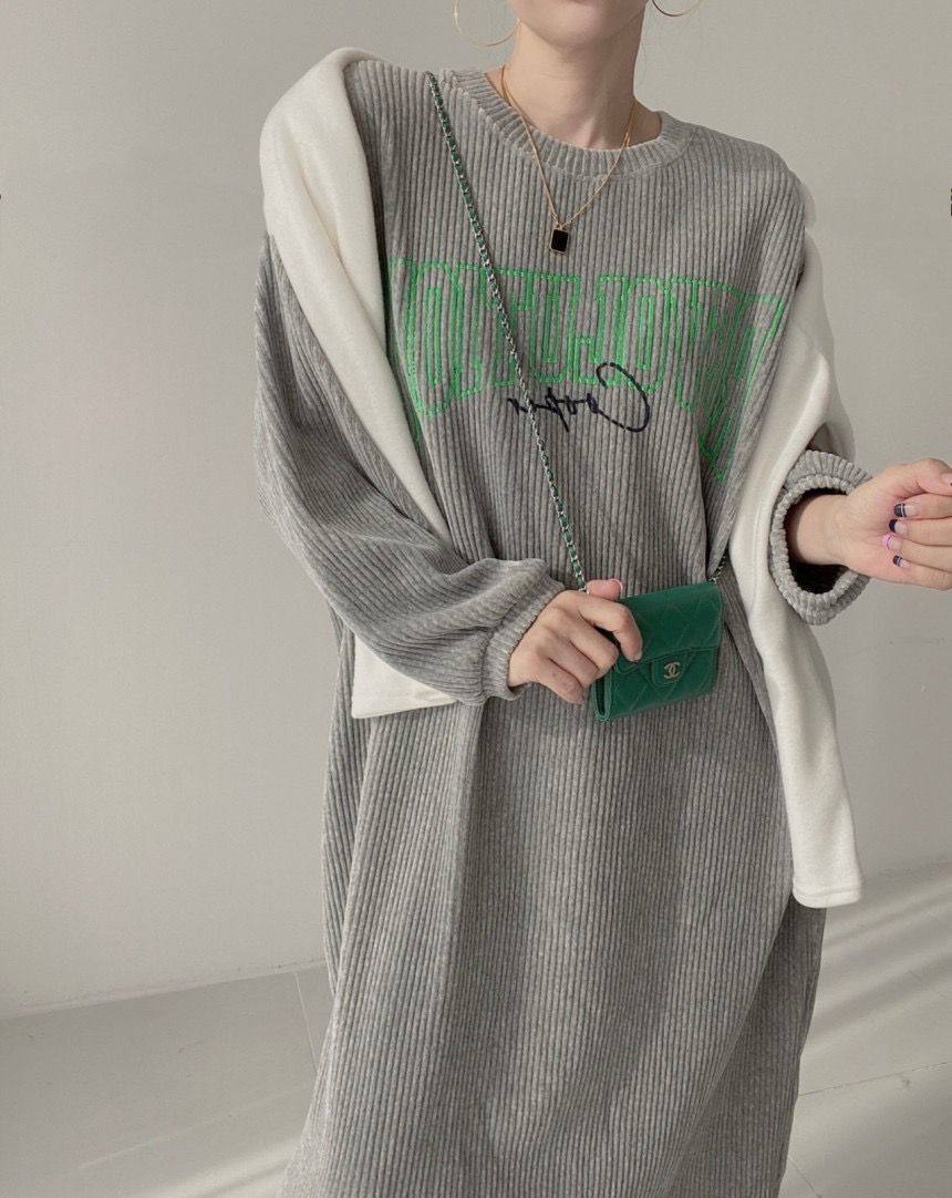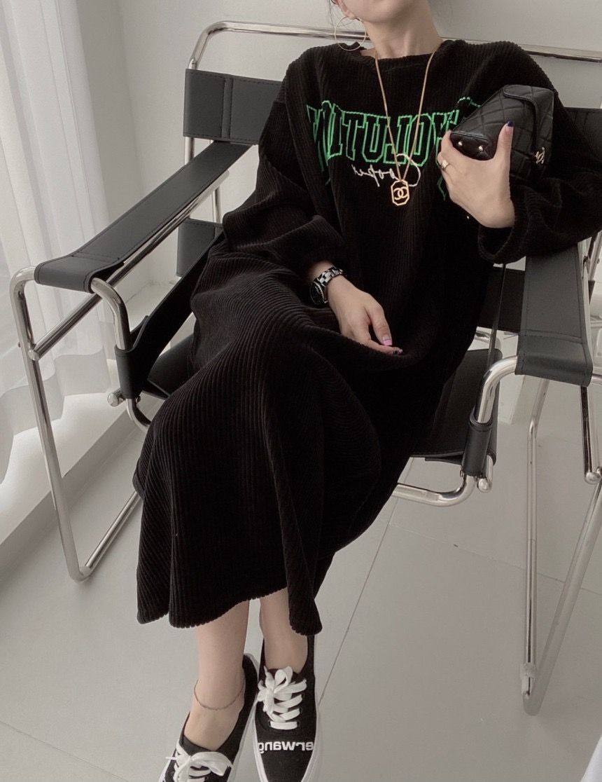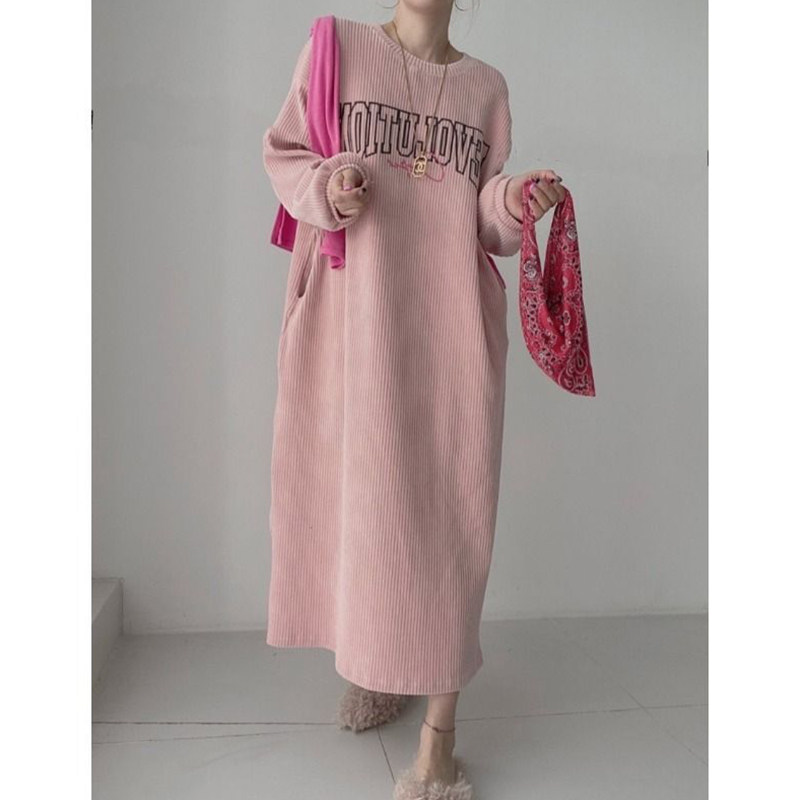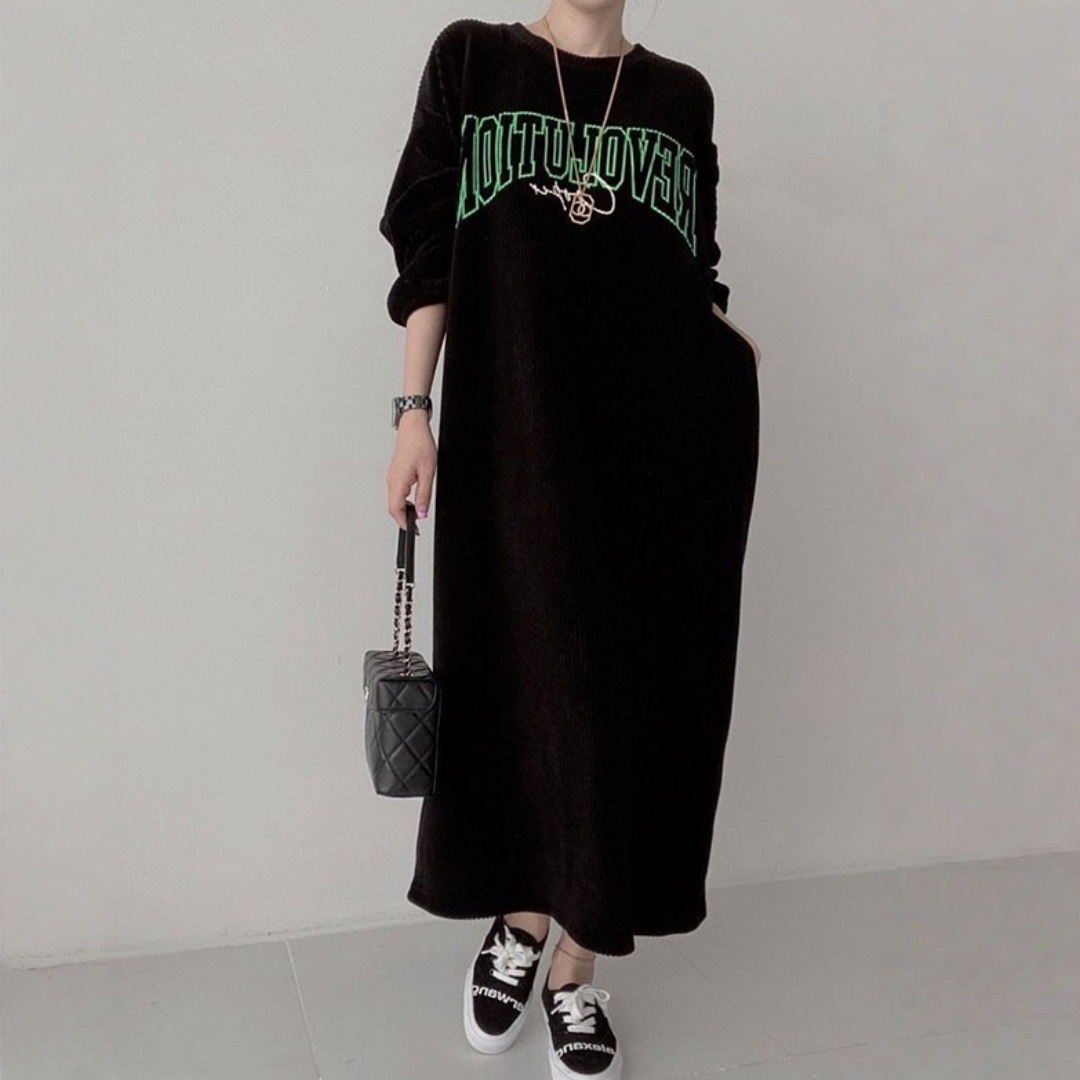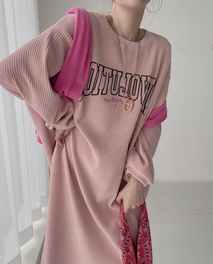 【60%OFF⭐️早い者勝ち】【ワンピース】コーデュロイ プリント ゆったり スウェット 長袖 ワンピース【FCシリーズ】