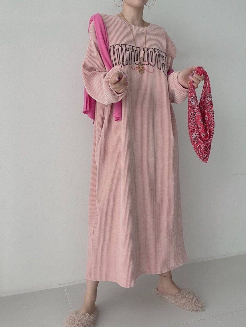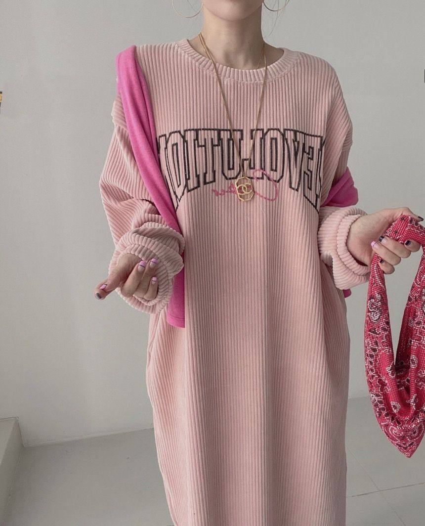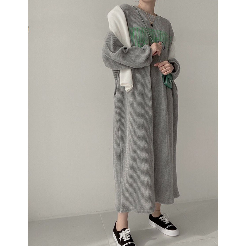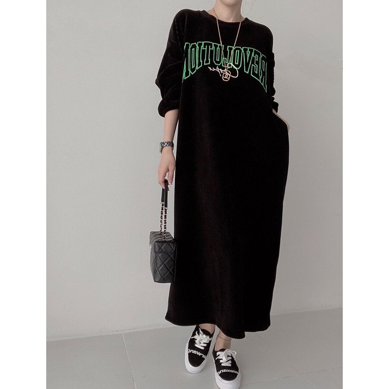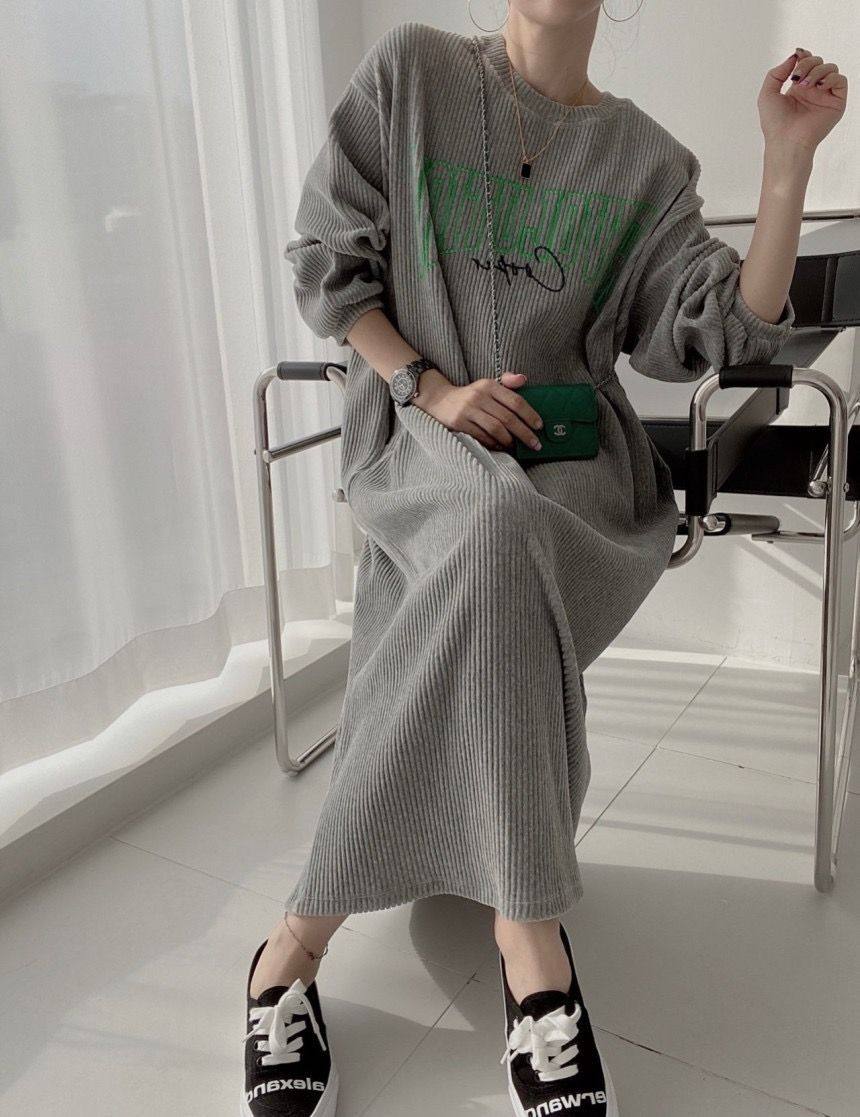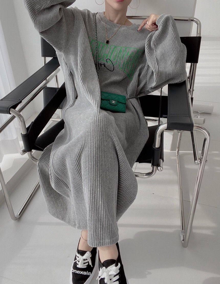 【60%OFF⭐️早い者勝ち】【ワンピース】コーデュロイ プリント ゆったり スウェット 長袖 ワンピース【FCシリーズ】