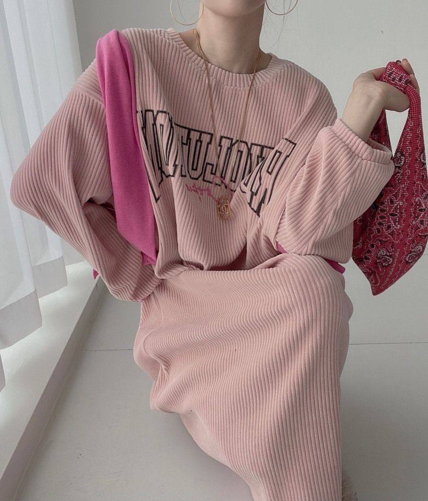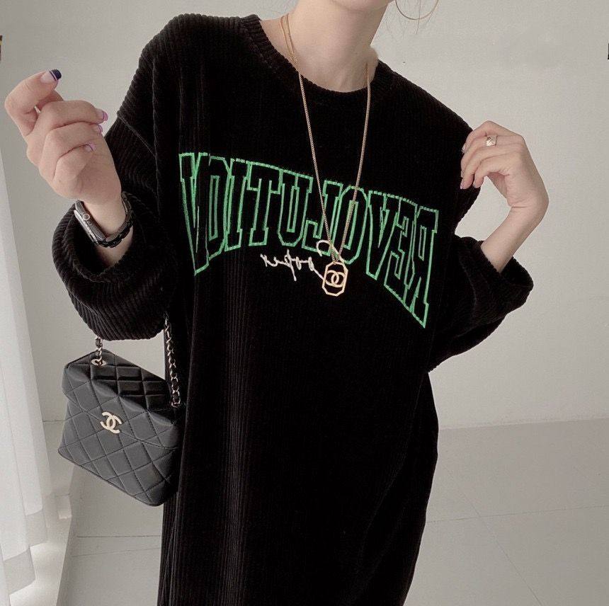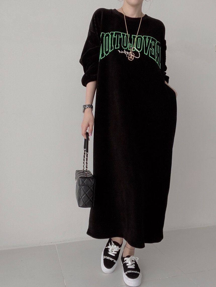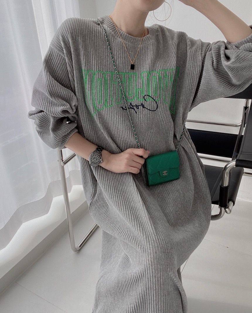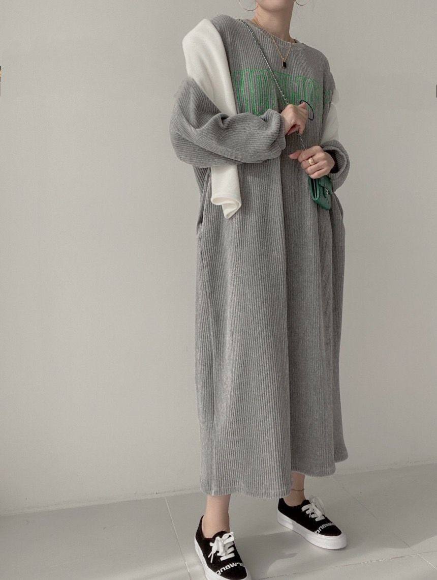 【60%OFF⭐️早い者勝ち】【ワンピース】コーデュロイ プリント ゆったり スウェット 長袖 ワンピース【FCシリーズ】