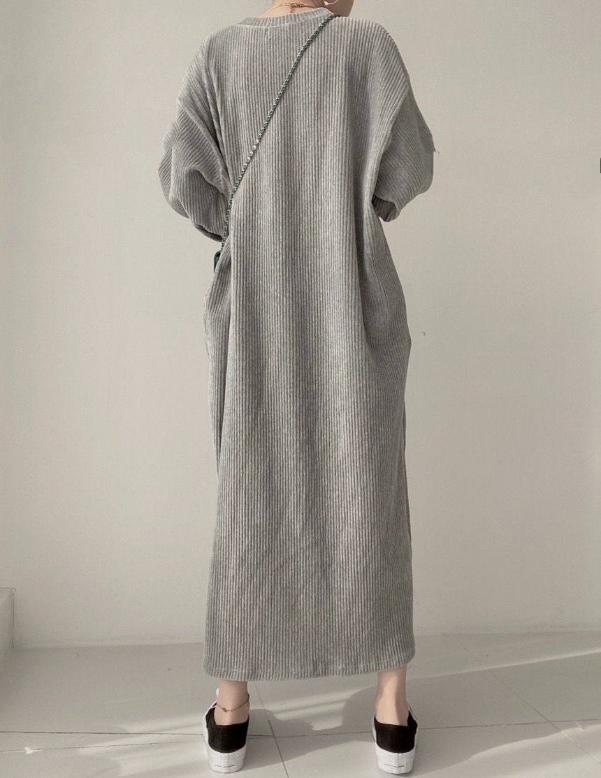 【商品名】【ワンピース】コーデュロイ プリント ゆったり スウェット 長袖 ワンピース【FCシリーズ】