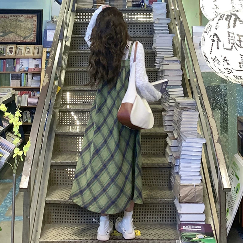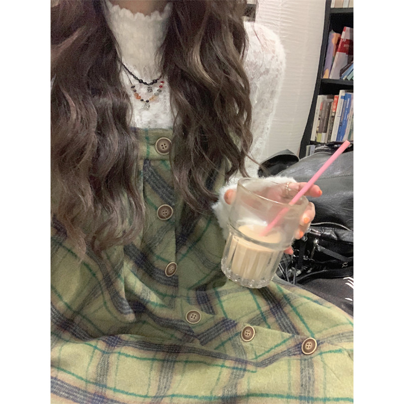 【セットアップ】プラスサイズ 合わせやすい チェック柄 Tシャツ+ノースリーブワンピース 2点セット【JZシリーズ】