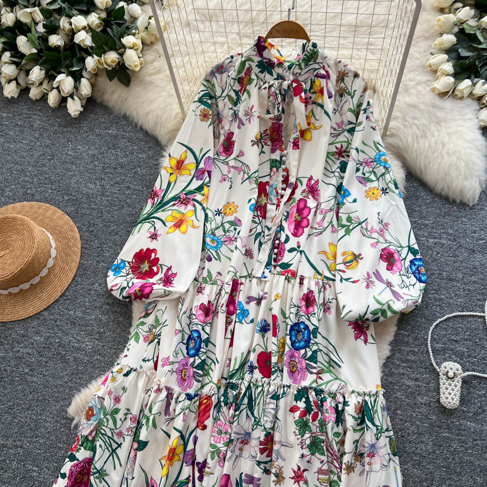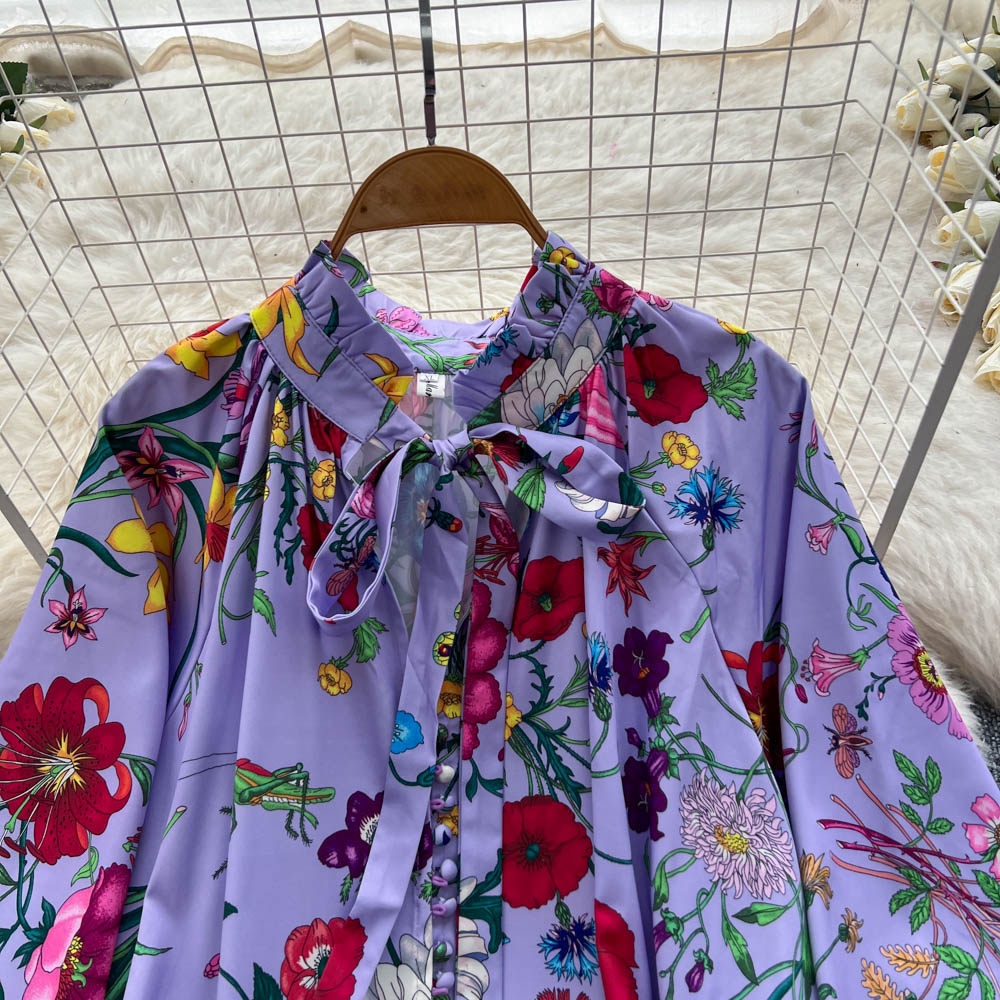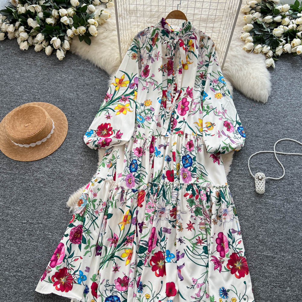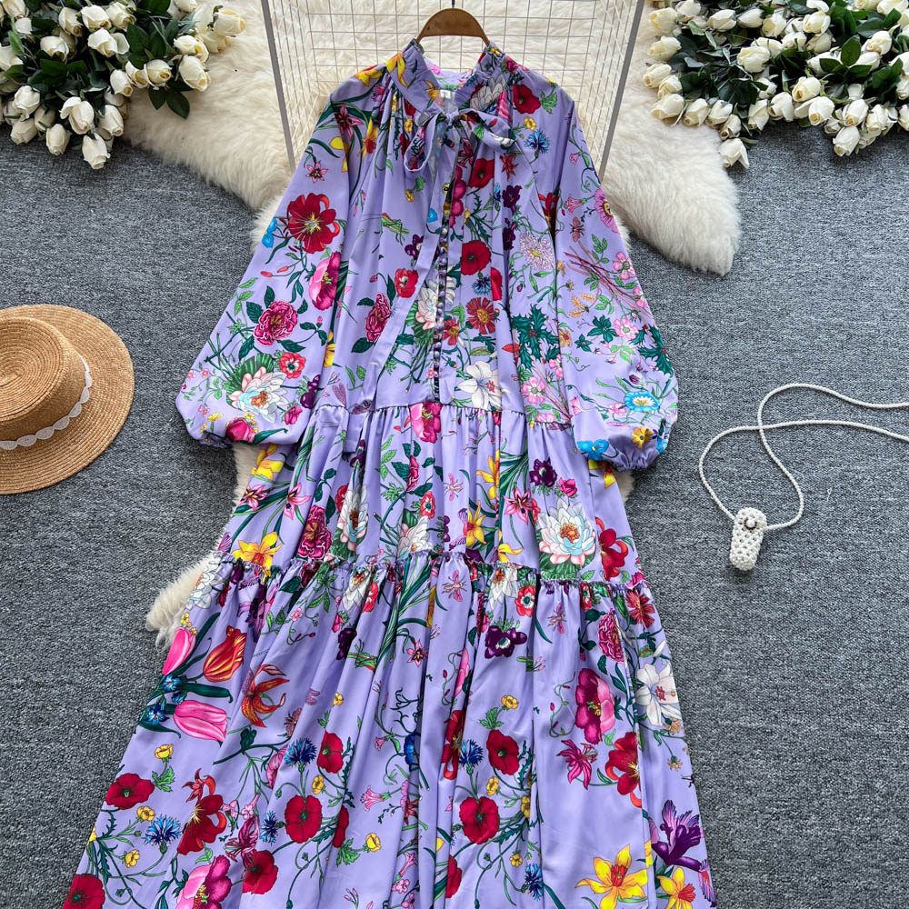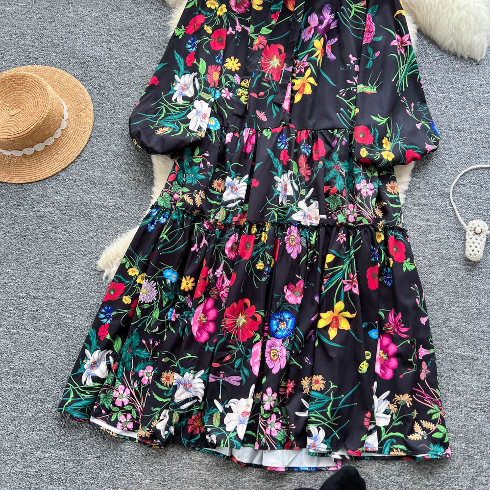 【60%OFF⭐️早い者勝ち】【ワンピース】クラシカル バルーンスリーブ フレンチ リボン付き 花柄 プリント 長袖 ワンピース【SHシリーズ】