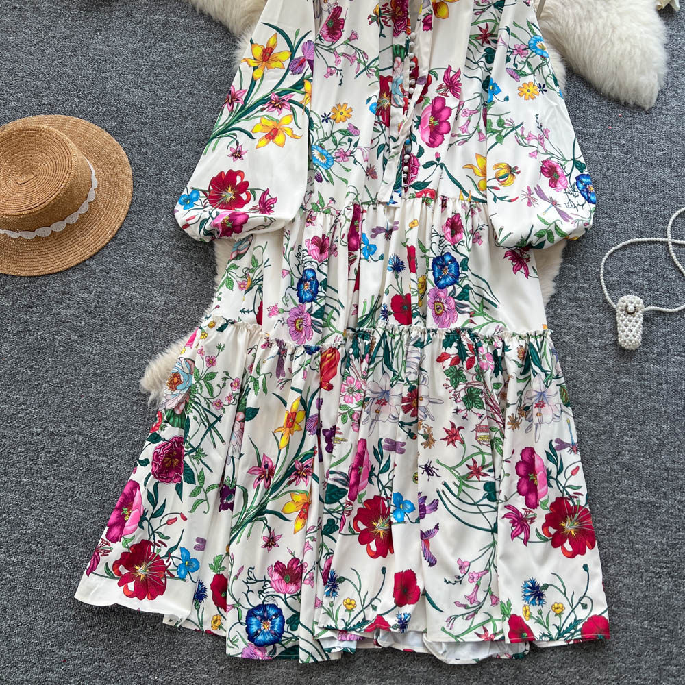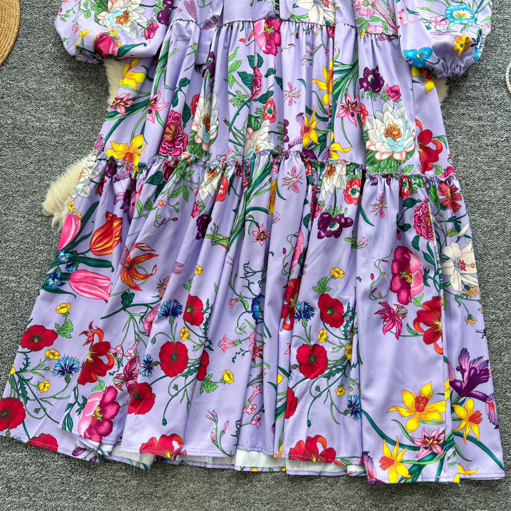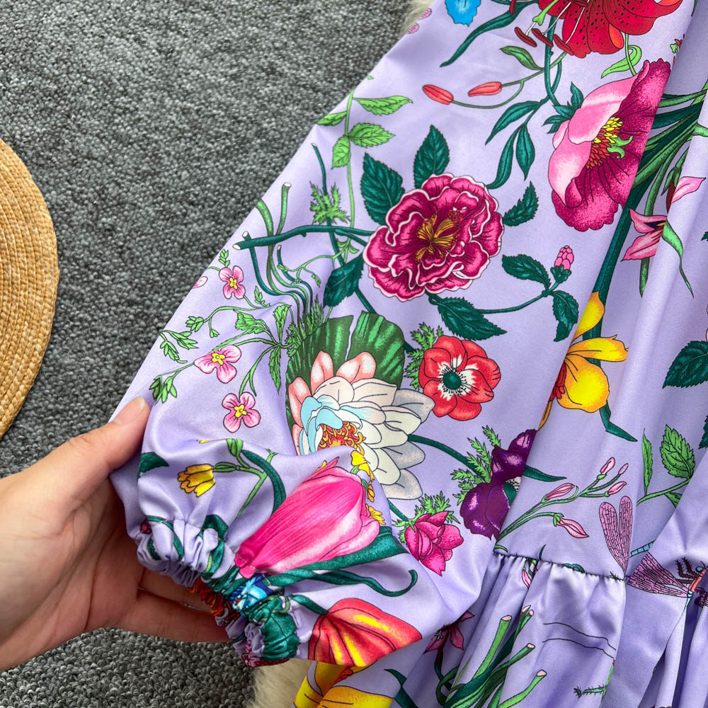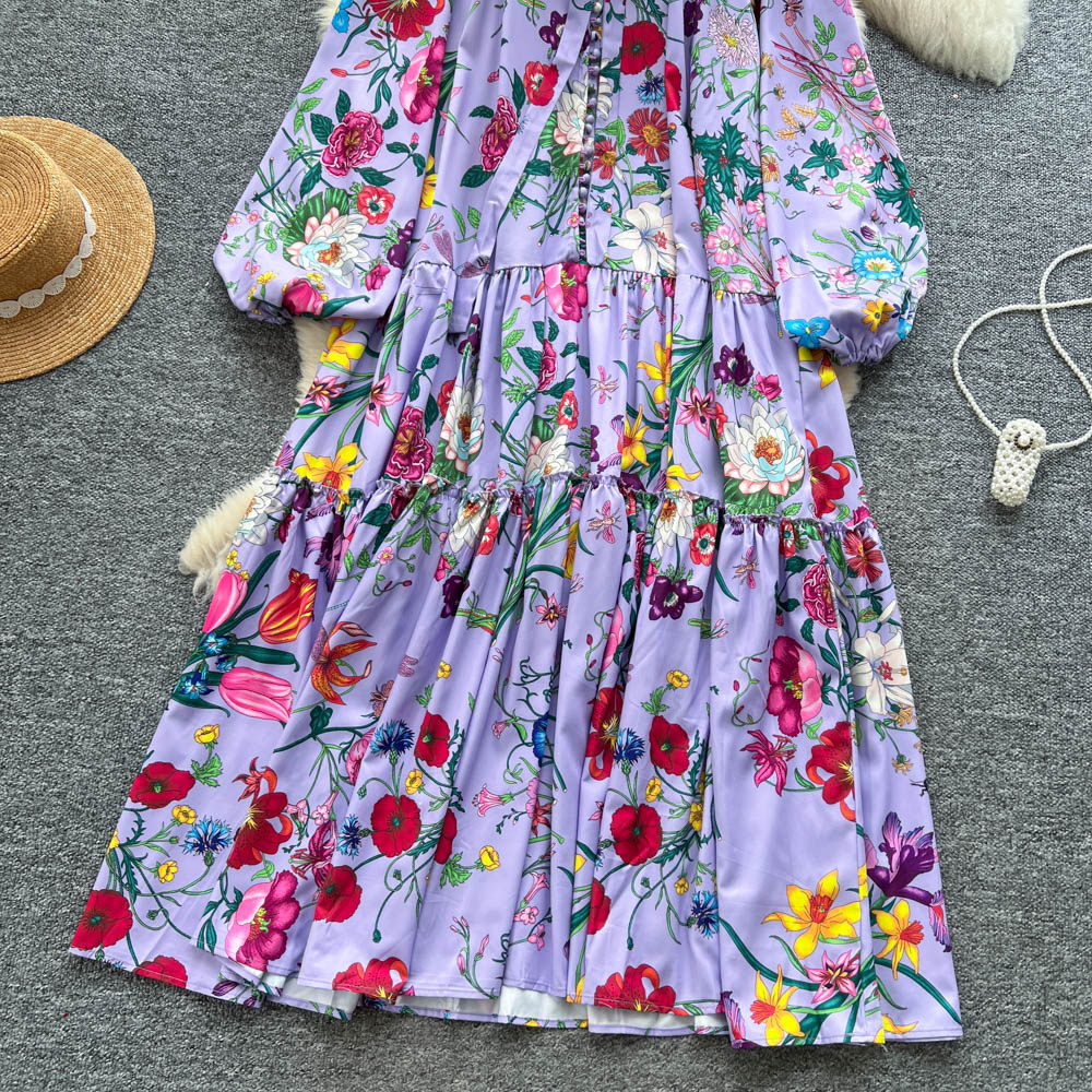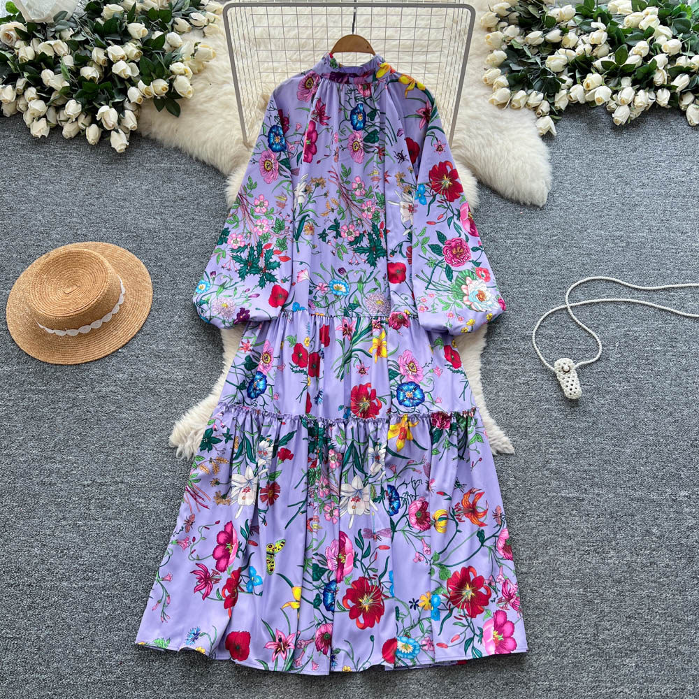 【60%OFF⭐️早い者勝ち】【ワンピース】クラシカル バルーンスリーブ フレンチ リボン付き 花柄 プリント 長袖 ワンピース【SHシリーズ】