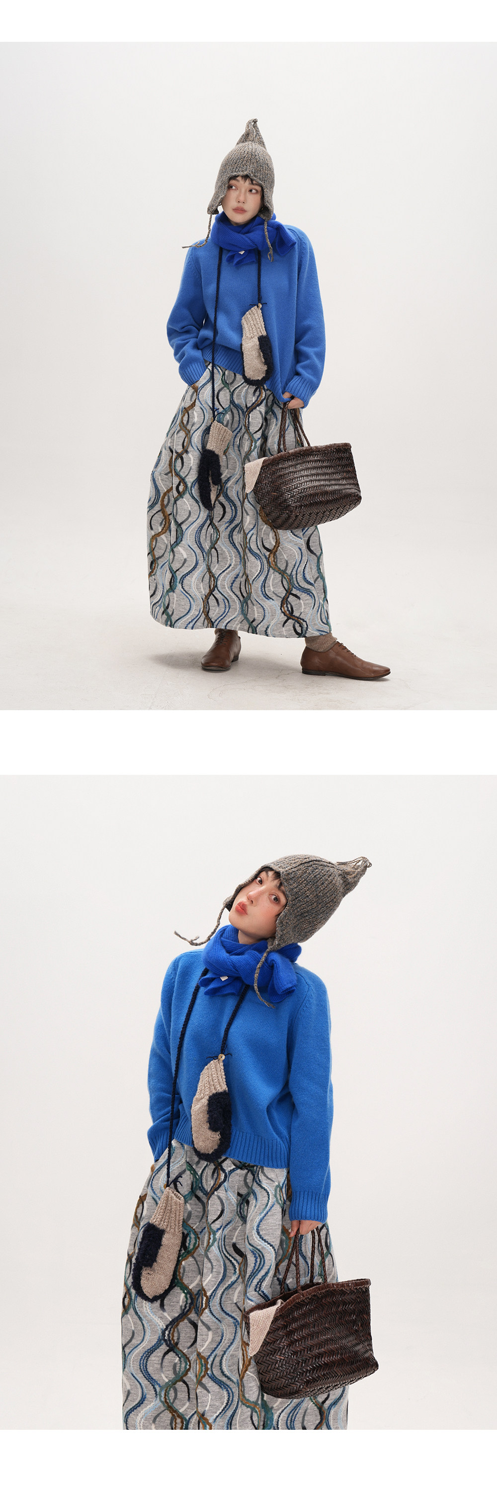 【トップス】レトロ デザイン 小犬柄 クルーネック ニット レディース ゆったり ルーズ 着回し セーター【FCシリーズ】