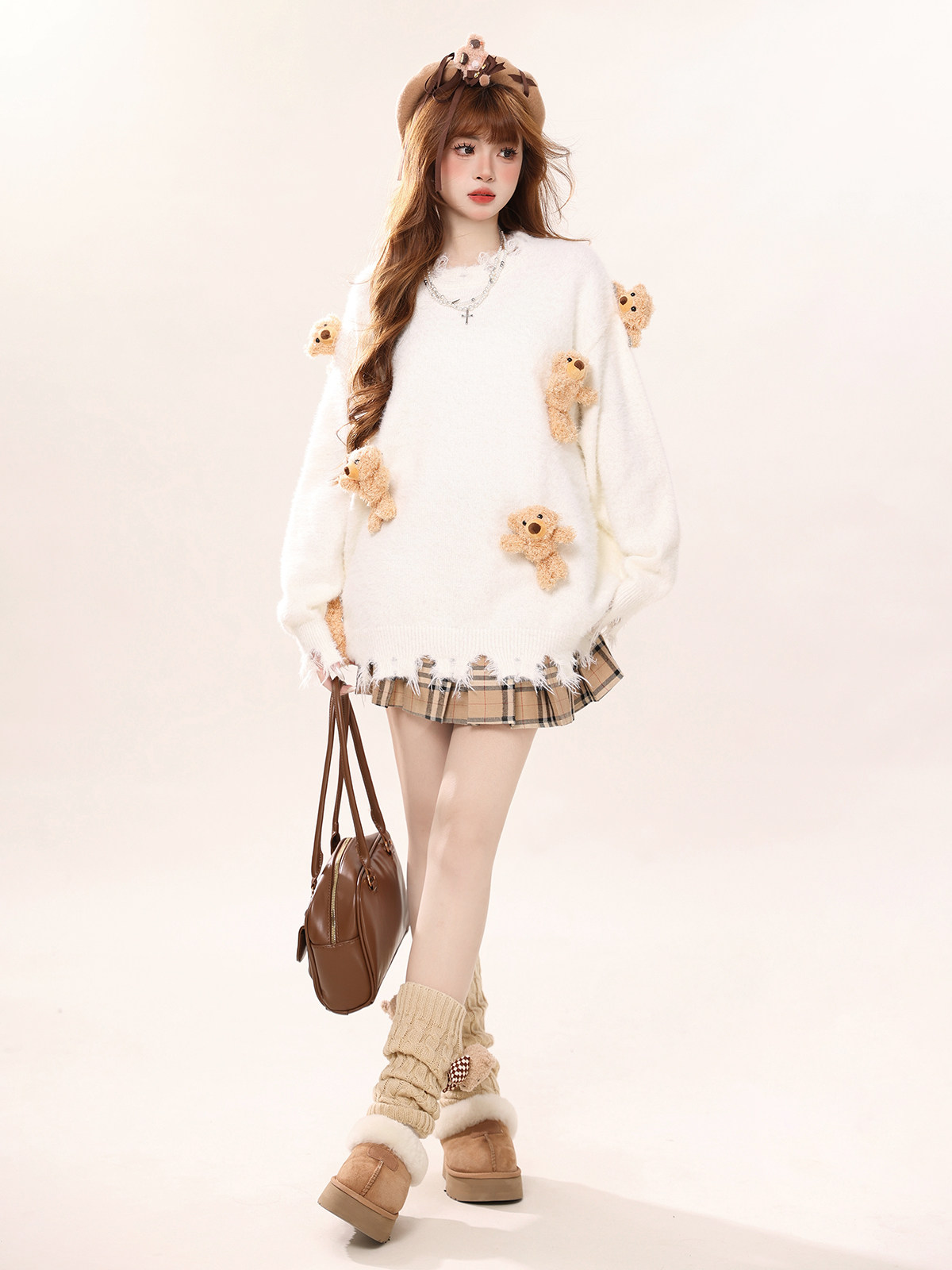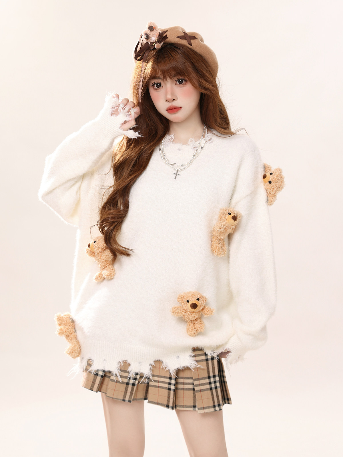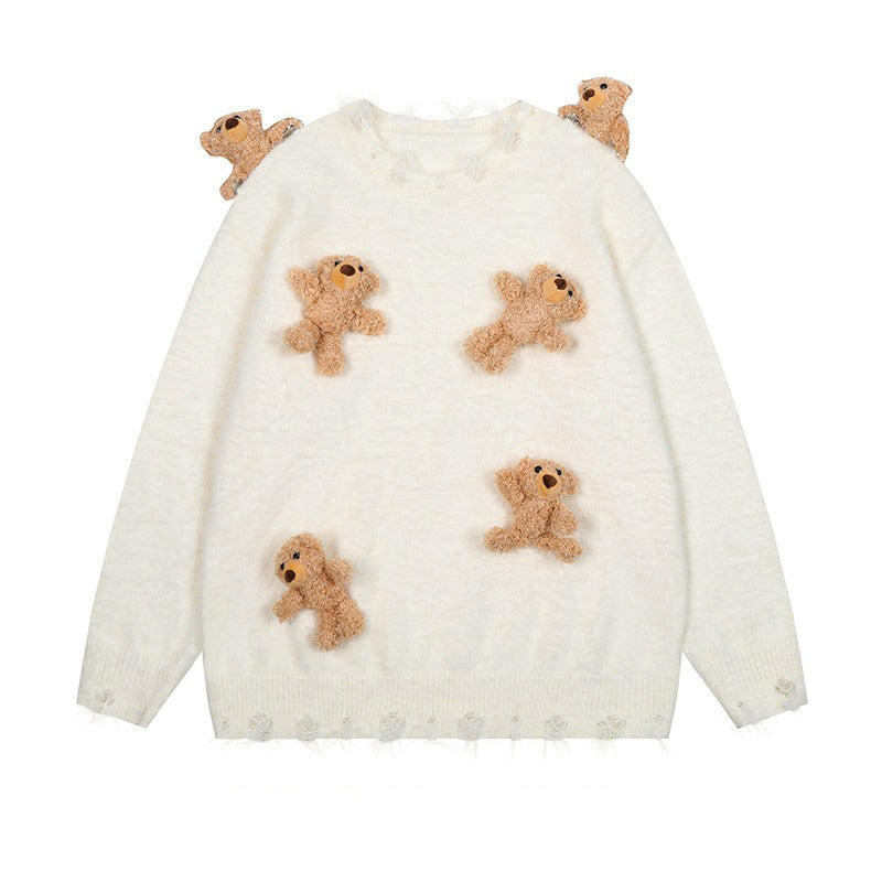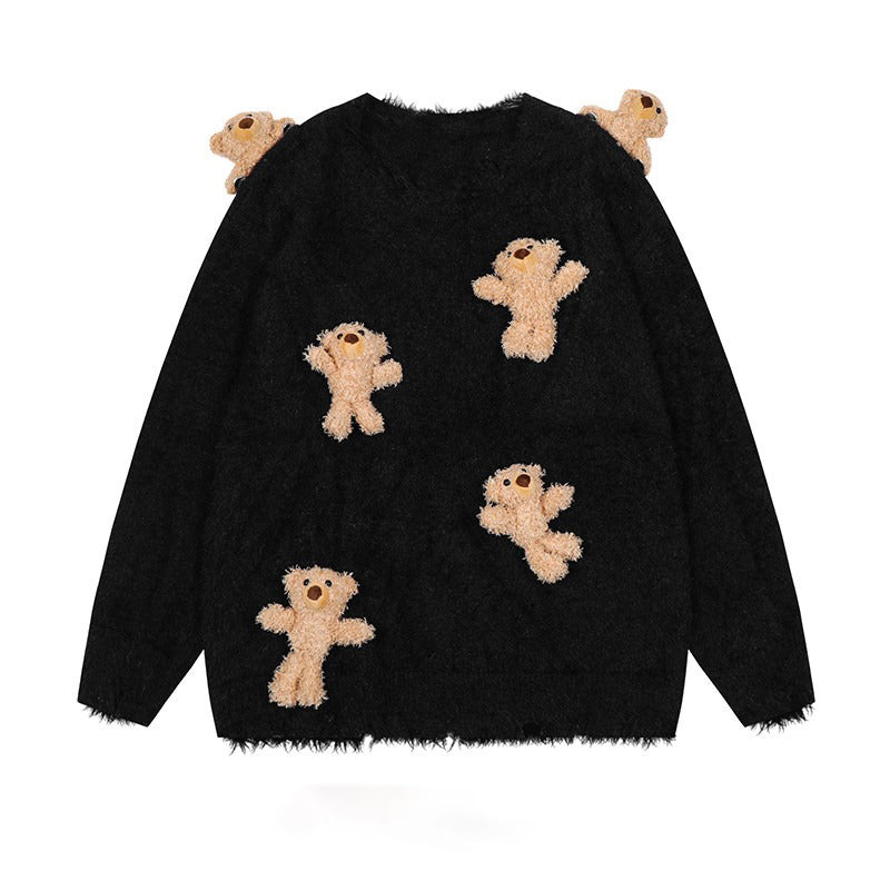 【トップス】ベアドール モチーフ カレッジ風 ニットセーター ユニセックス アメリカンレトロ デザイン カップル向け ニット【FCシリーズ】