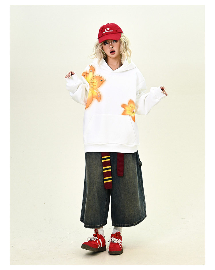【商品名】【トップス】花柄 パーカー レディース ゆったり ユニセックス アメリカンストリート レイジースタイル【FCシリーズ】
