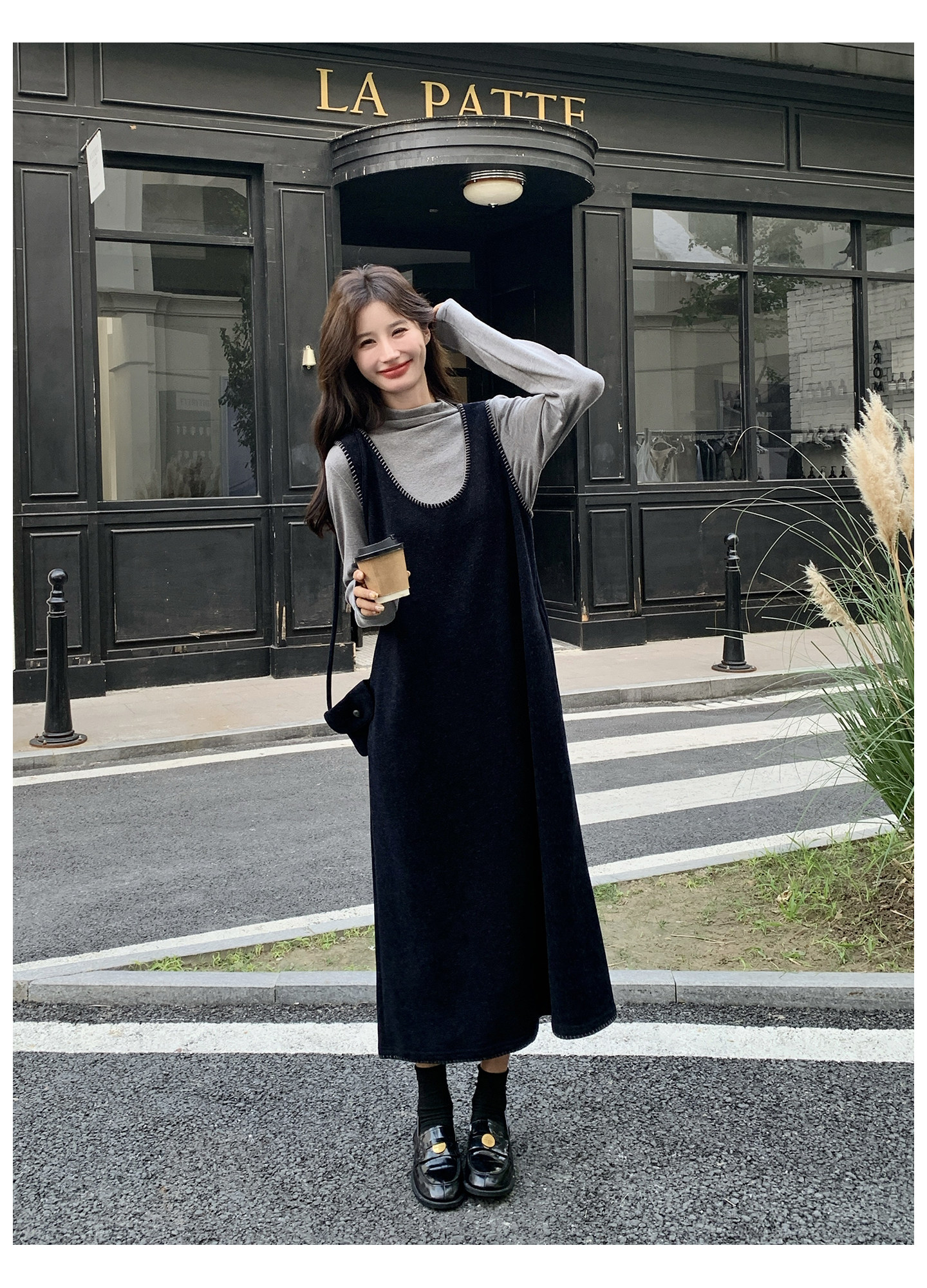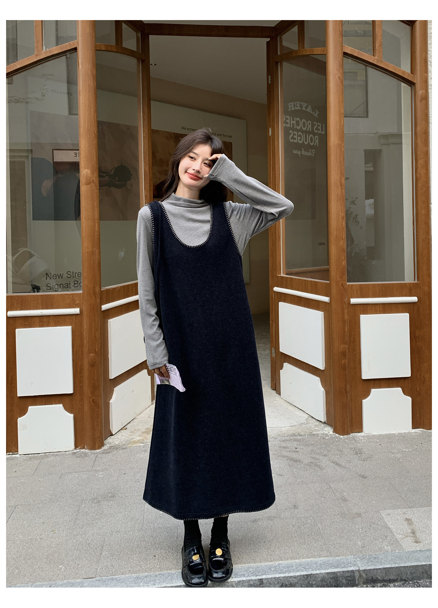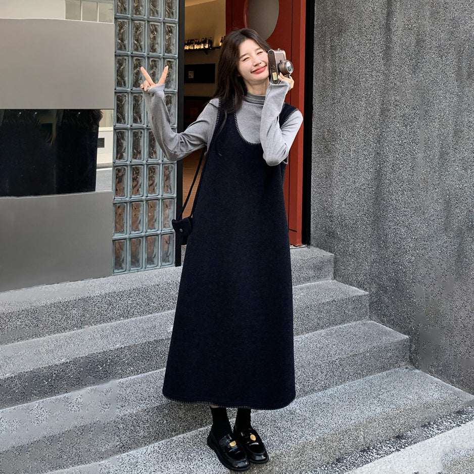 【セットアップ】フレンチスタイル ノースリーブワンピース レイヤード2点セット 秋冬 OOTD 映える きれいめ コーデセット【JZシリーズ】