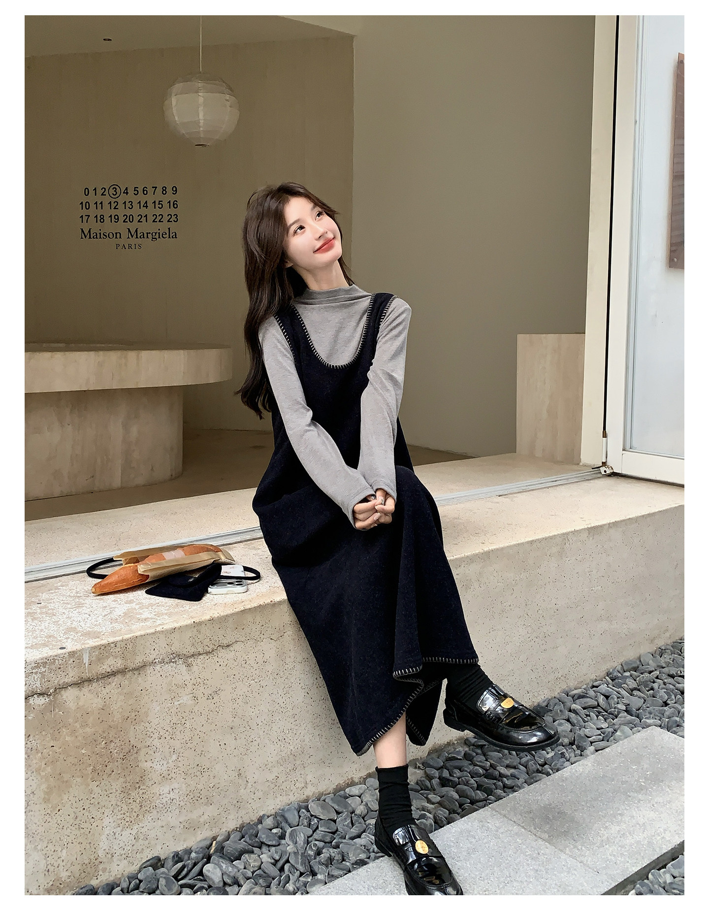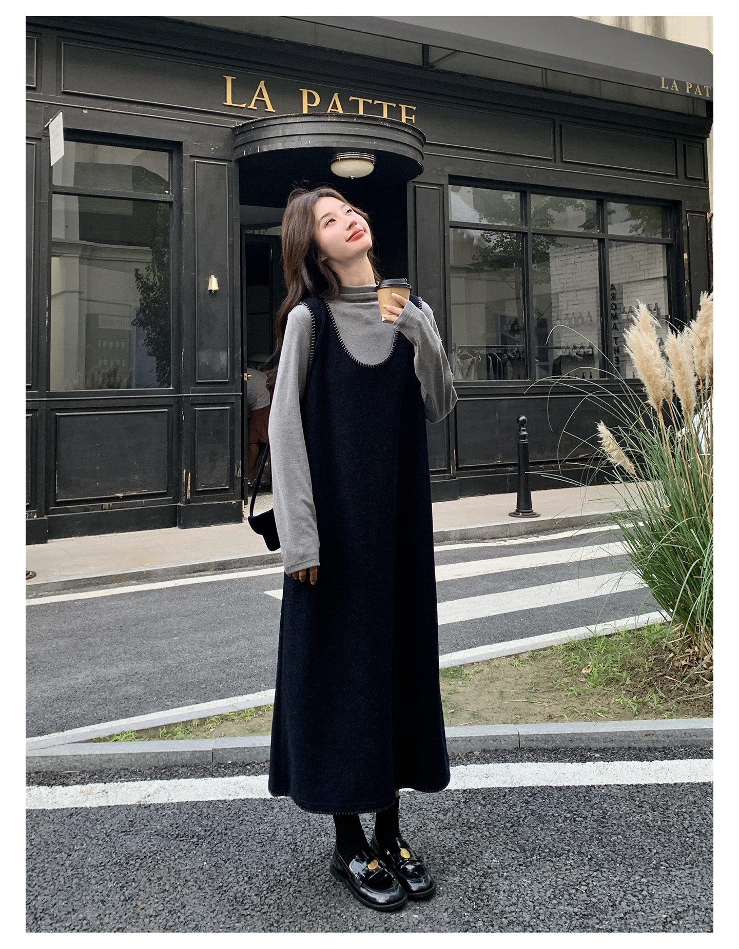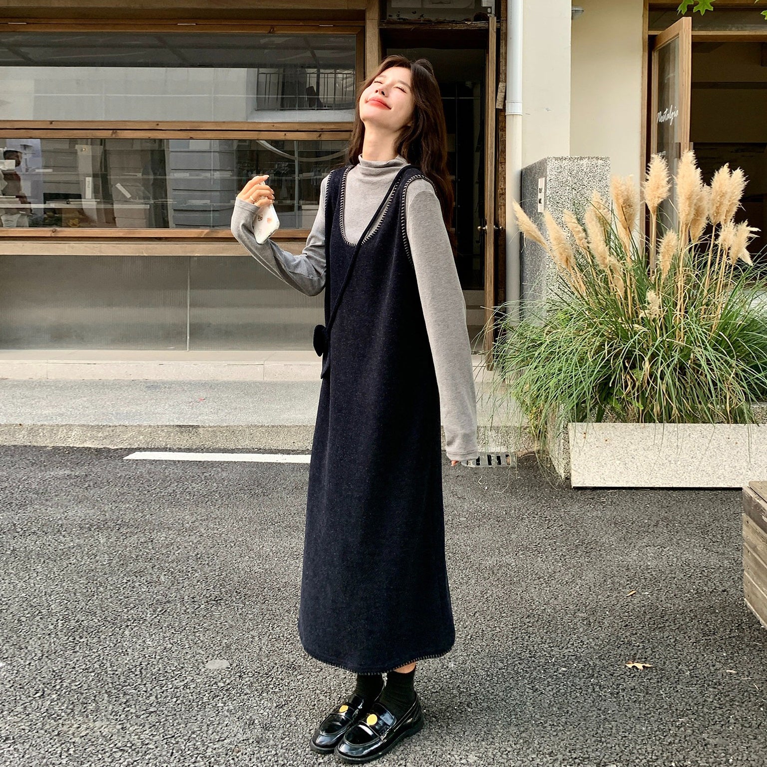 【セットアップ】フレンチスタイル ノースリーブワンピース レイヤード2点セット 秋冬 OOTD 映える きれいめ コーデセット【JZシリーズ】
